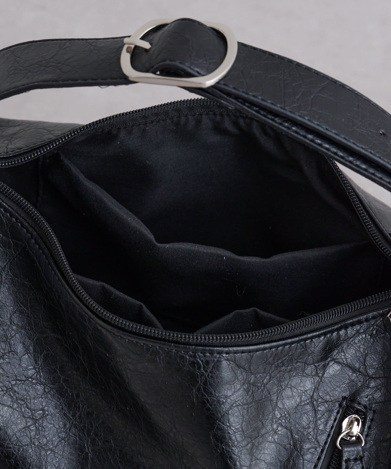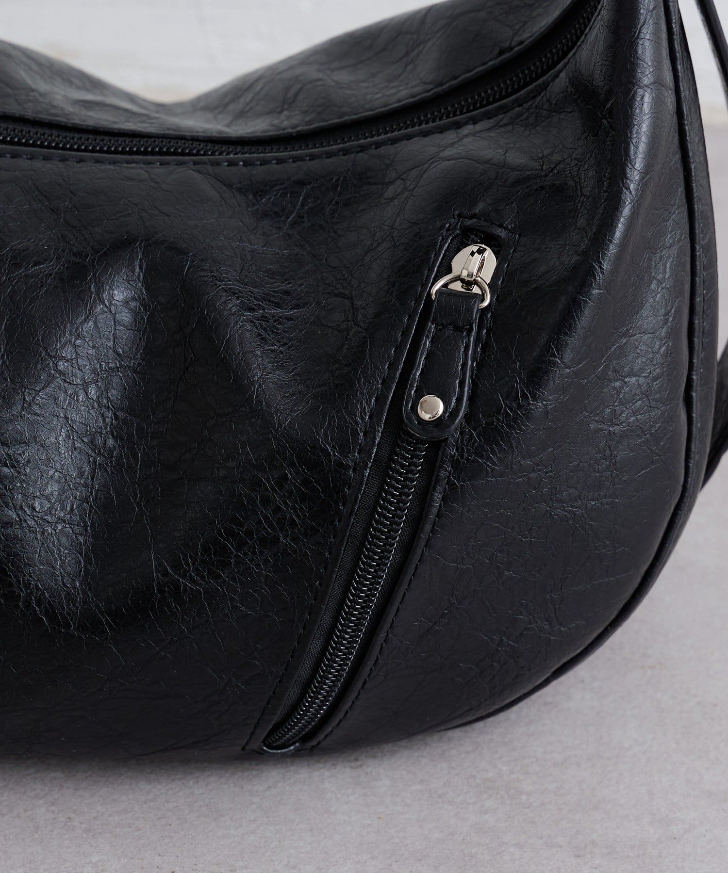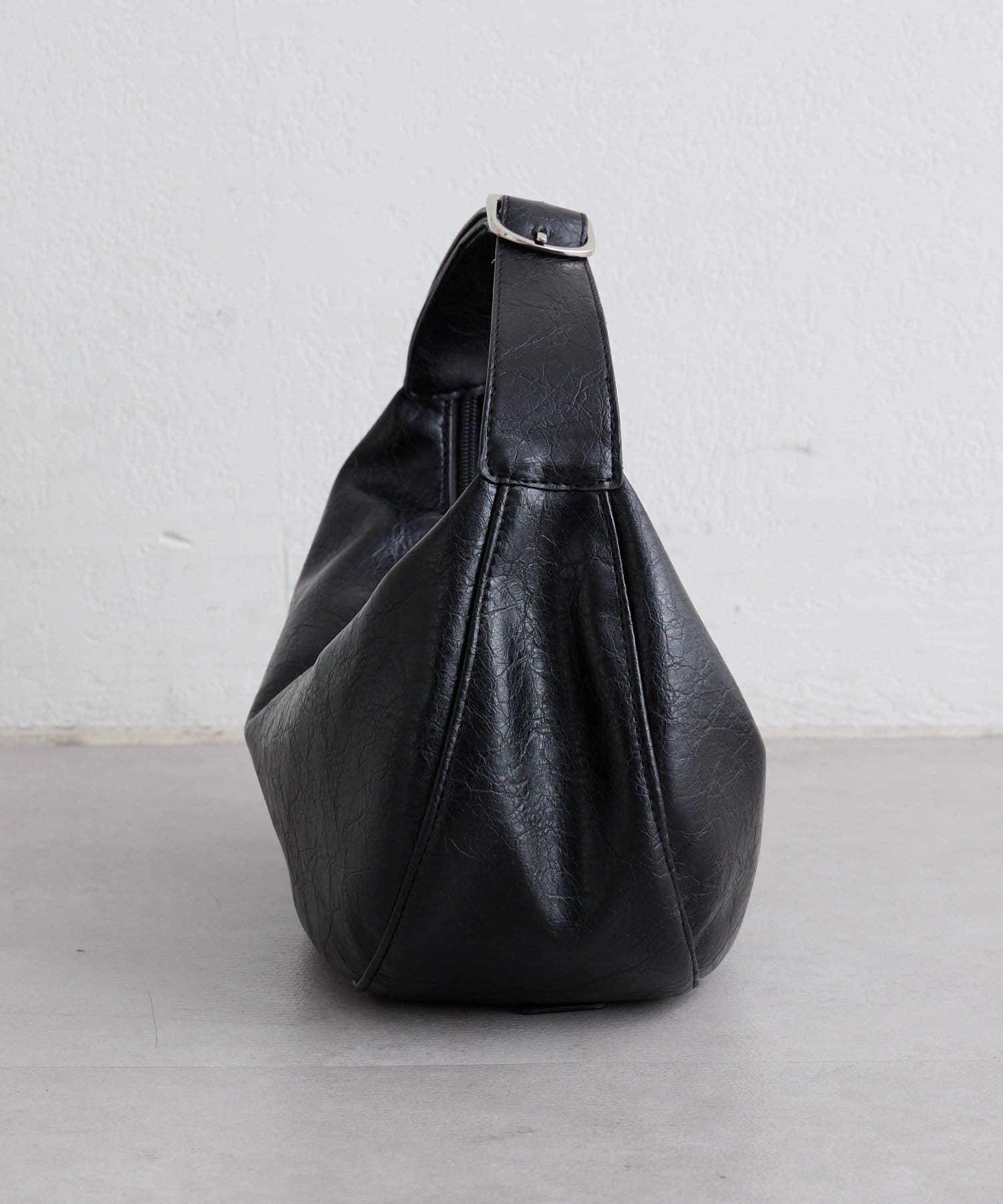 丸みのあるムーンフォルムが目を惹く、トレンド感たっぷりのショルダーバッグ。