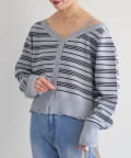 カジュアルなボーダー柄に、さりげないダメージ加工を施したニットカーディガン。