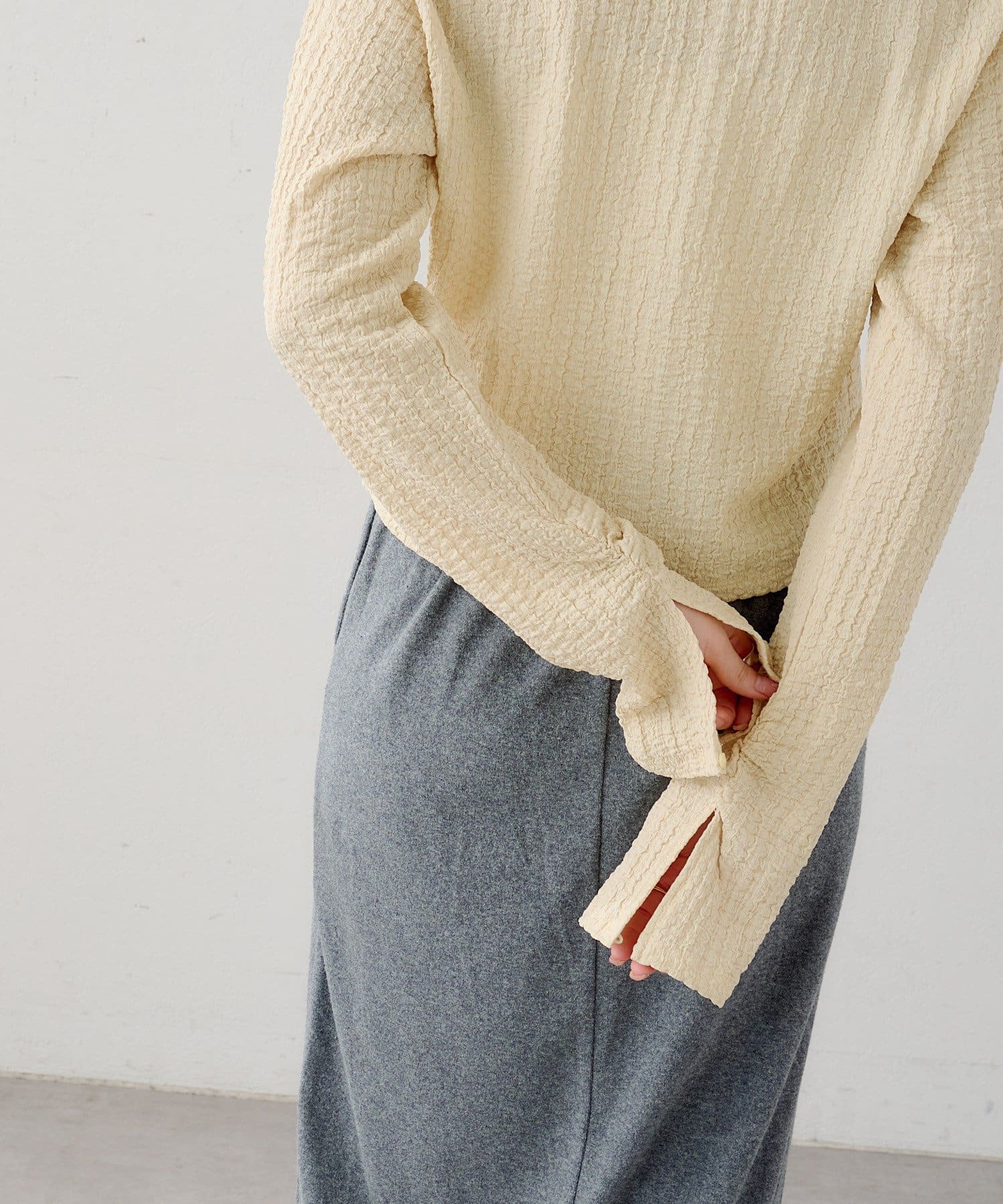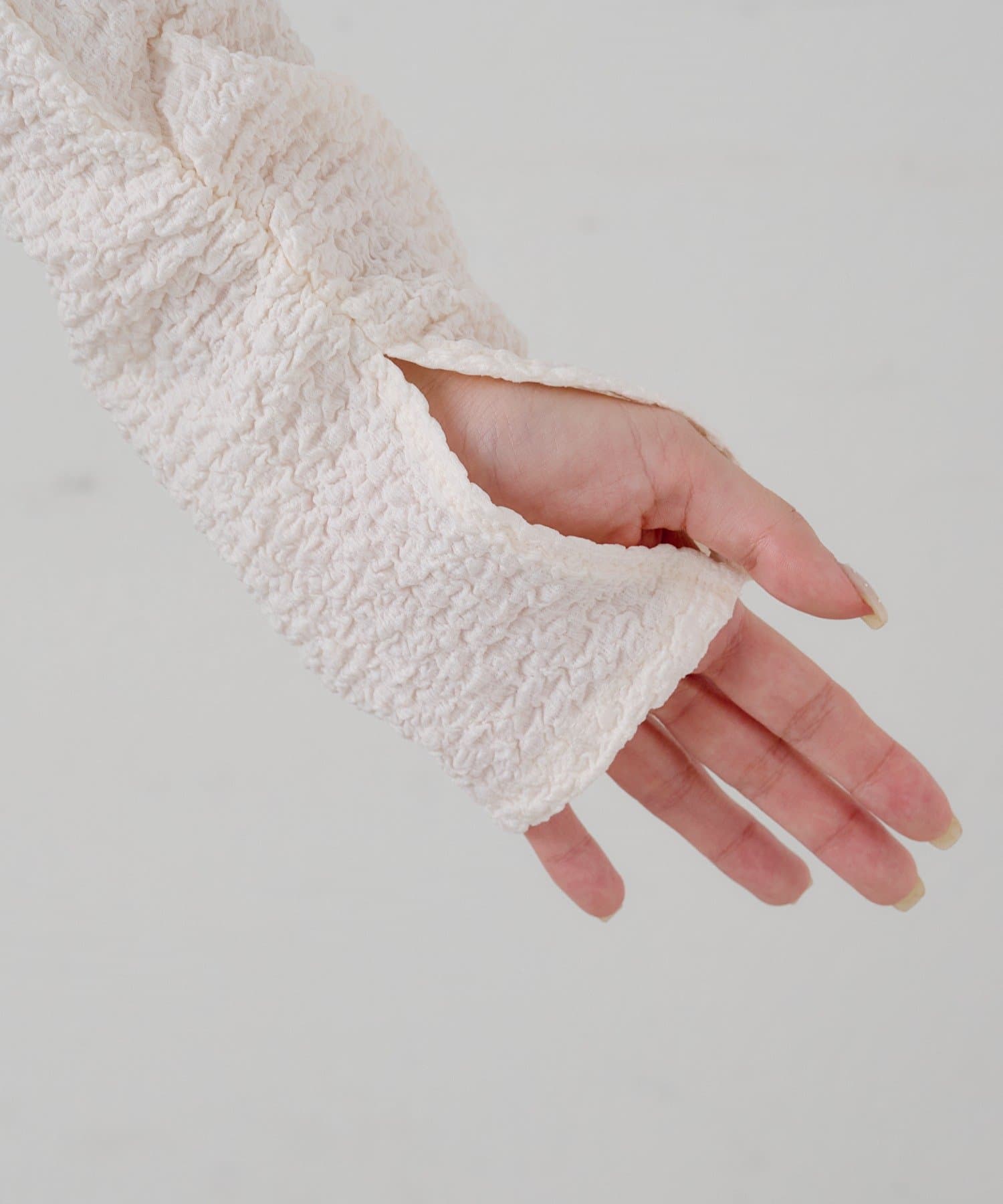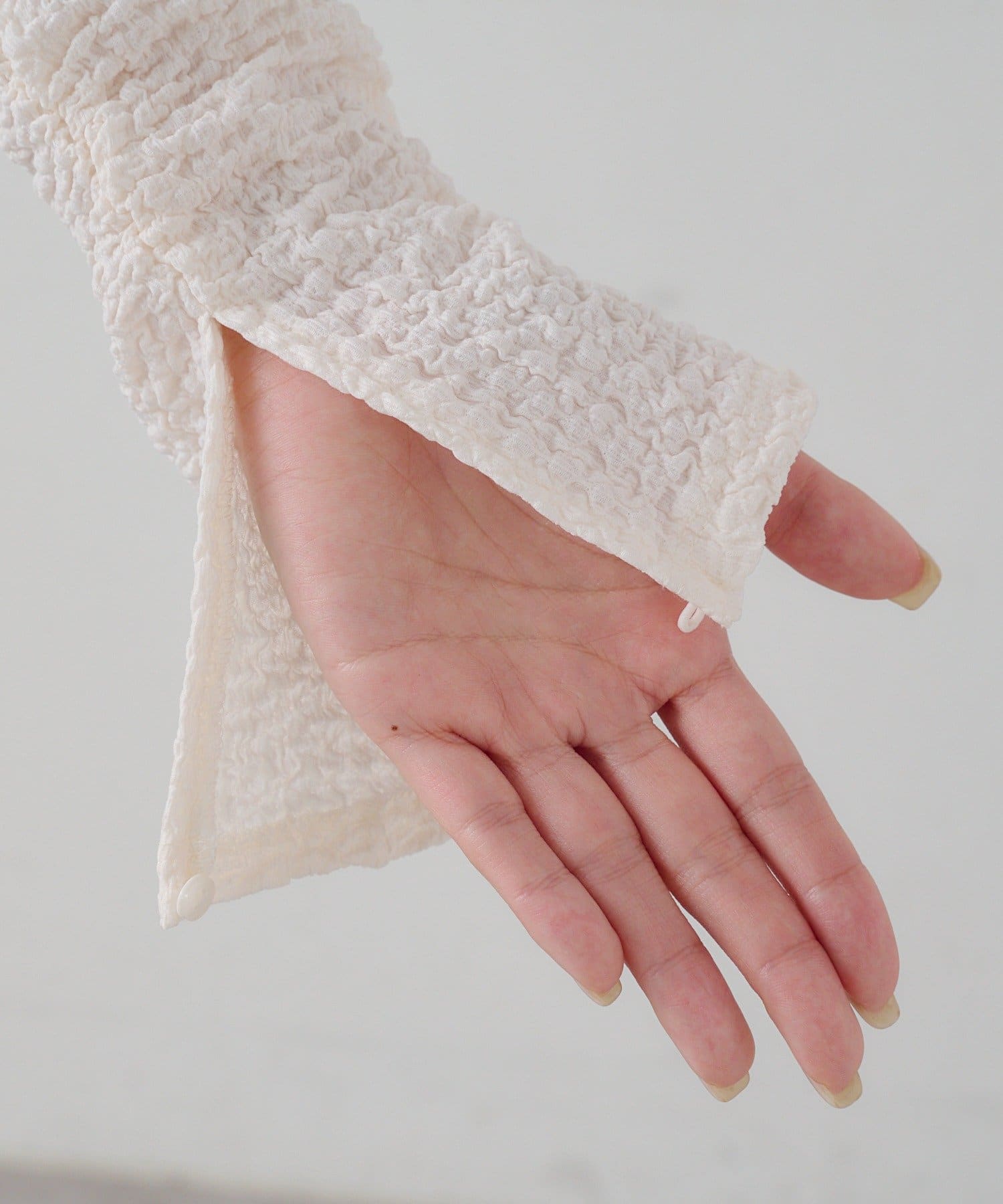 長めの袖丈でボタン取り外し可能なアームホール仕様になっております。