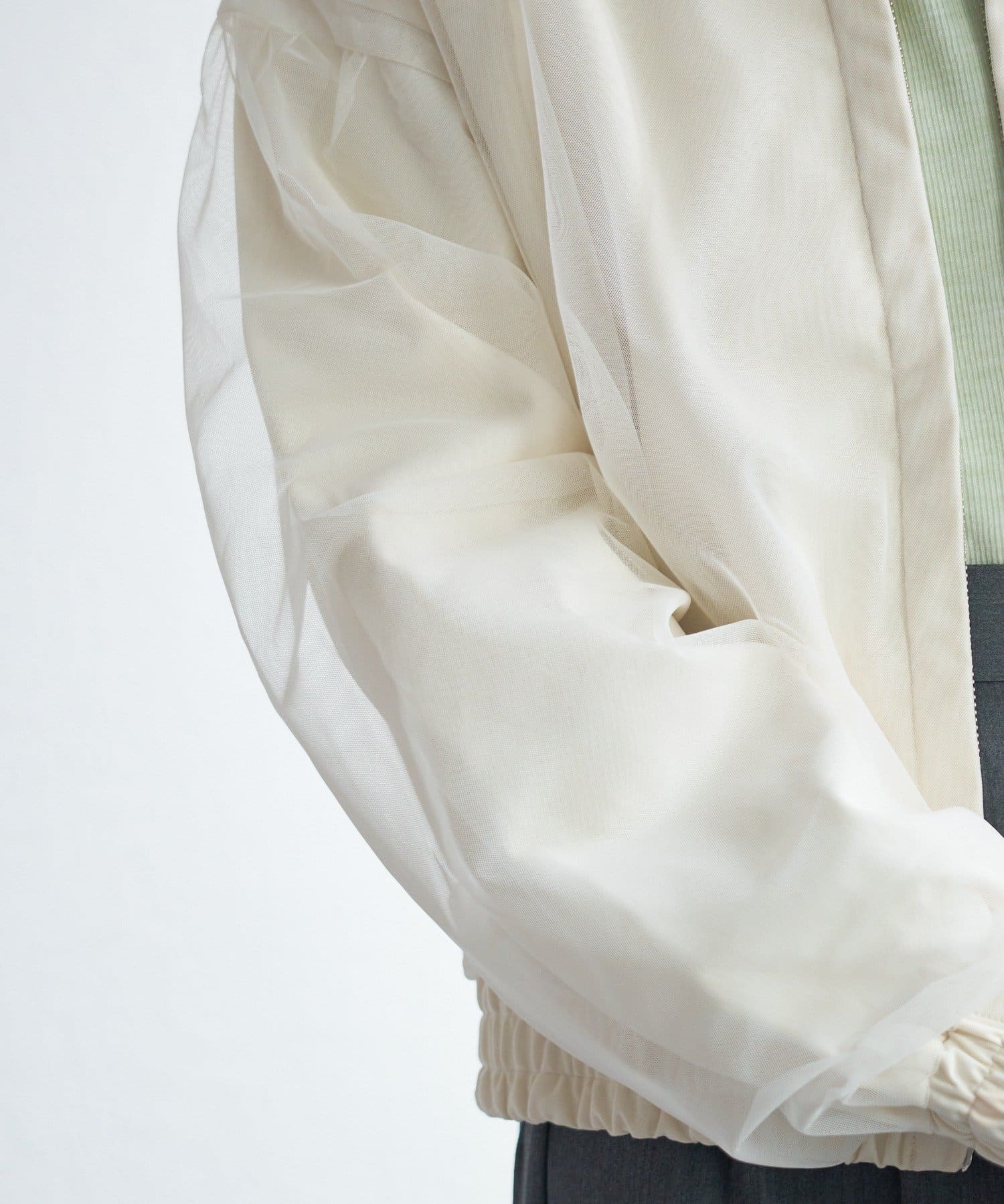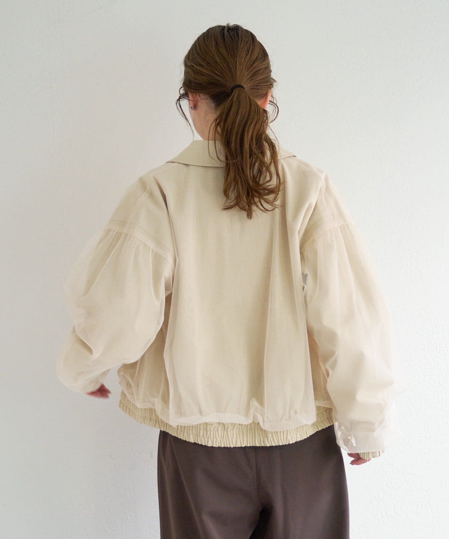 ジャケットにチュールをレイヤードした表情のある一着
