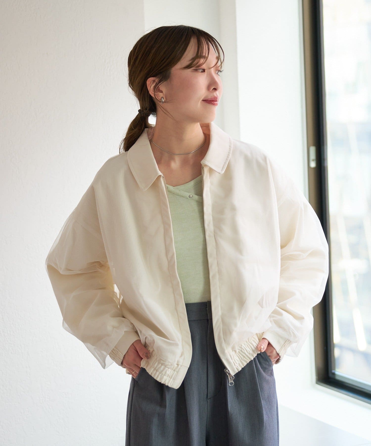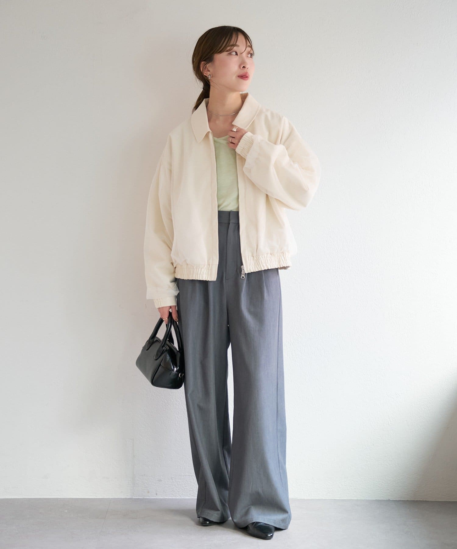 コンパクトすぎないシルエットで、羽織るだけでこなれた印象に仕上がります。