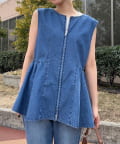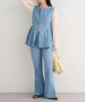 ウエスト切り替えからふわっと広がるペプラムシルエットが、女性らしいラインを引き立てるデニムビスチェ。