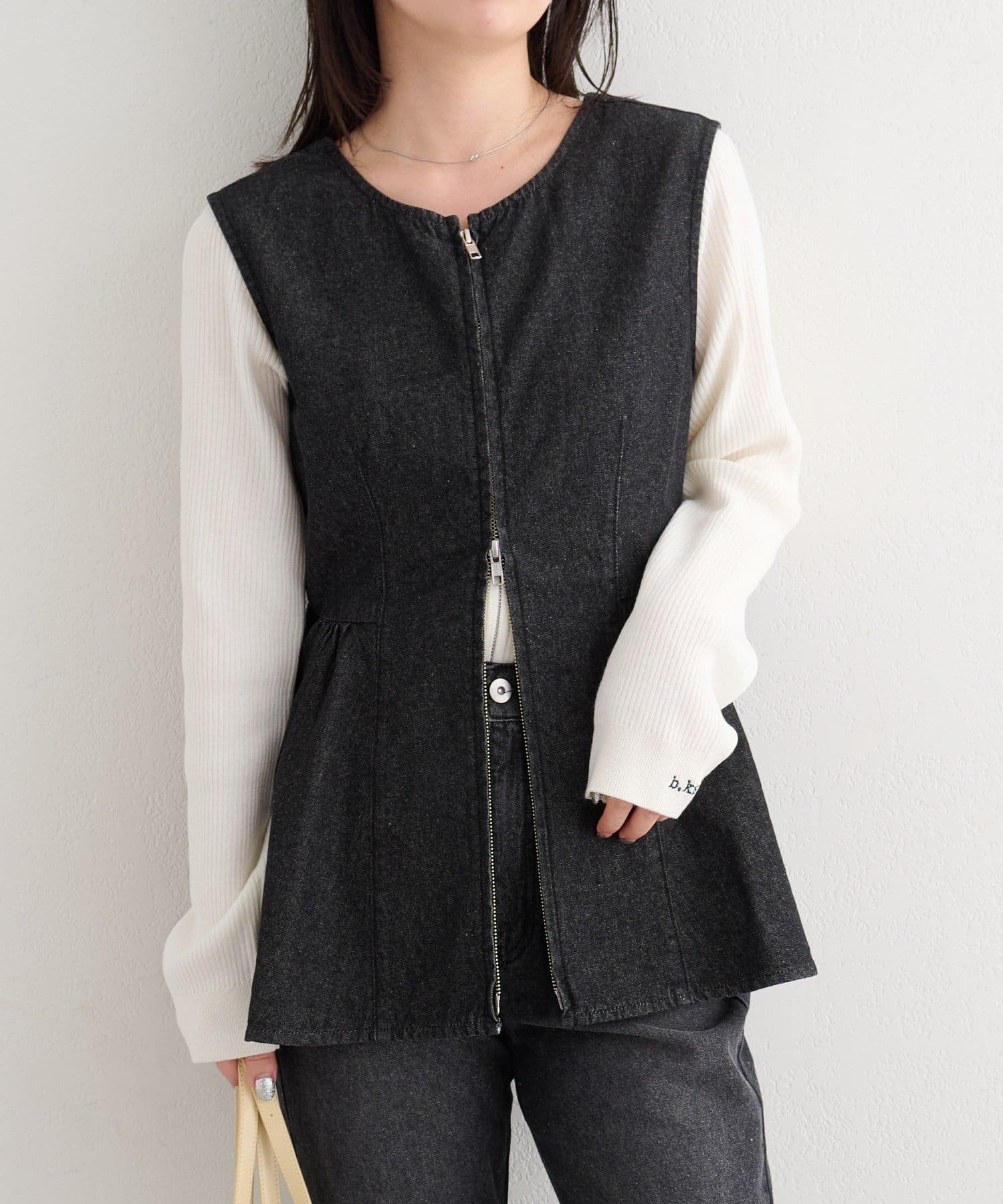 ペプラムで魅せる、美シルエットデニムビスチェ
