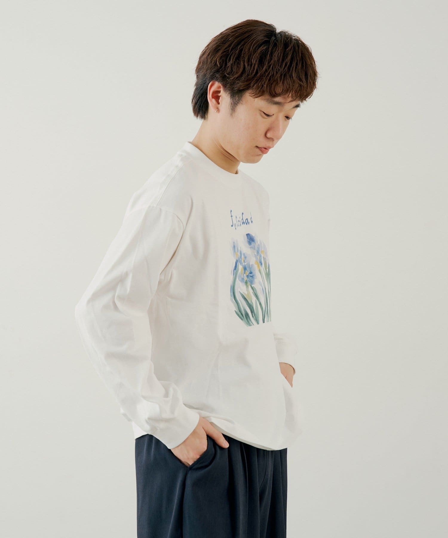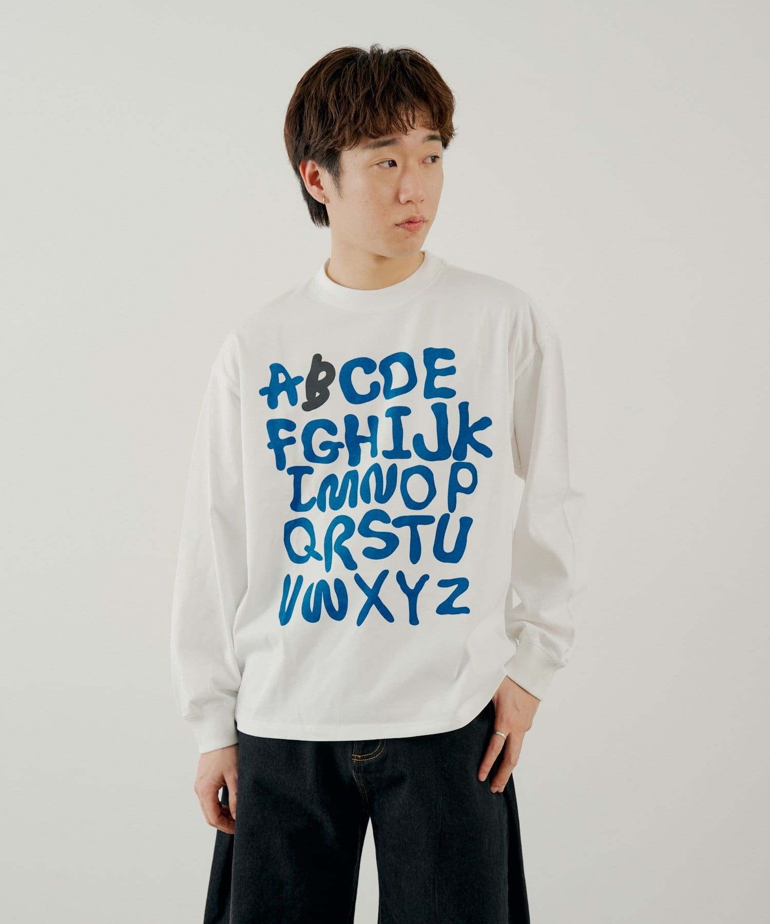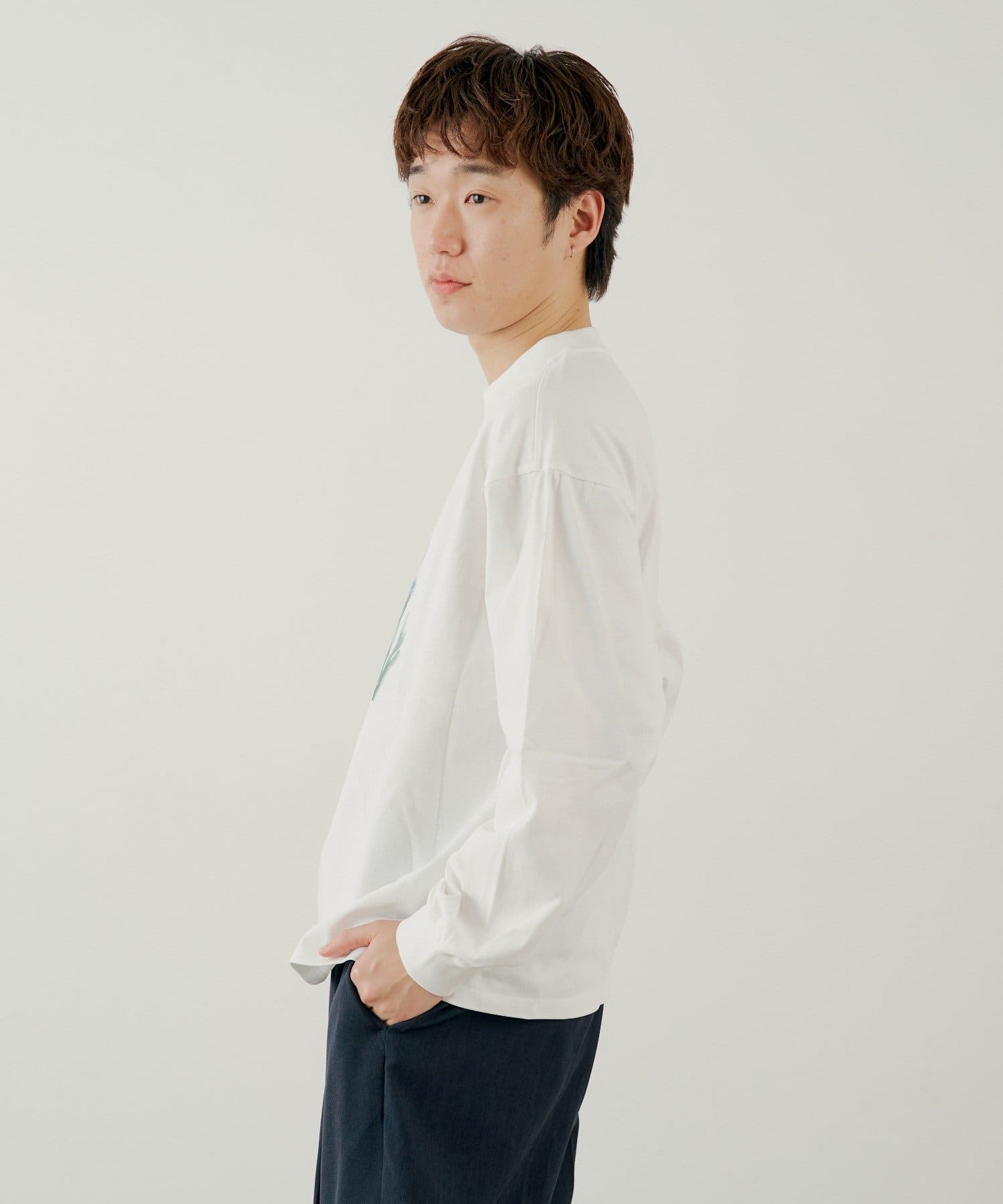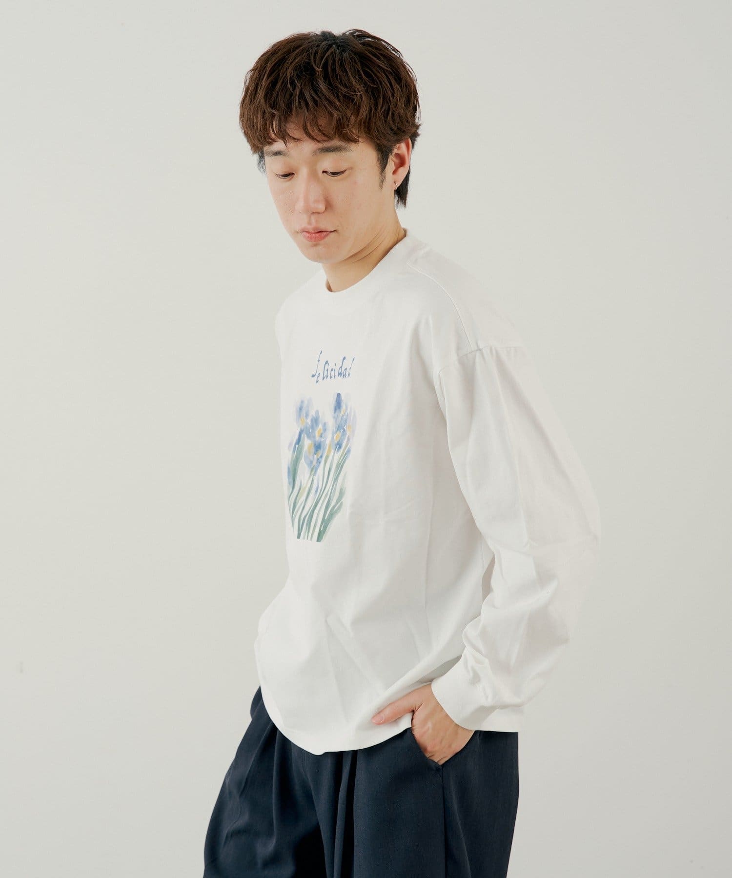 フロントのプリントデザインが目を惹くロングスリーブTEE。