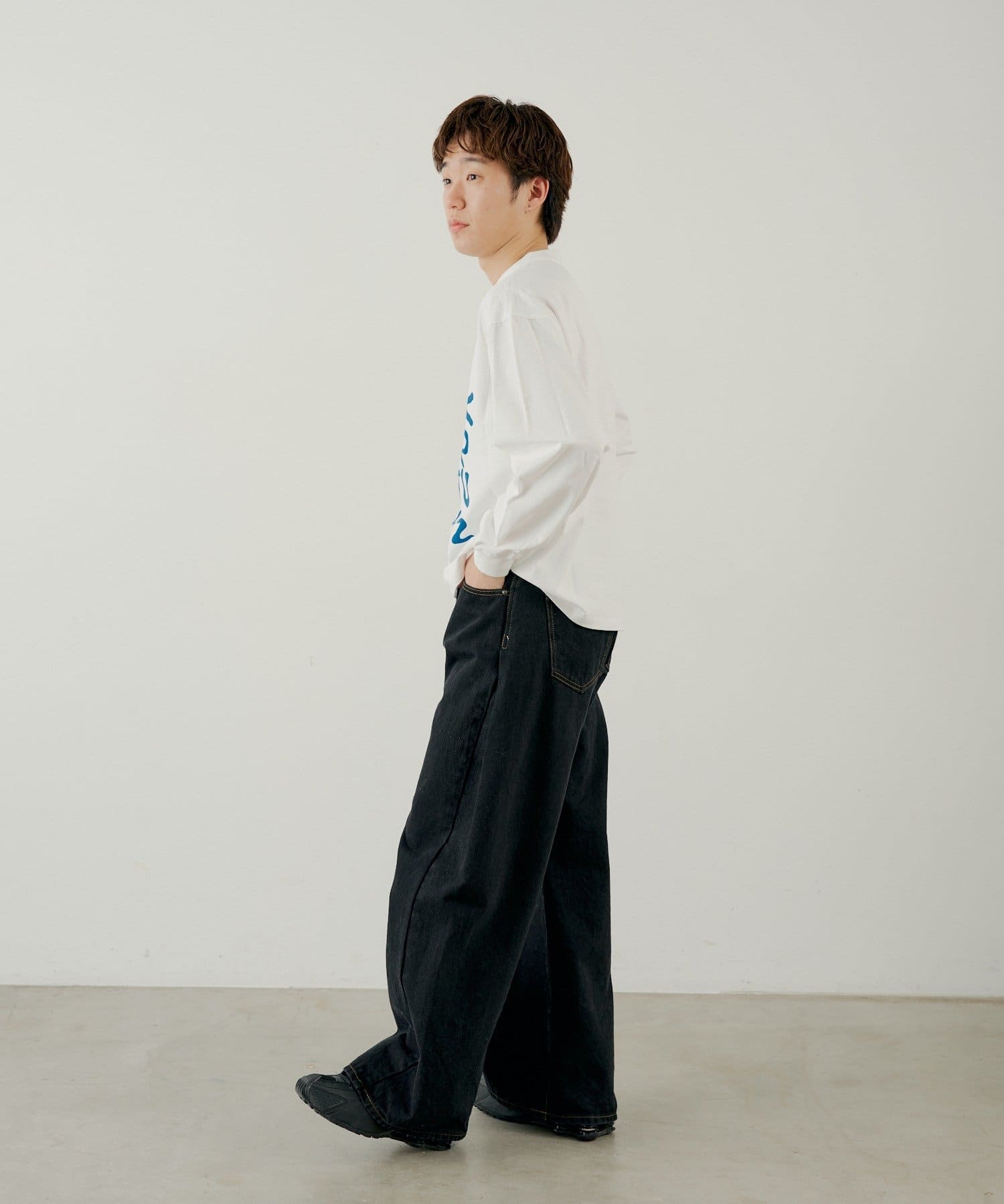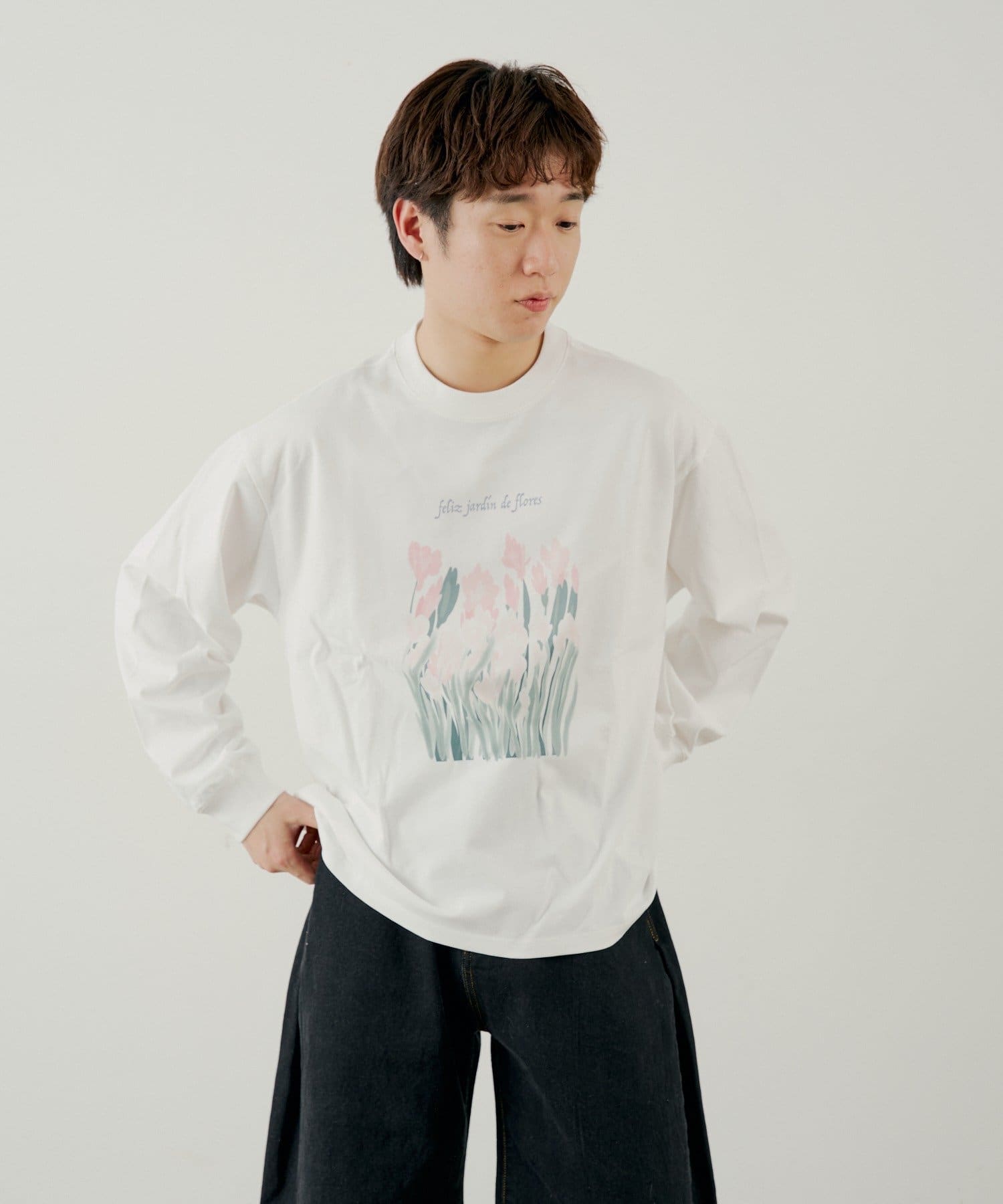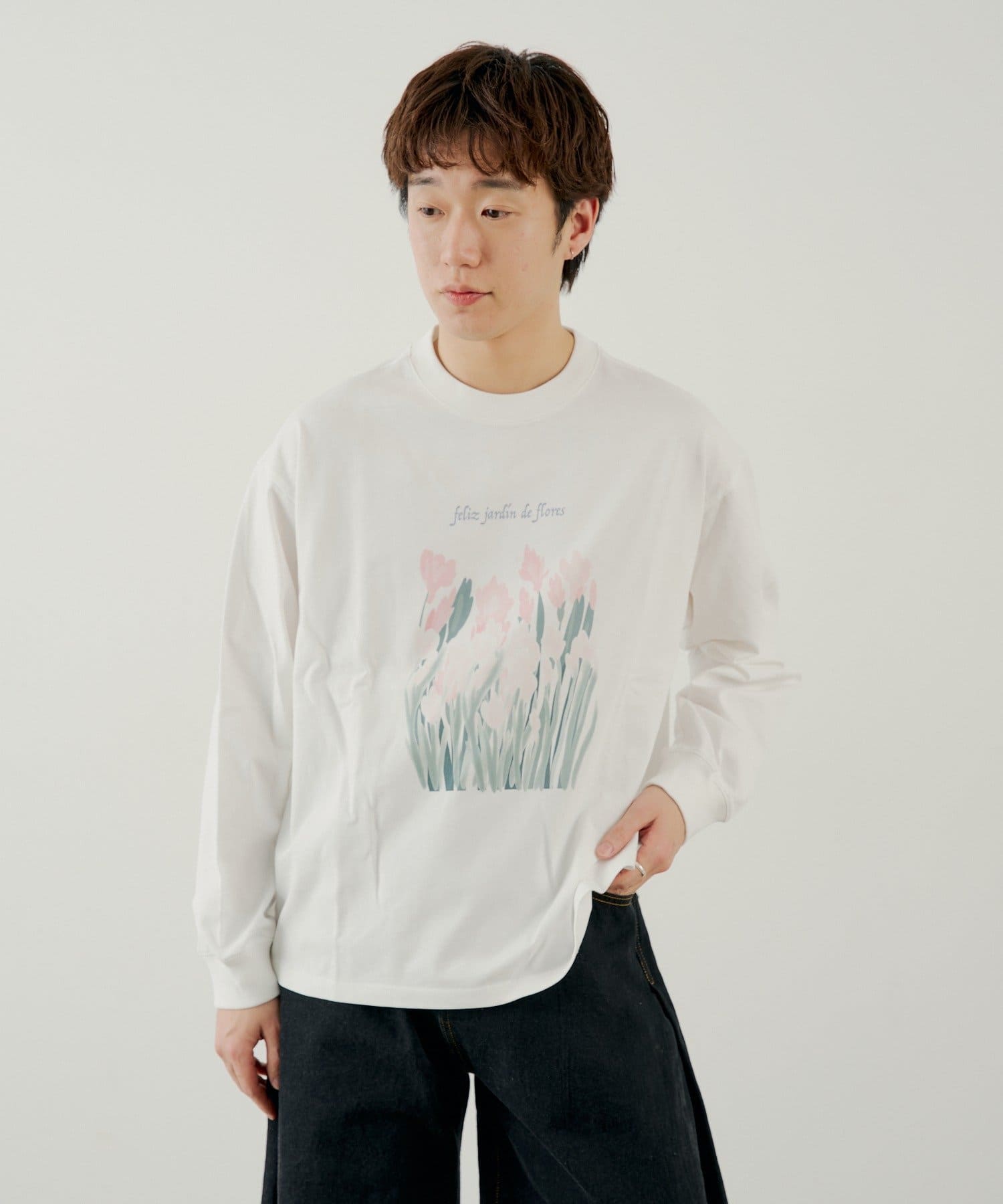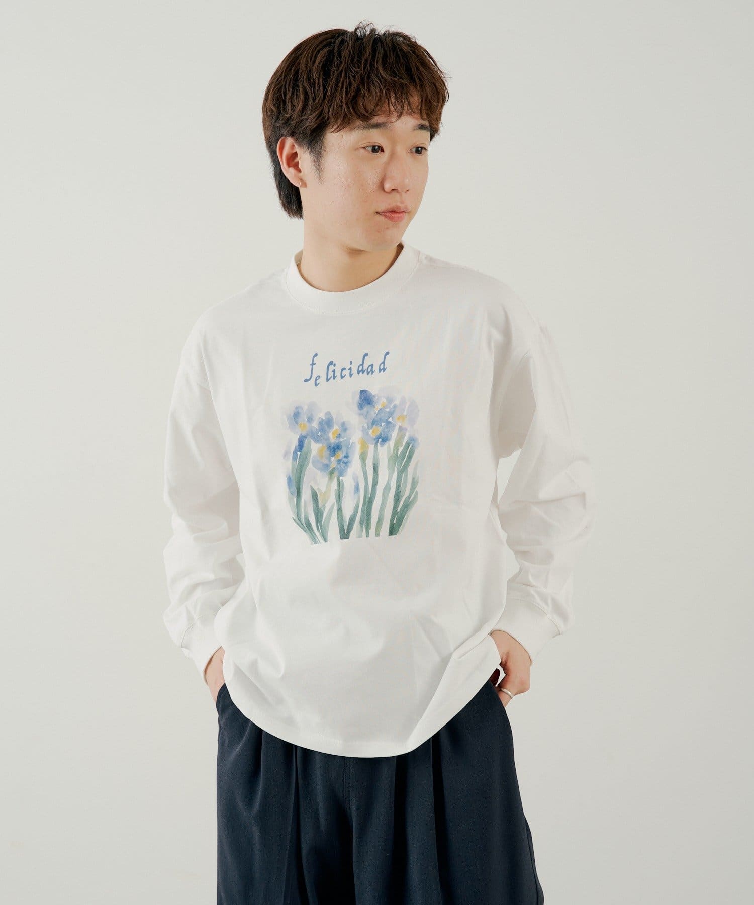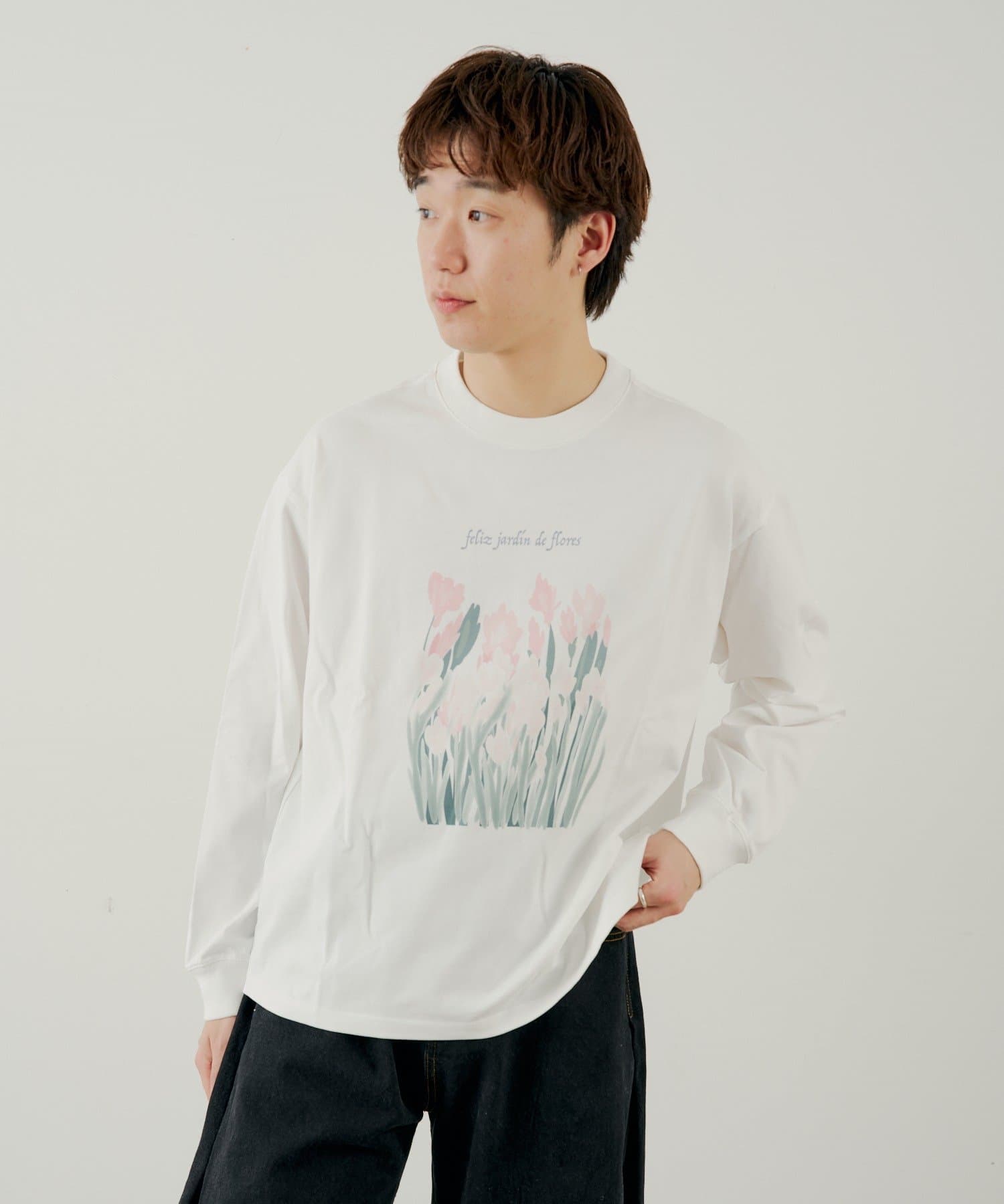 フロントのプリントデザインが目を惹くロングスリーブTEE。