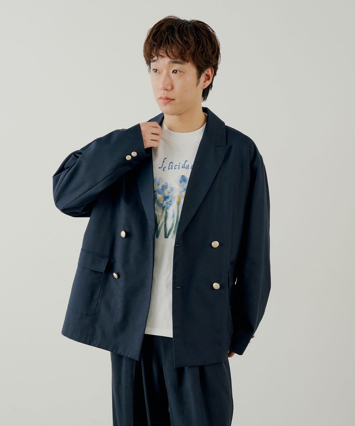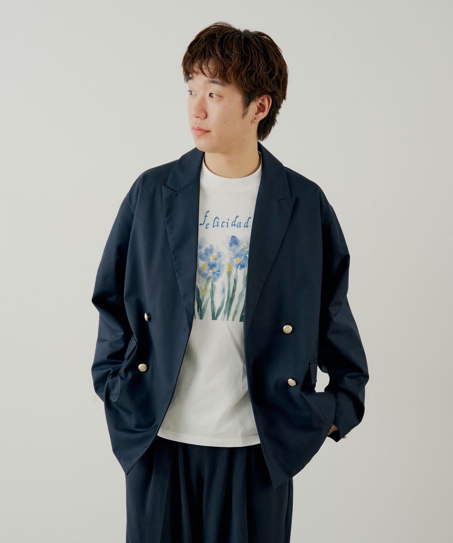 ジャケットやシャツのインナーとしてプリントをアクセントにする着こなしも◎。
