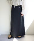 程よい厚みのデニム素材を使用した、ポーチデザインがポイントのロングスカート。
