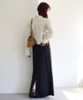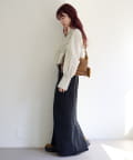 コンパクトなトップスを合わせてスカートの縦ラインを強調した、すっきりとした着こなしがおすすめ。