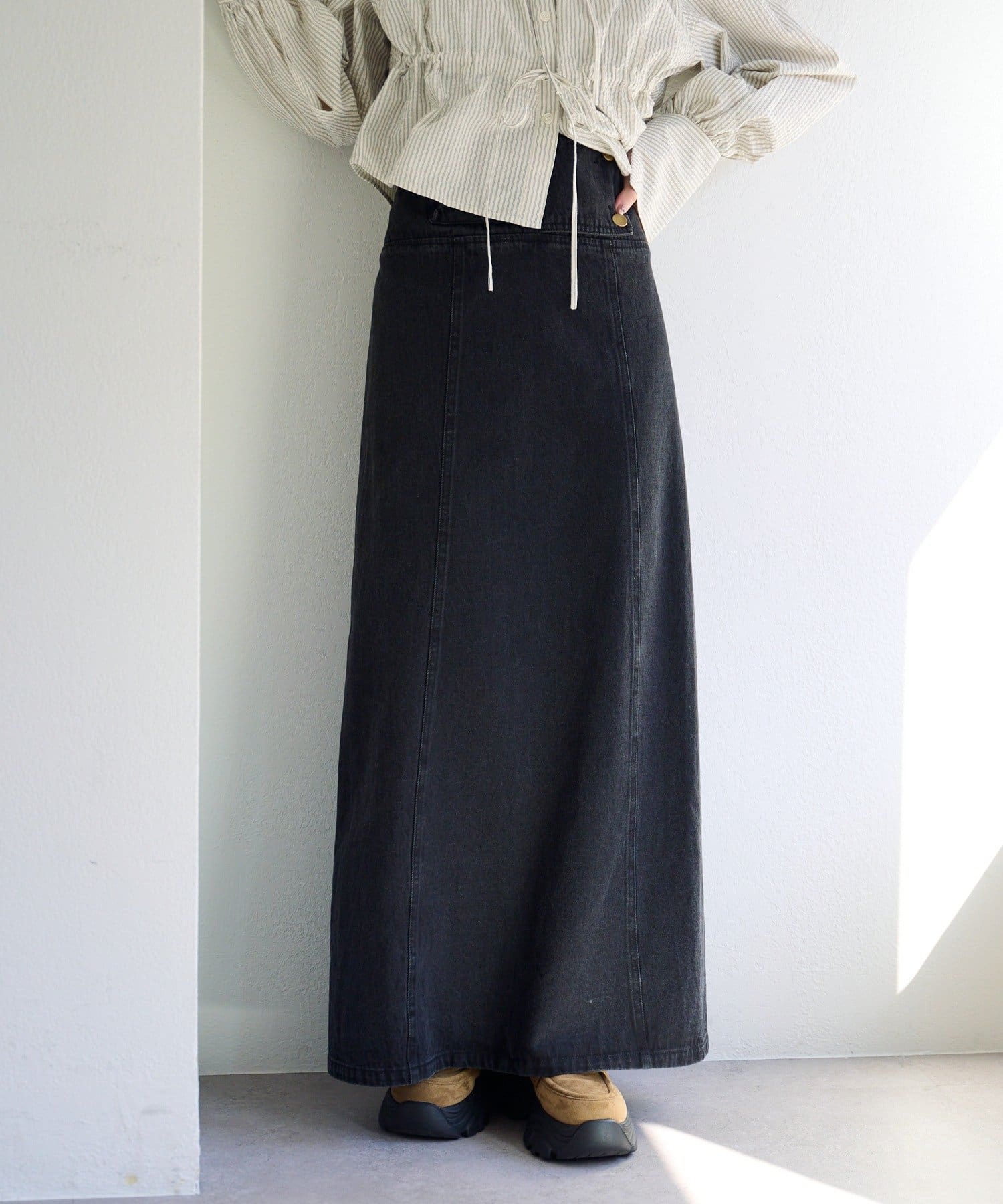 【2サイズ展開/低身長サイズ】ポーチデニムロングスカート