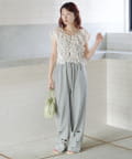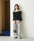 甘めブラウスやシアートップスでフェミニンミックスに。