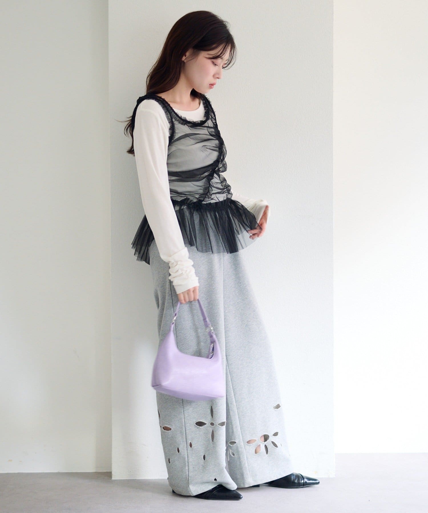 動くたびに肌がちらっと覗き、抜け感と女性らしさを演出してくれるデザイン。