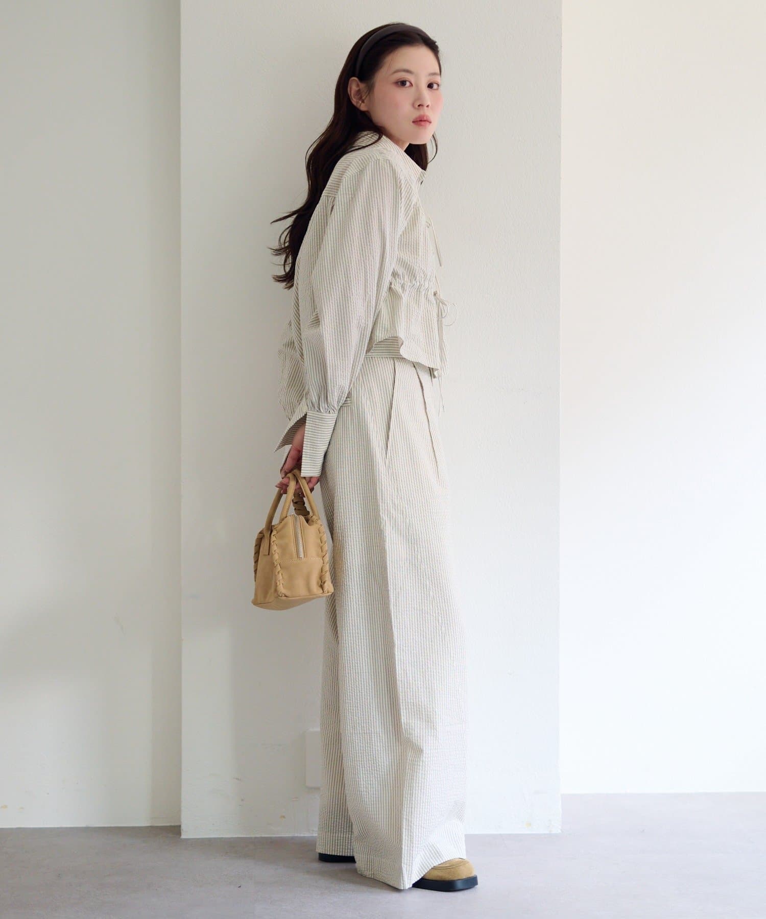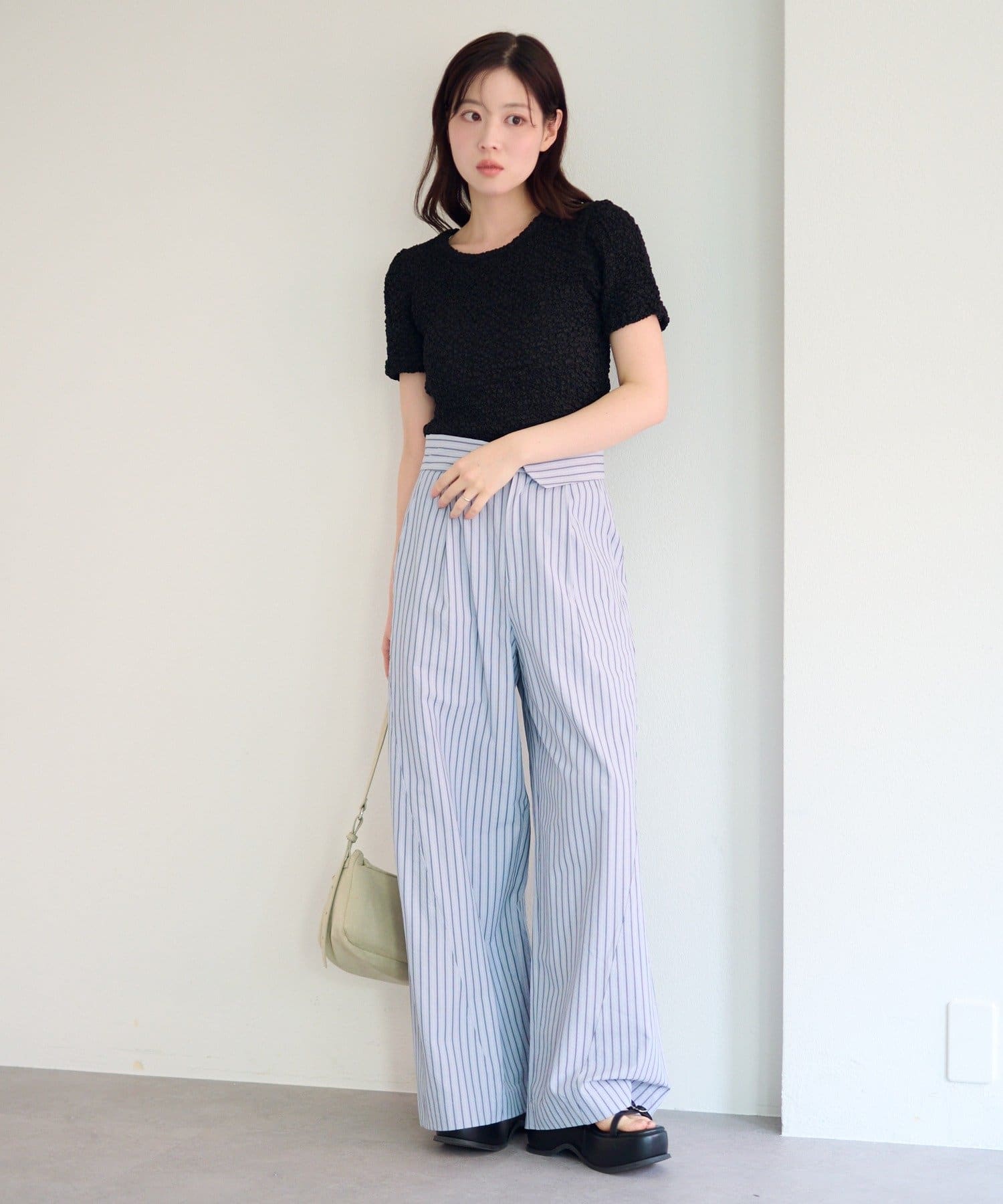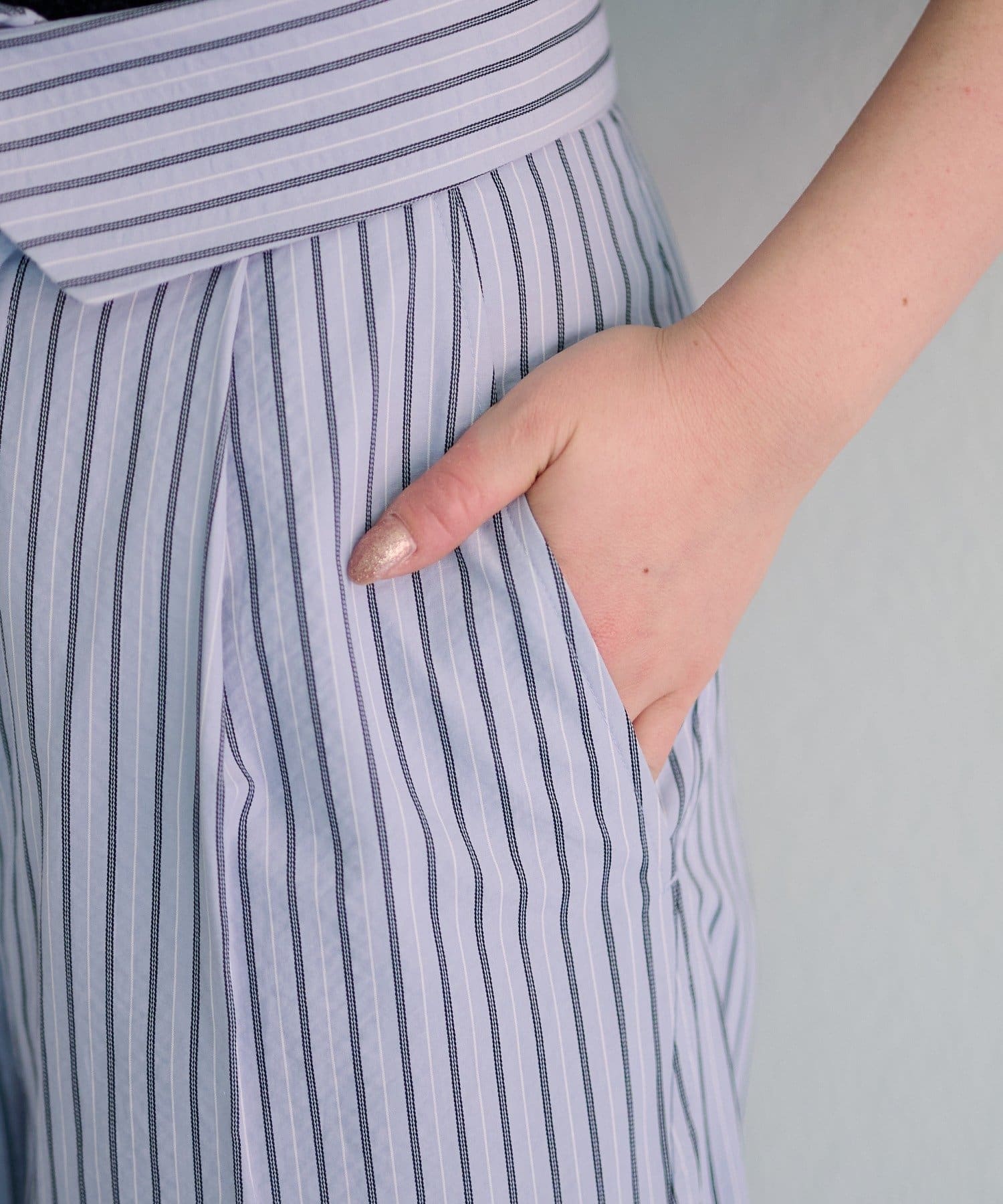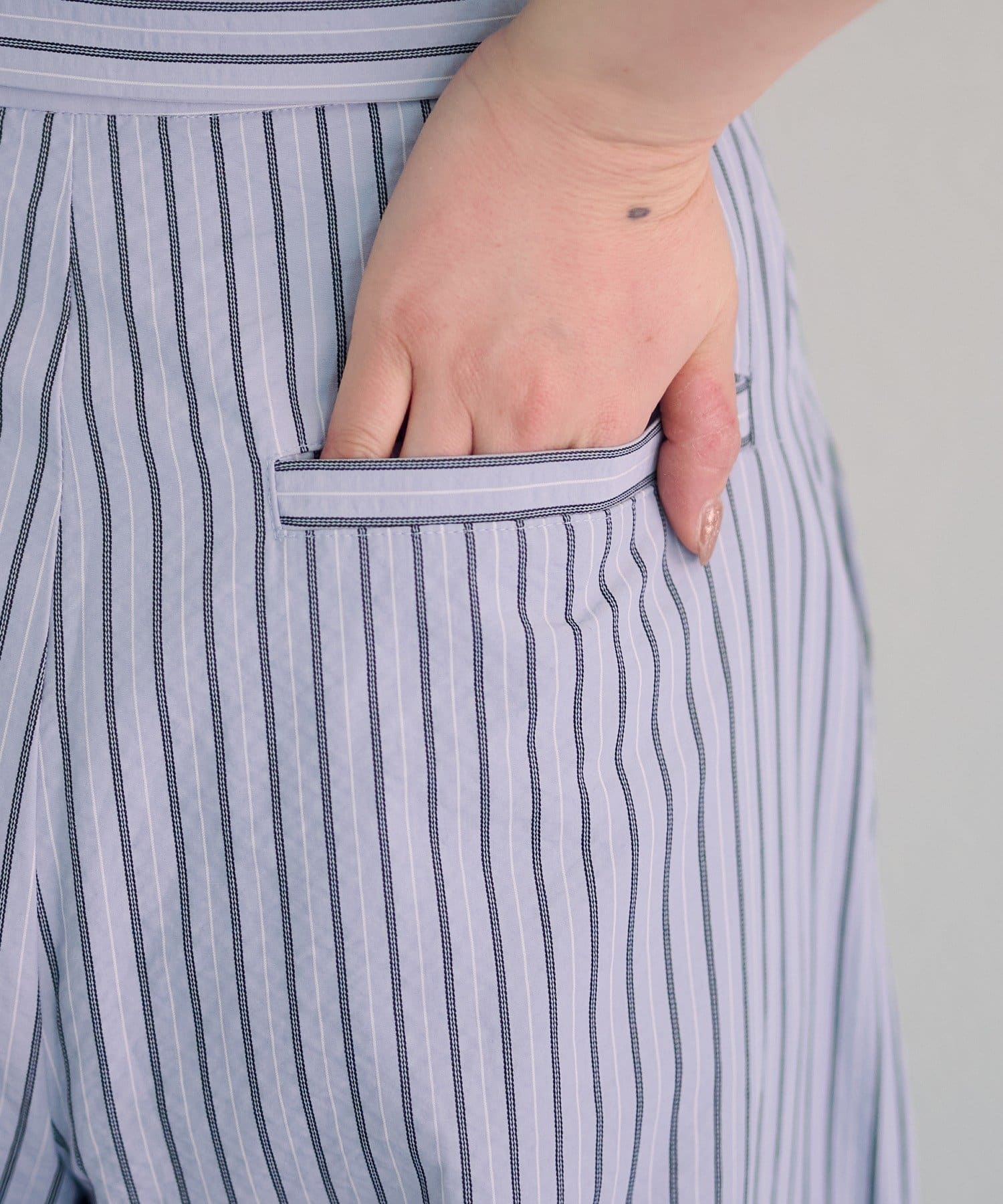【2.15(日)0:00発売/SETUP対応/2サイズ展開/低身長サイズ】ストライプフラップパンツ