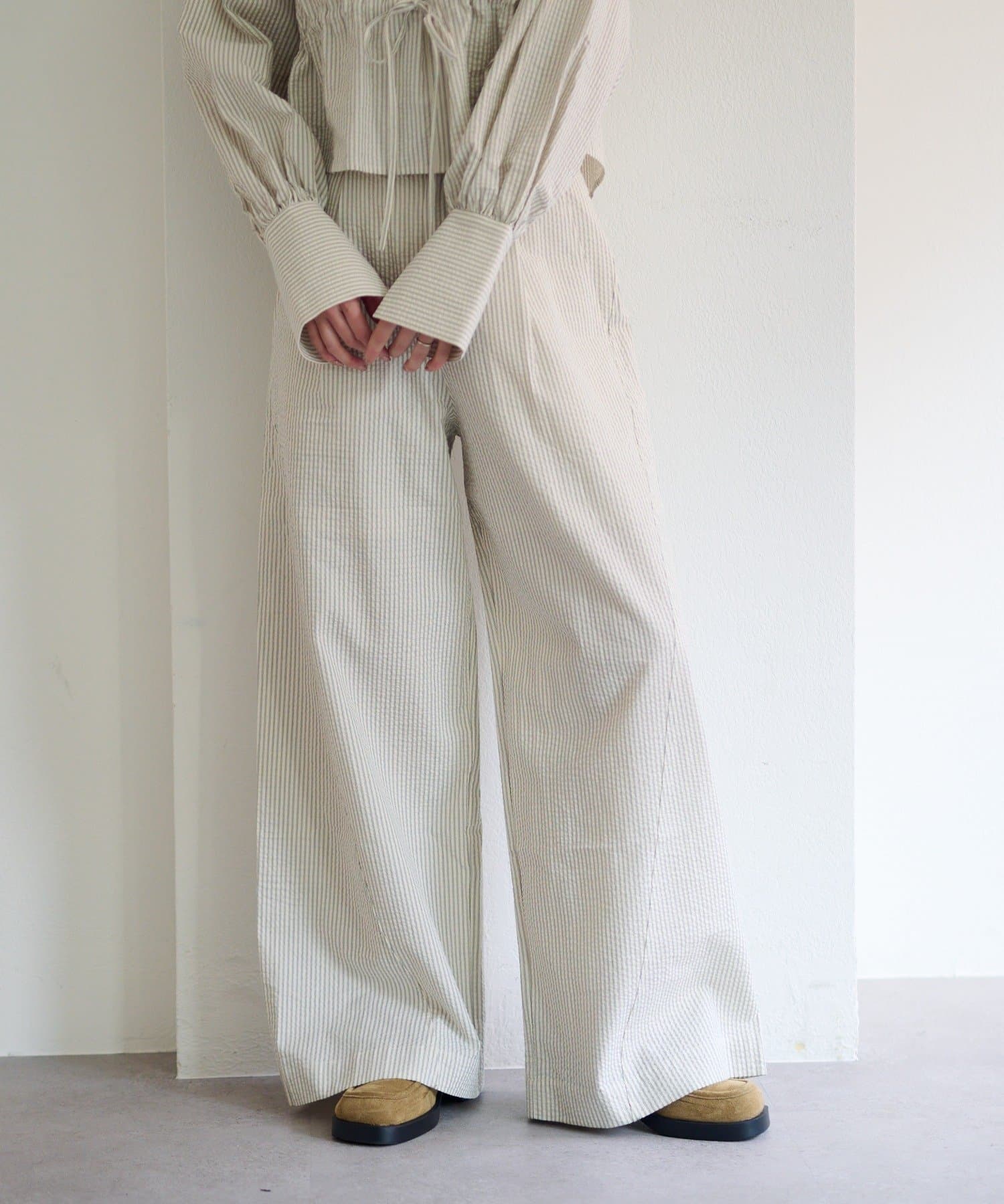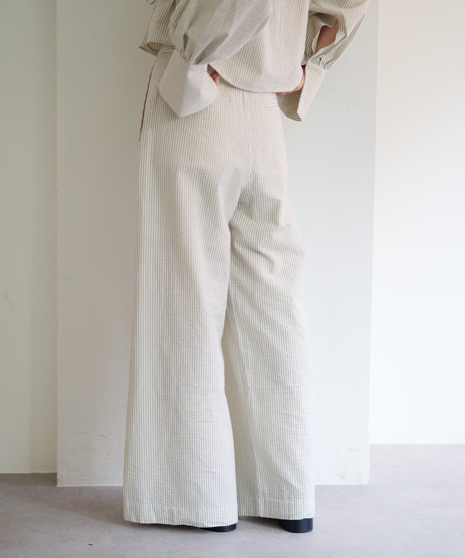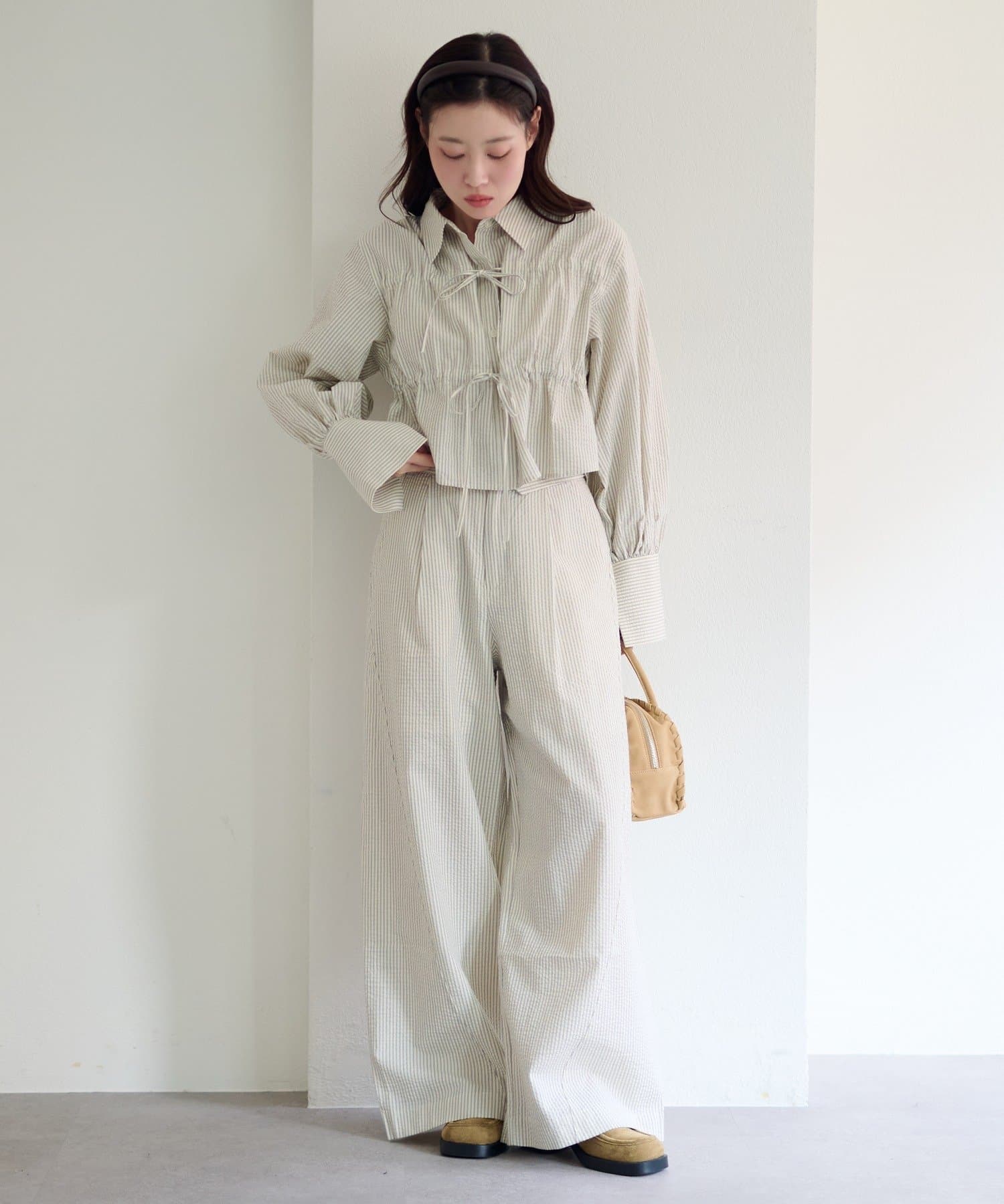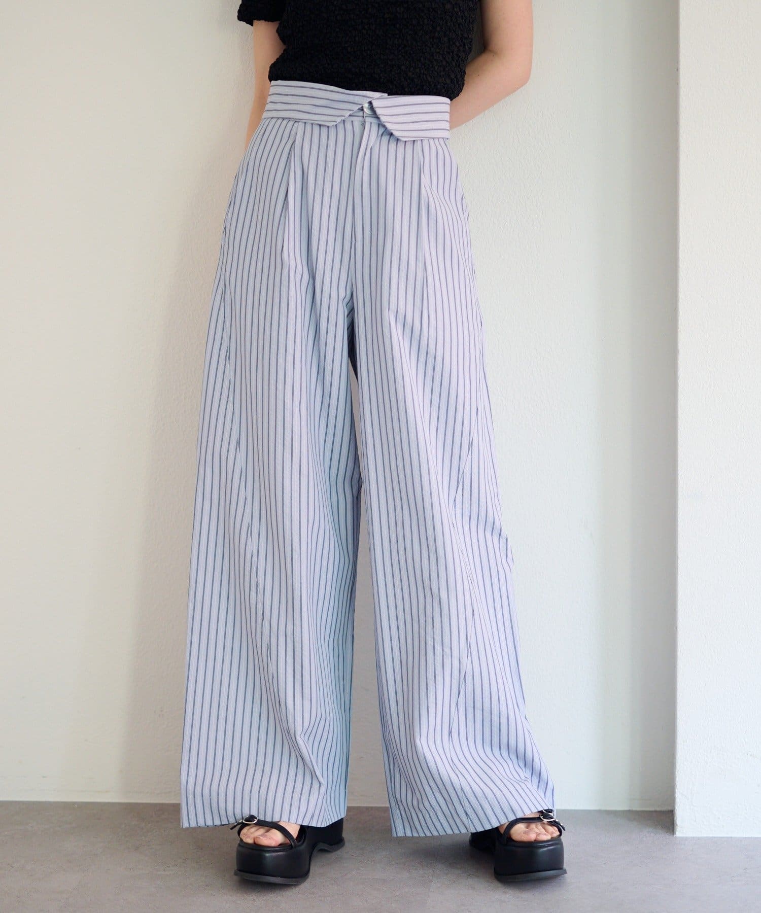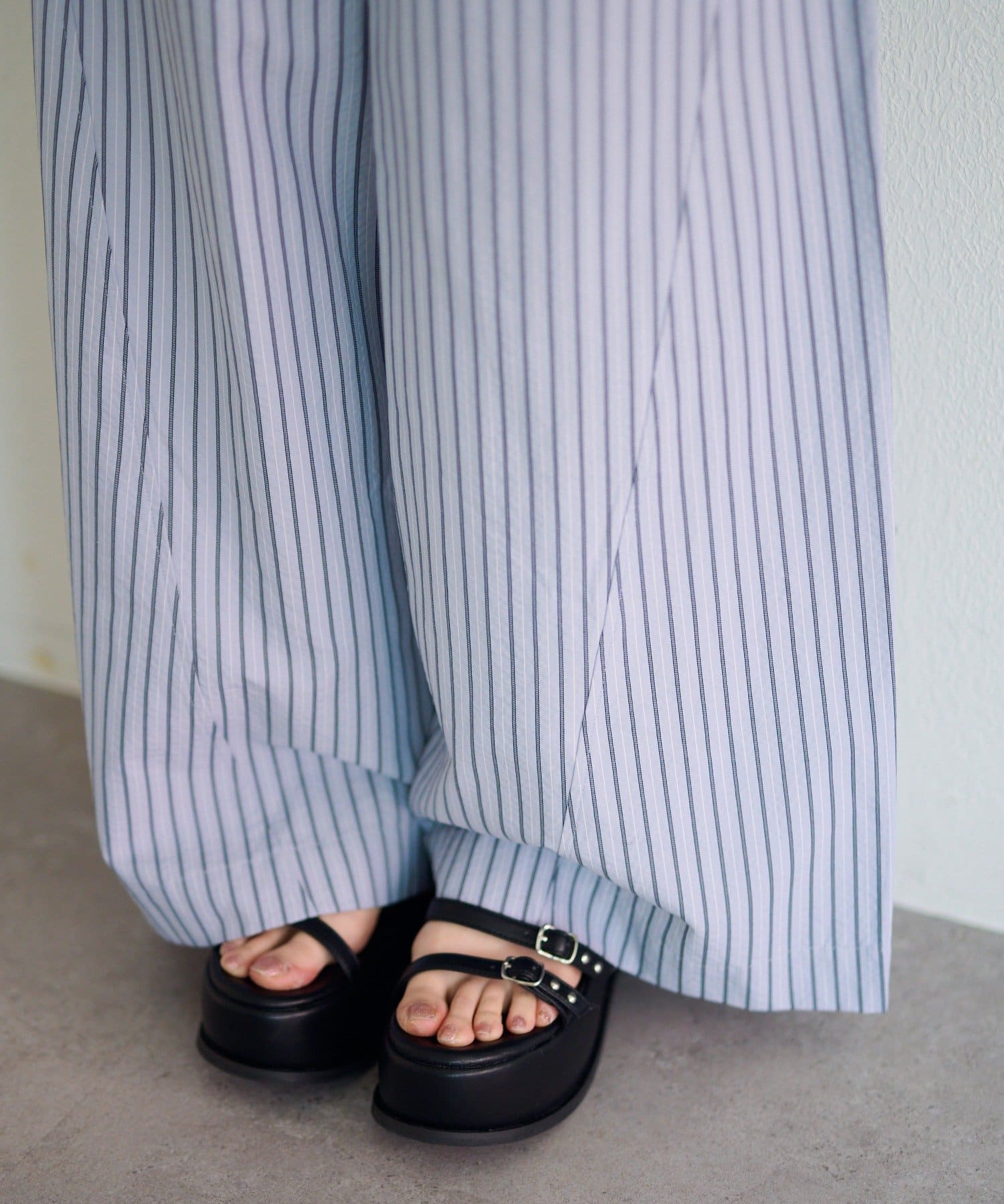 【2.15(日)0:00発売/SETUP対応/2サイズ展開/低身長サイズ】ストライプフラップパンツ