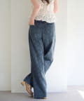 ストレートに近いワイドシルエットで、脚のラインを拾いにくく、すっきりとした縦ラインを演出。