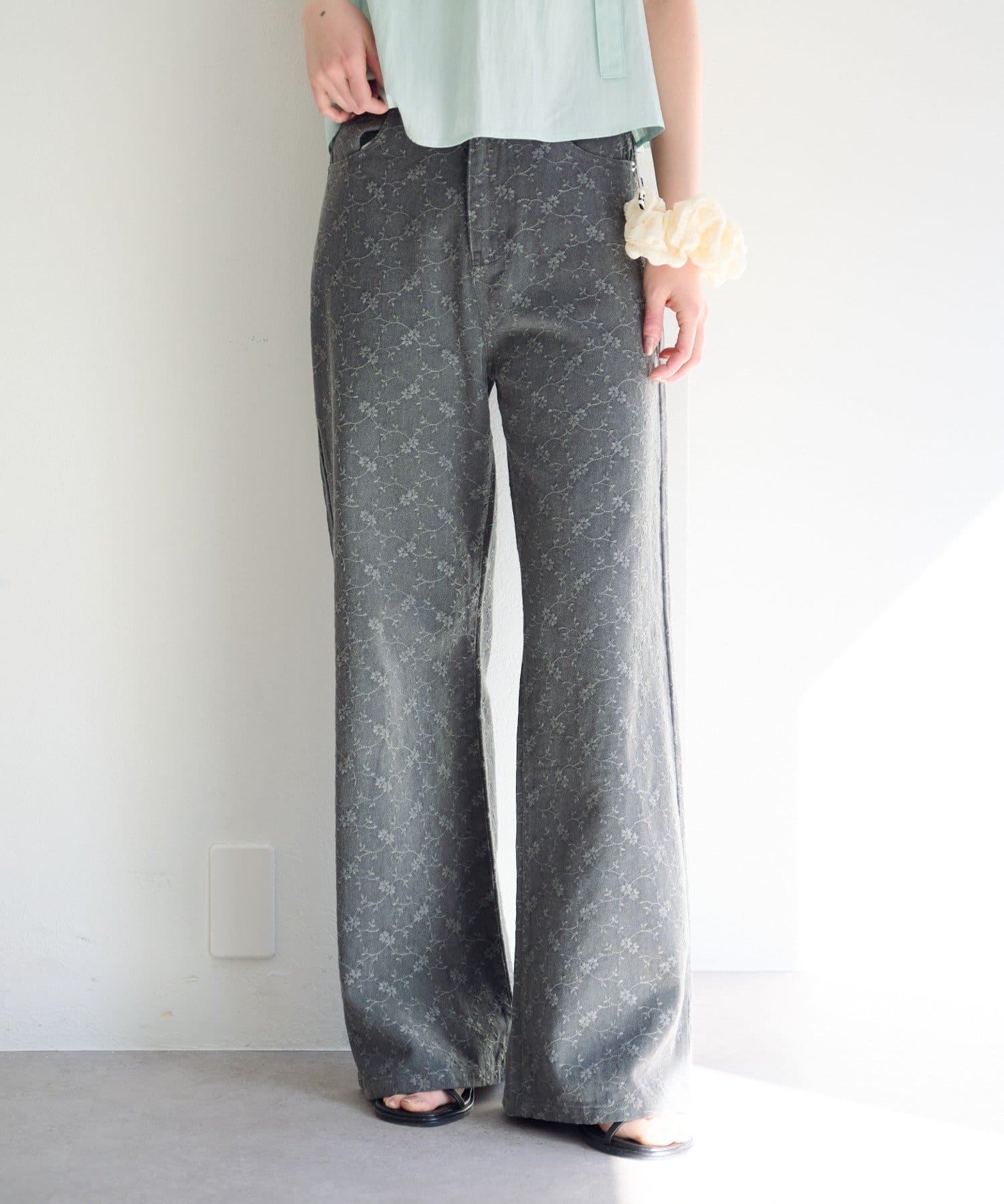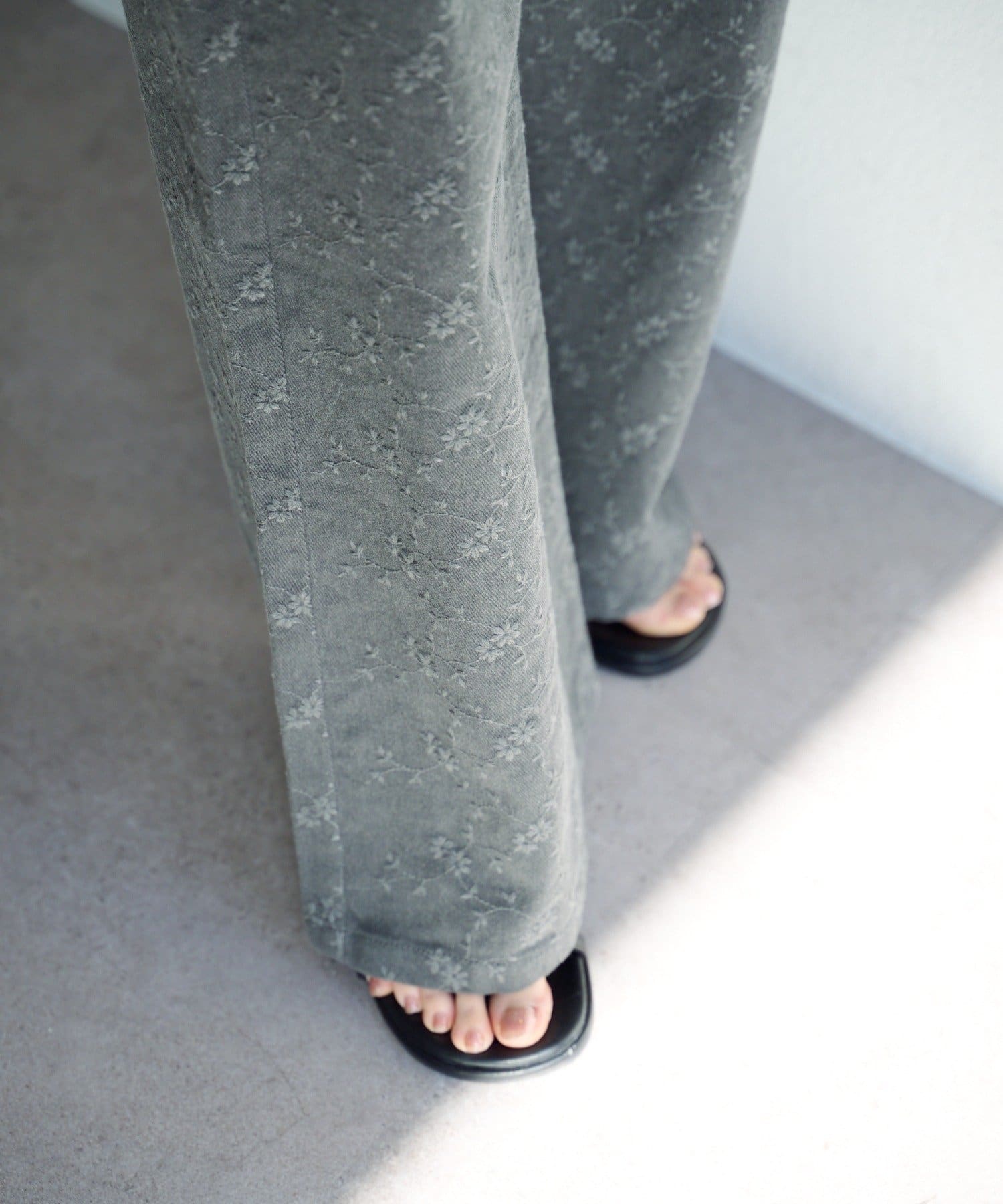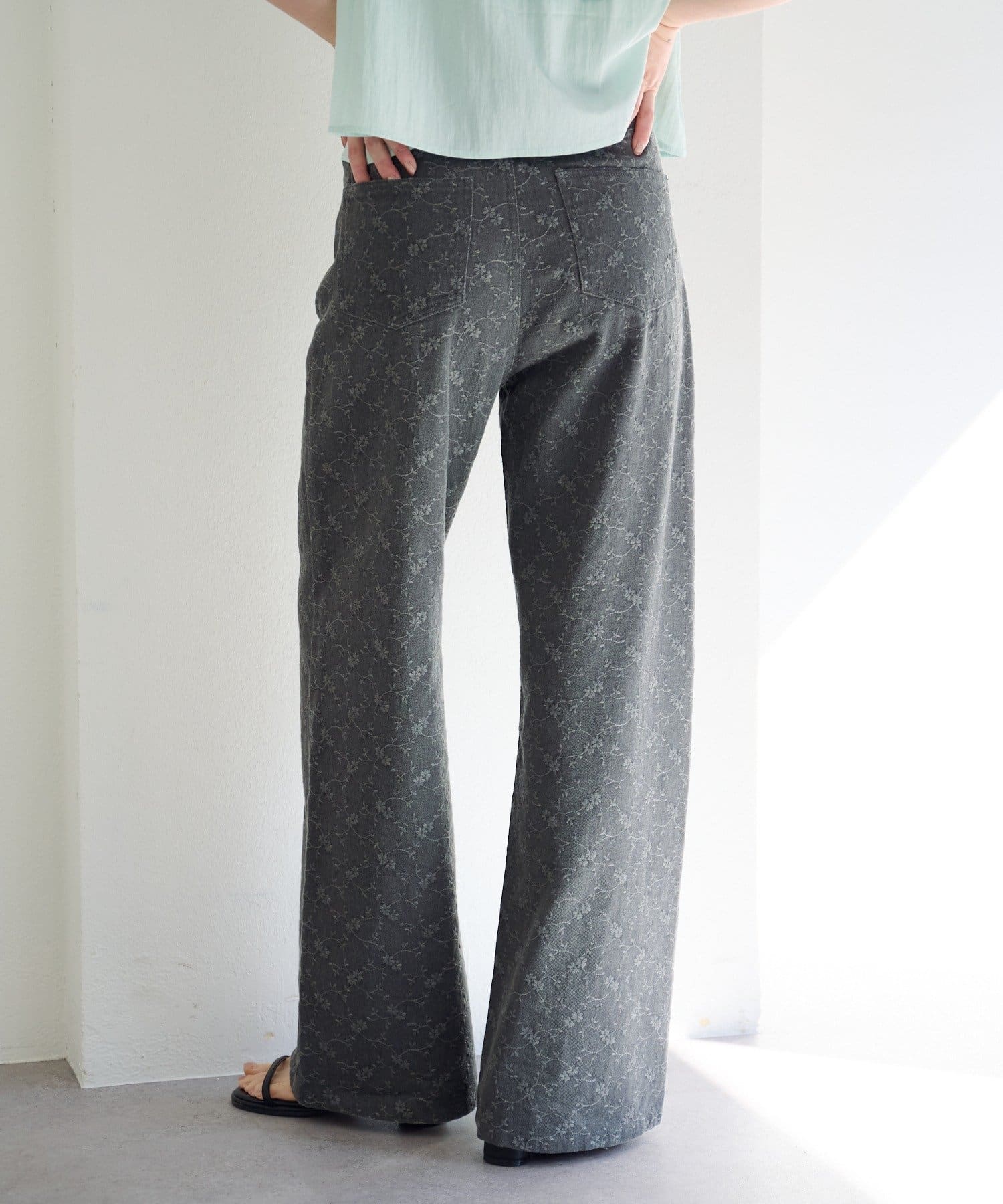 繊細なフラワー刺繍を全面に施した、存在感のあるデニムパンツ
