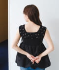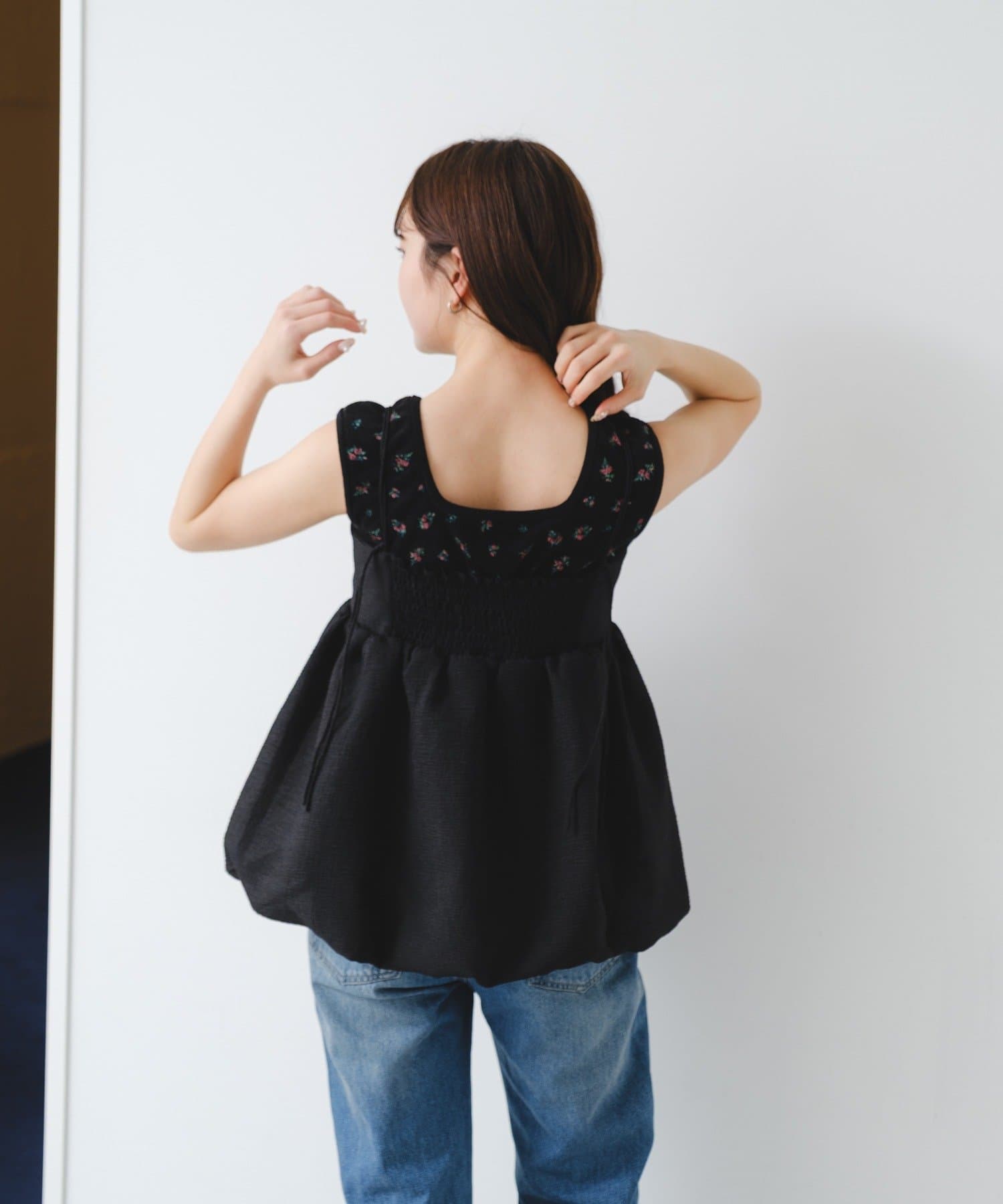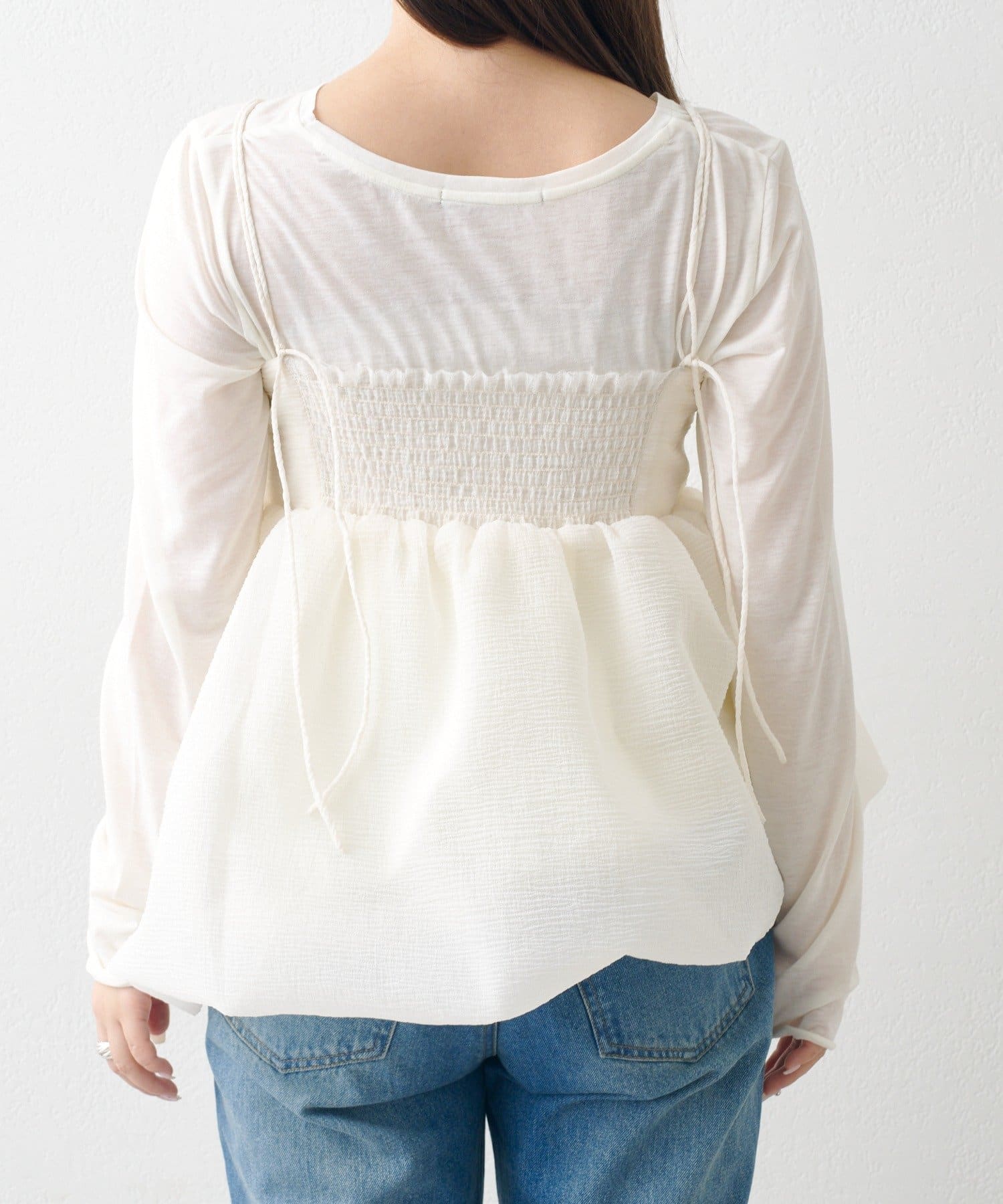 オーガンジー素材を使用したフェミニンムード漂うビスチェ