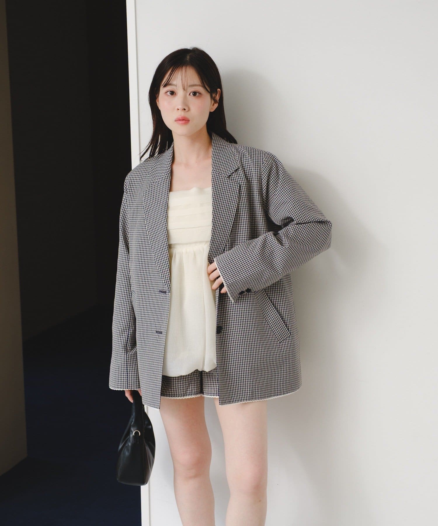 Tシャツやタンクトップ、シアートップスの上に重ねるだけで、トレンド感のあるレイヤードスタイルに。