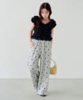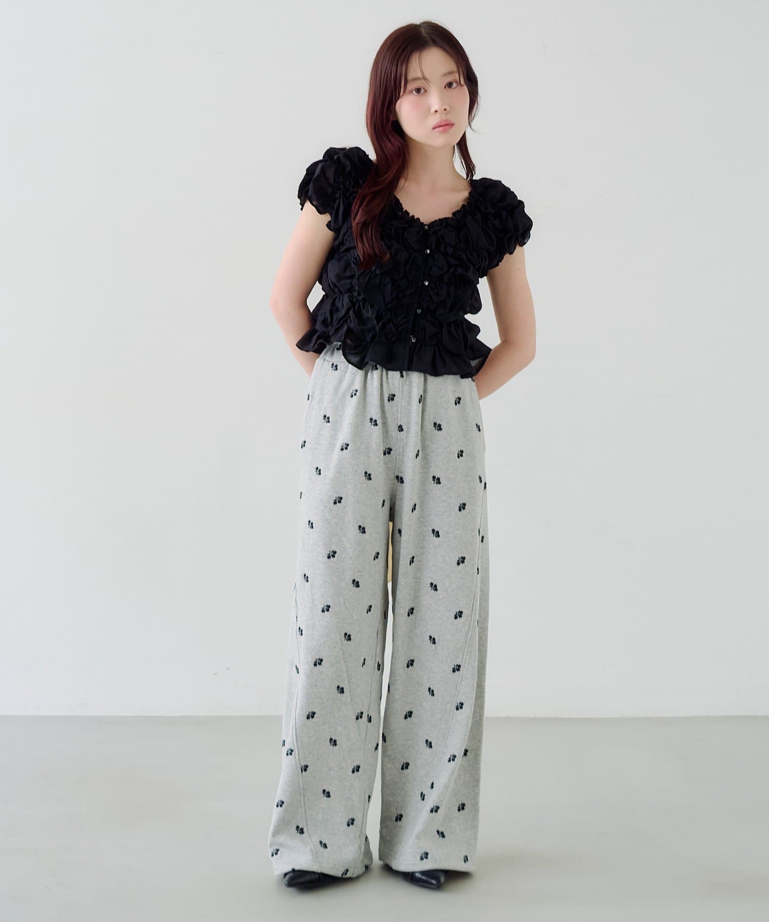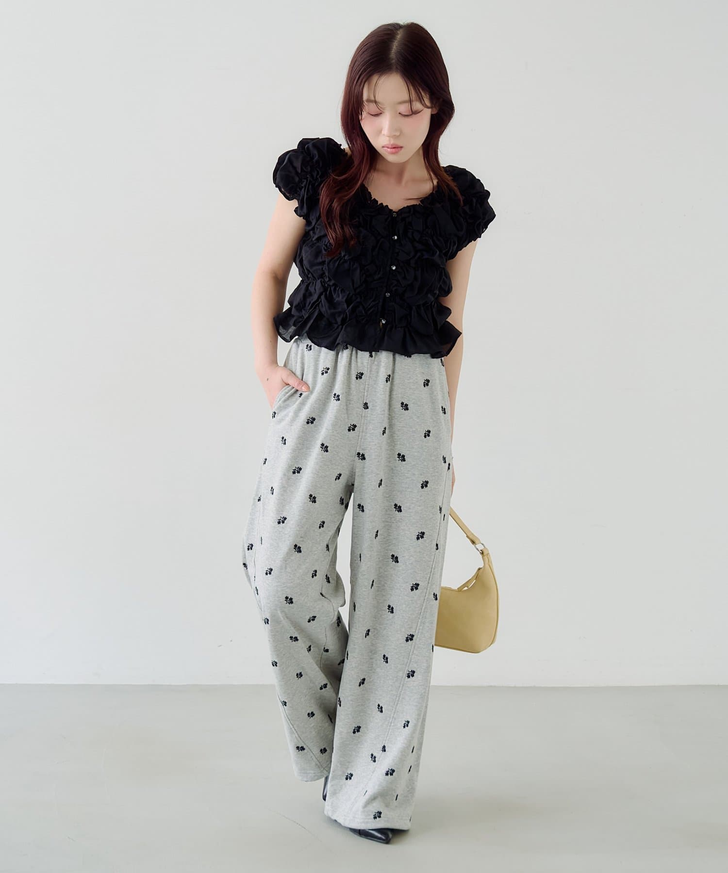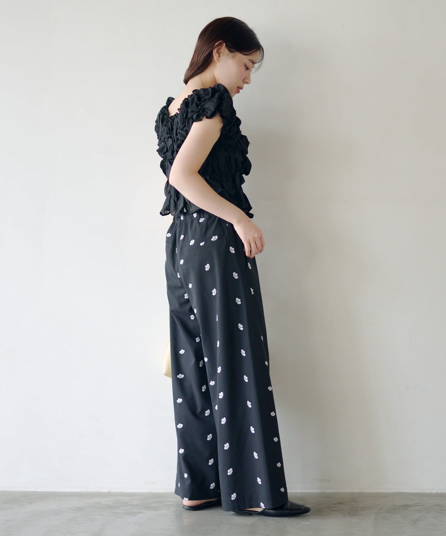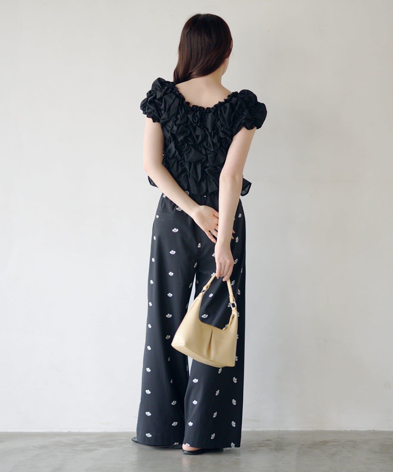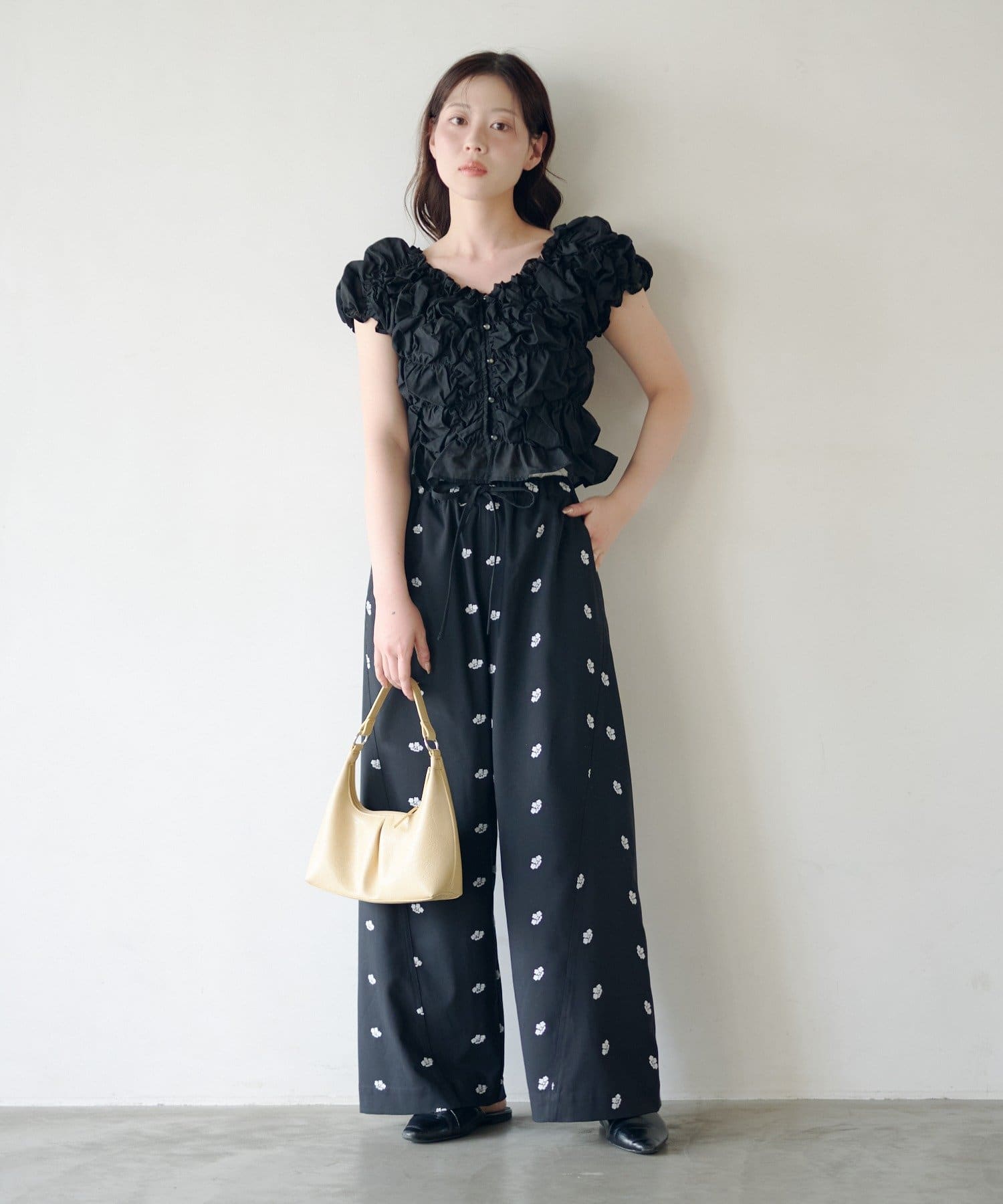 ギャザーとフリルが印象的なフェミニンムード漂うブラウス
