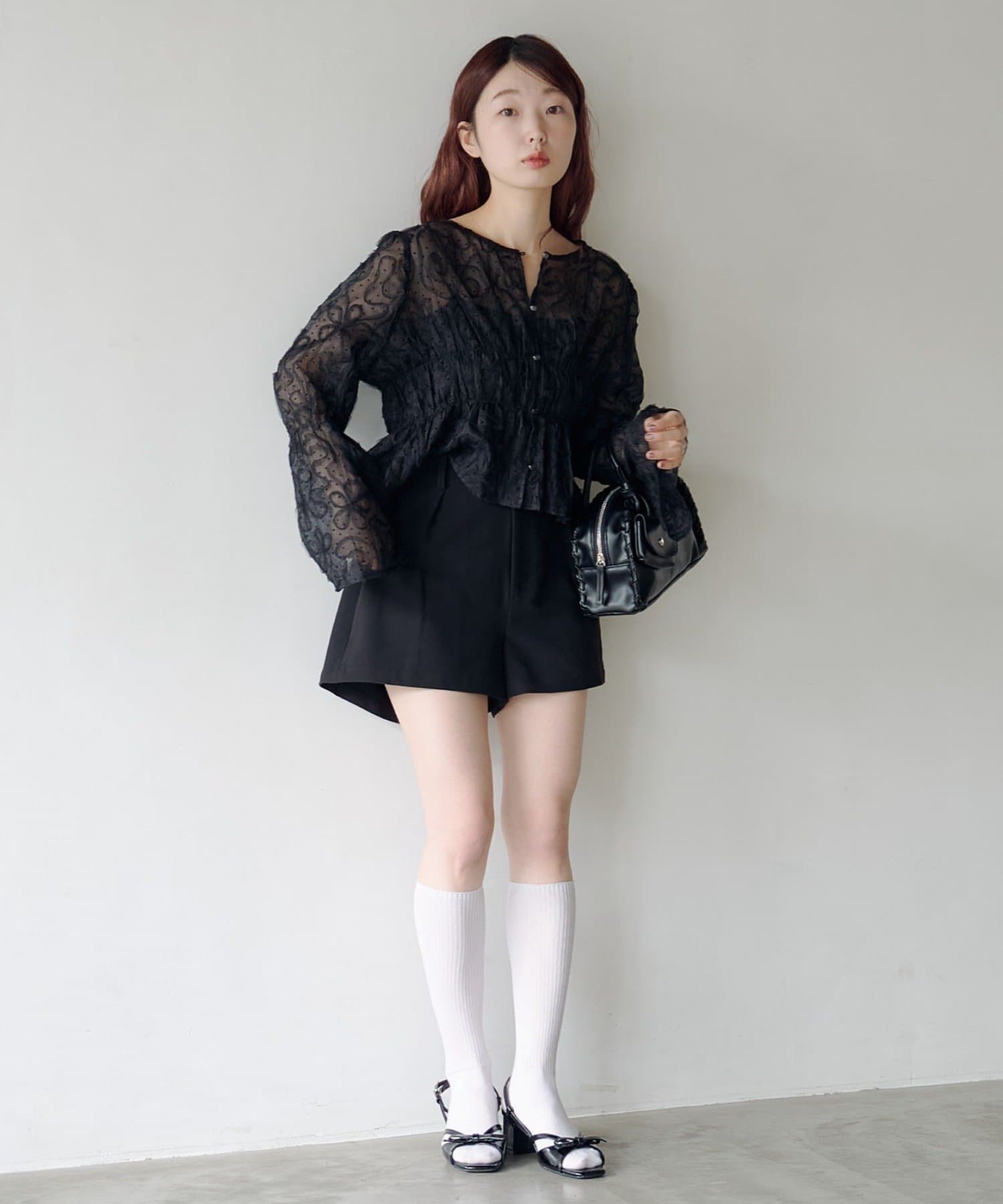 ミニボトムとのバランスは韓国トレンドの雰囲気に。