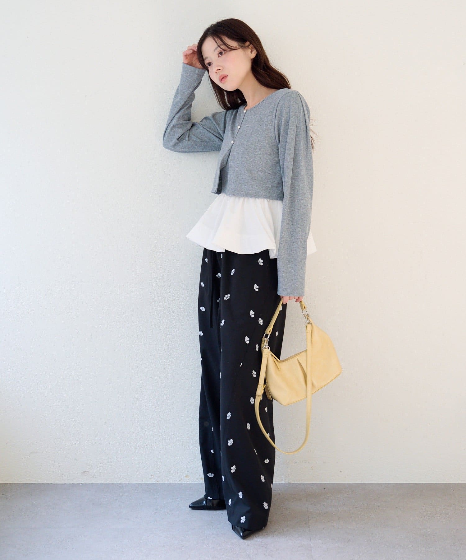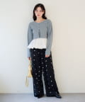 フラワーステッチワイドパンツ