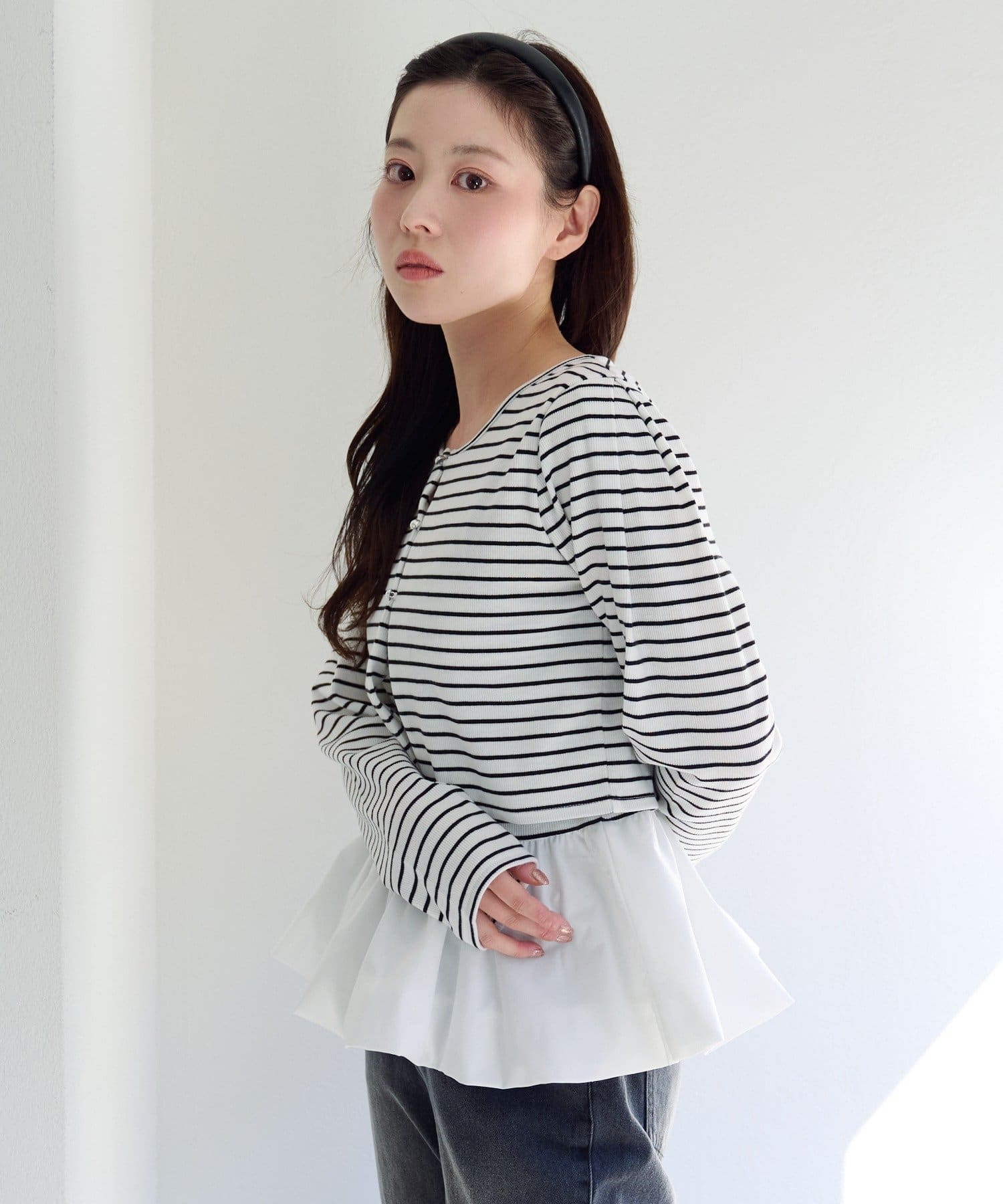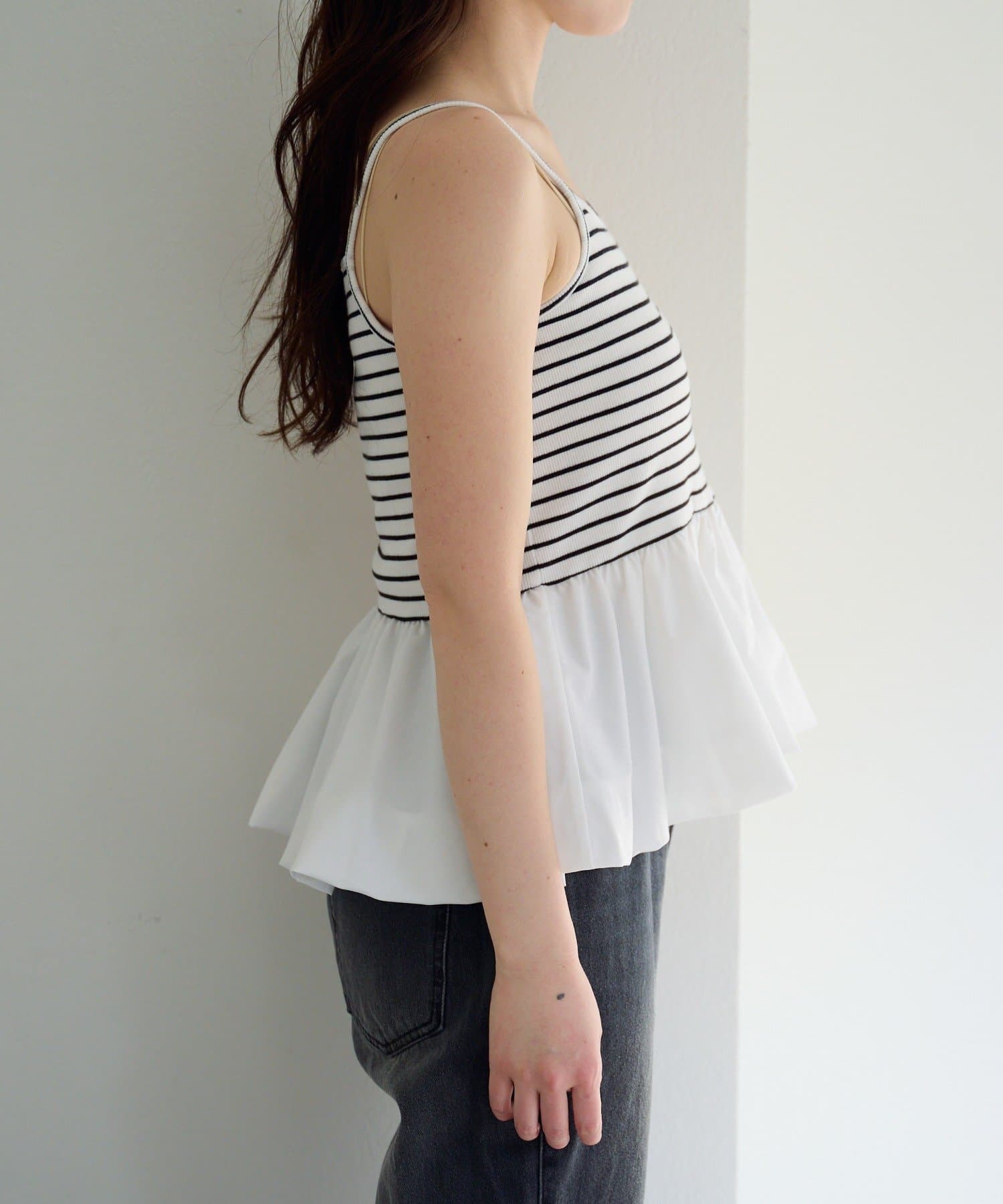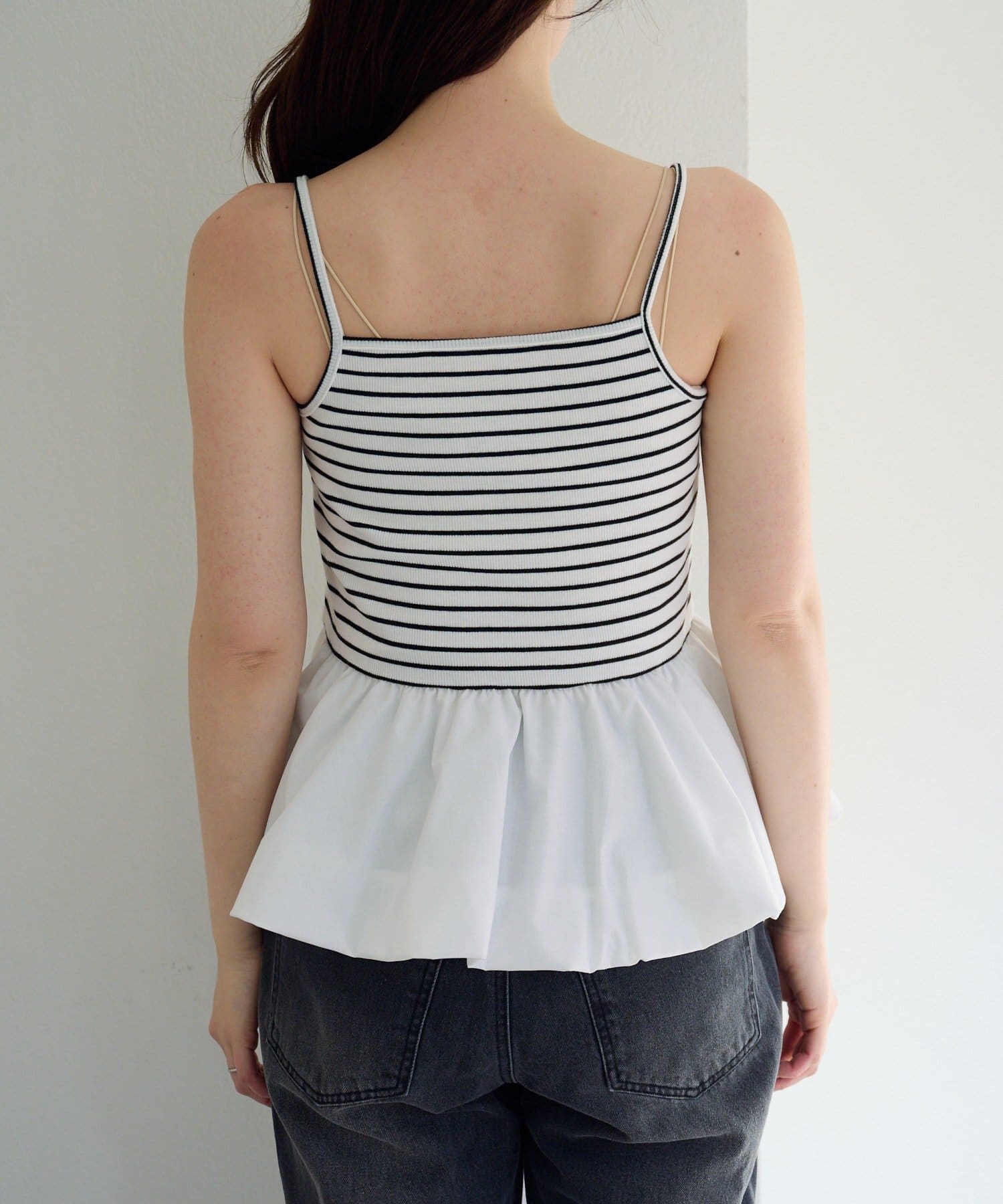 キャミソール部分はハリ感のある素材で、バルーンシルエットをきれいにキープしてくれます。