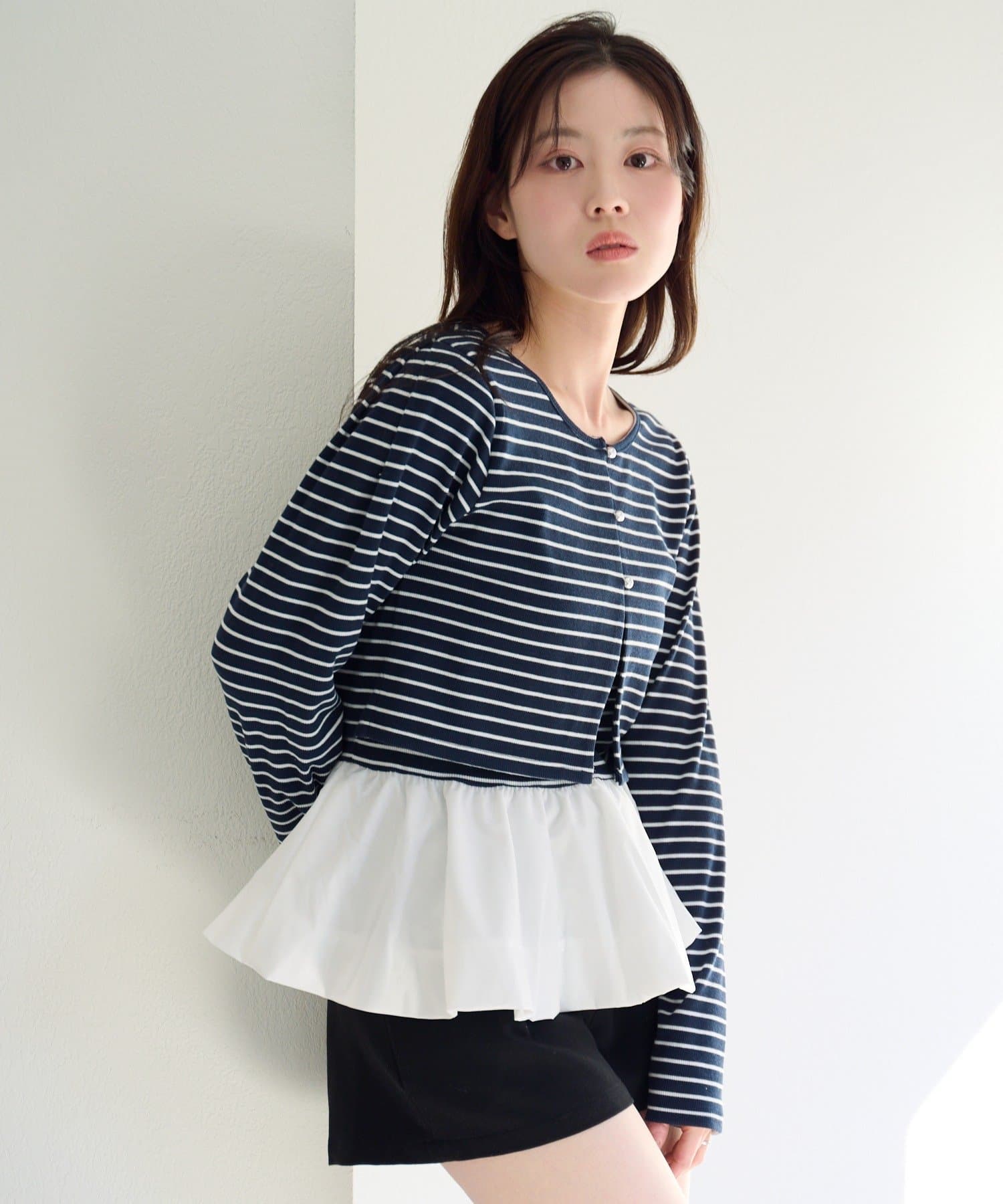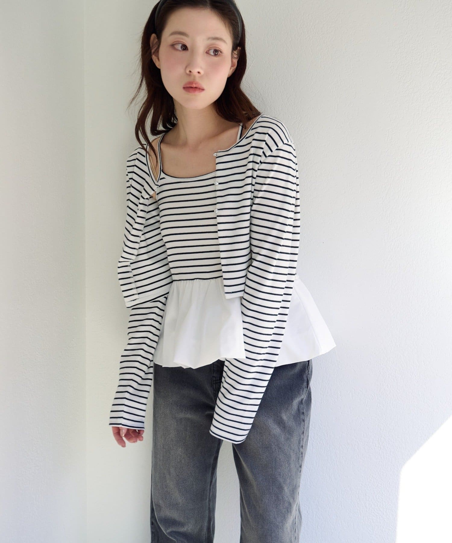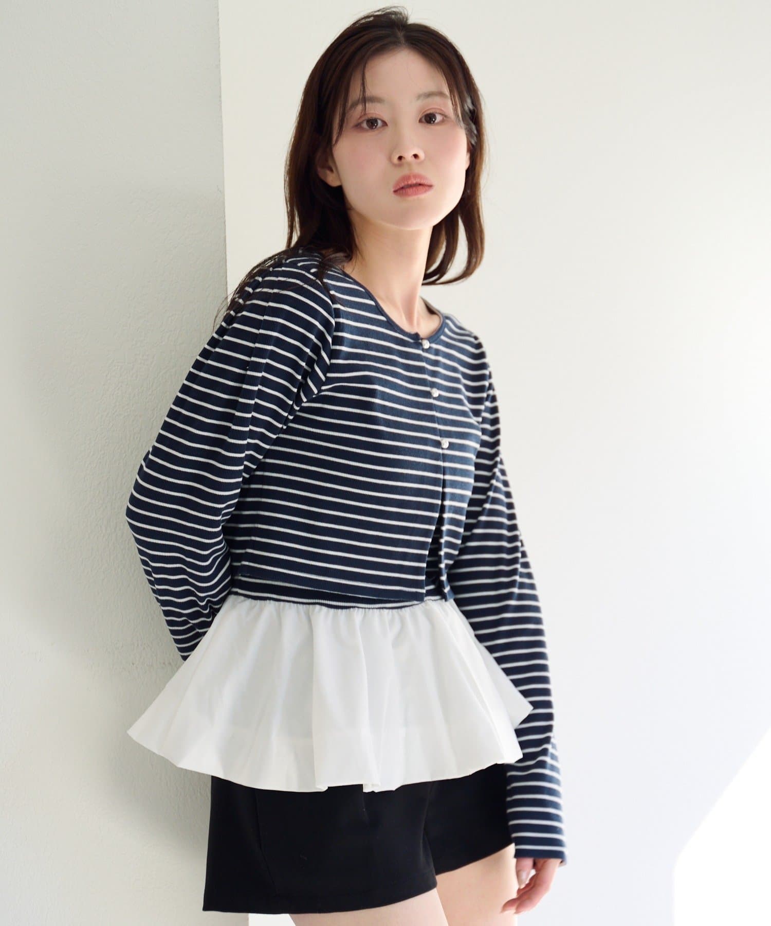 TOP > Kastane > レディース > トップス > カーディガン/ボレロ > 【2.15(日)0:00発売/ボーダー&無地】バルーンキャミカーデSET