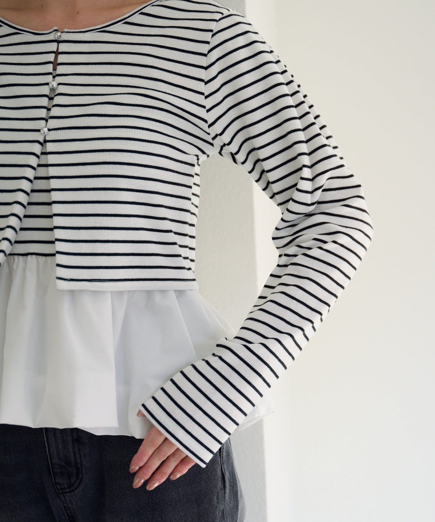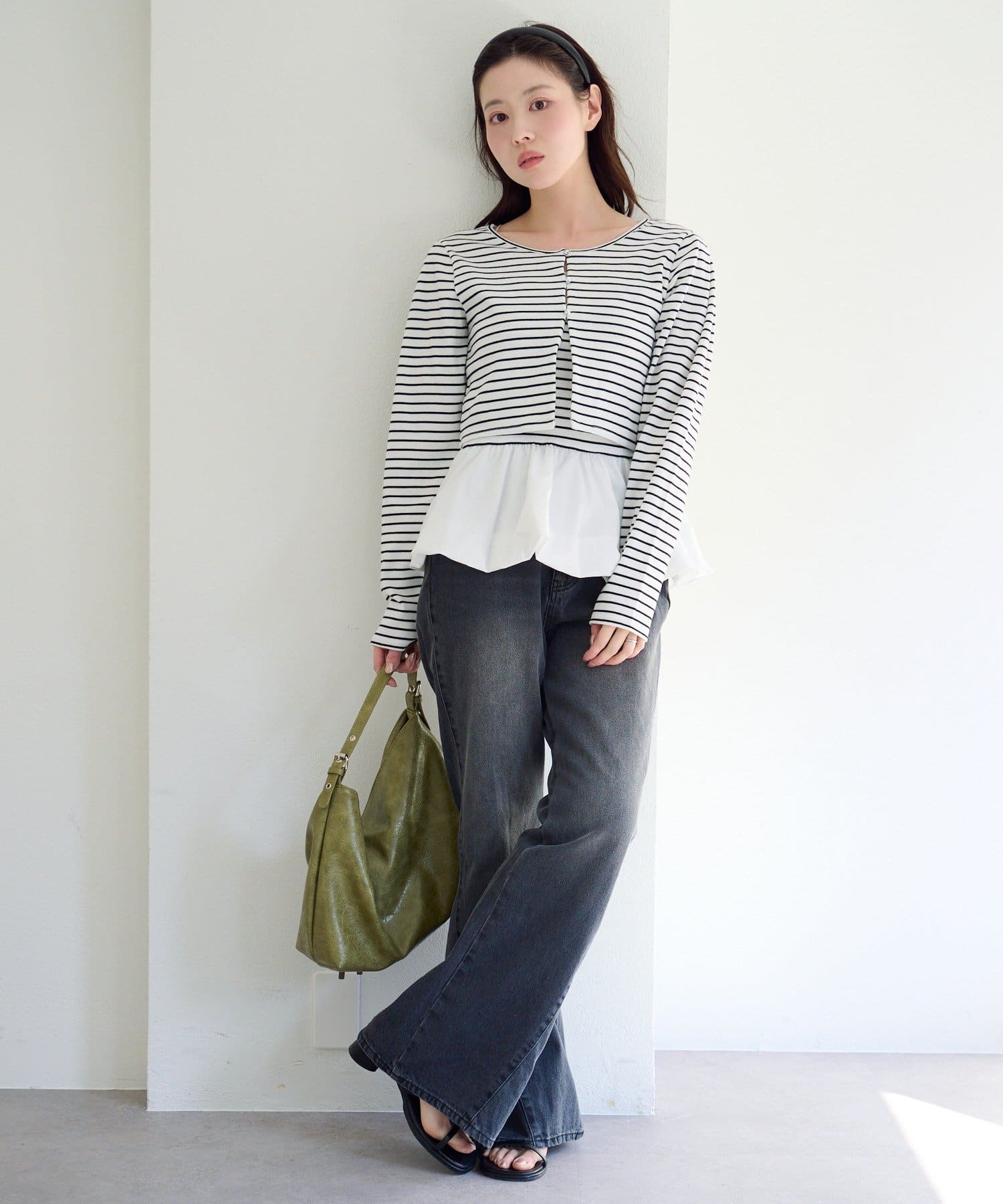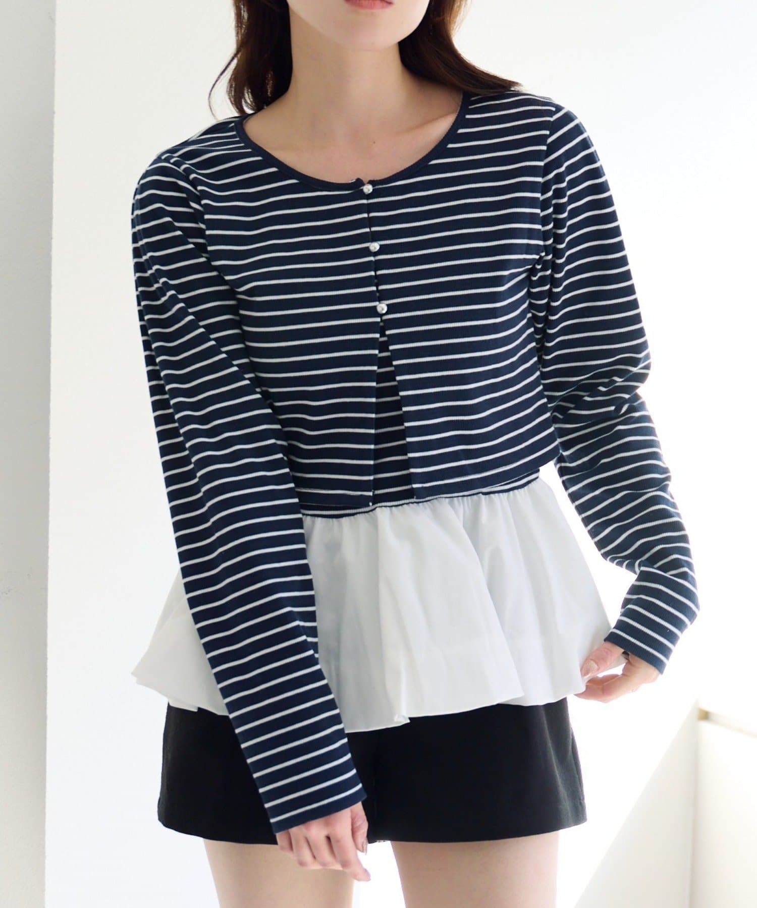 TOP > Kastane > レディース > トップス > カーディガン/ボレロ > 【2.15(日)0:00発売/ボーダー&無地】バルーンキャミカーデSET