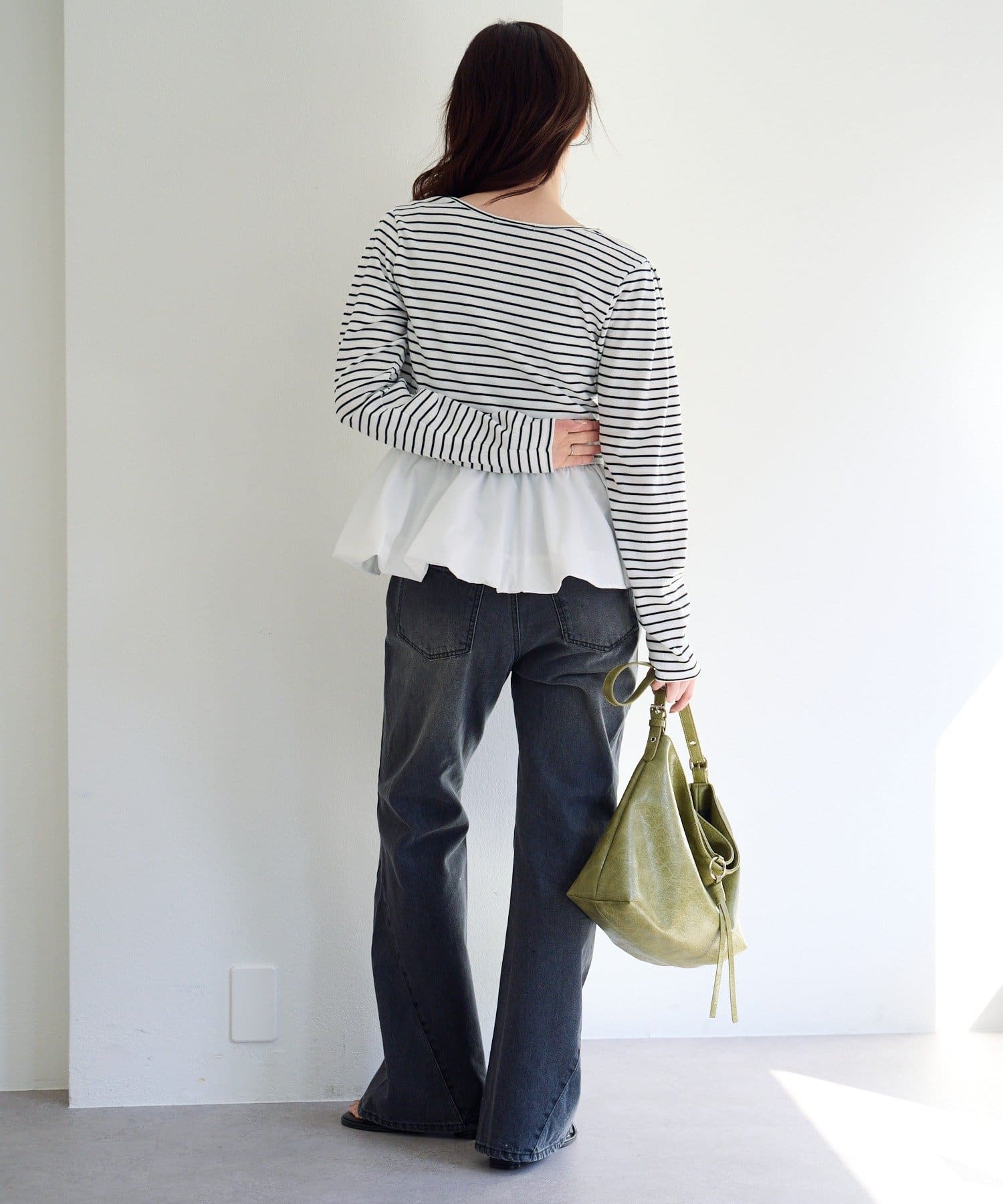 デニムやスラックスと合わせて、甘さを抑えた大人カジュアルに。