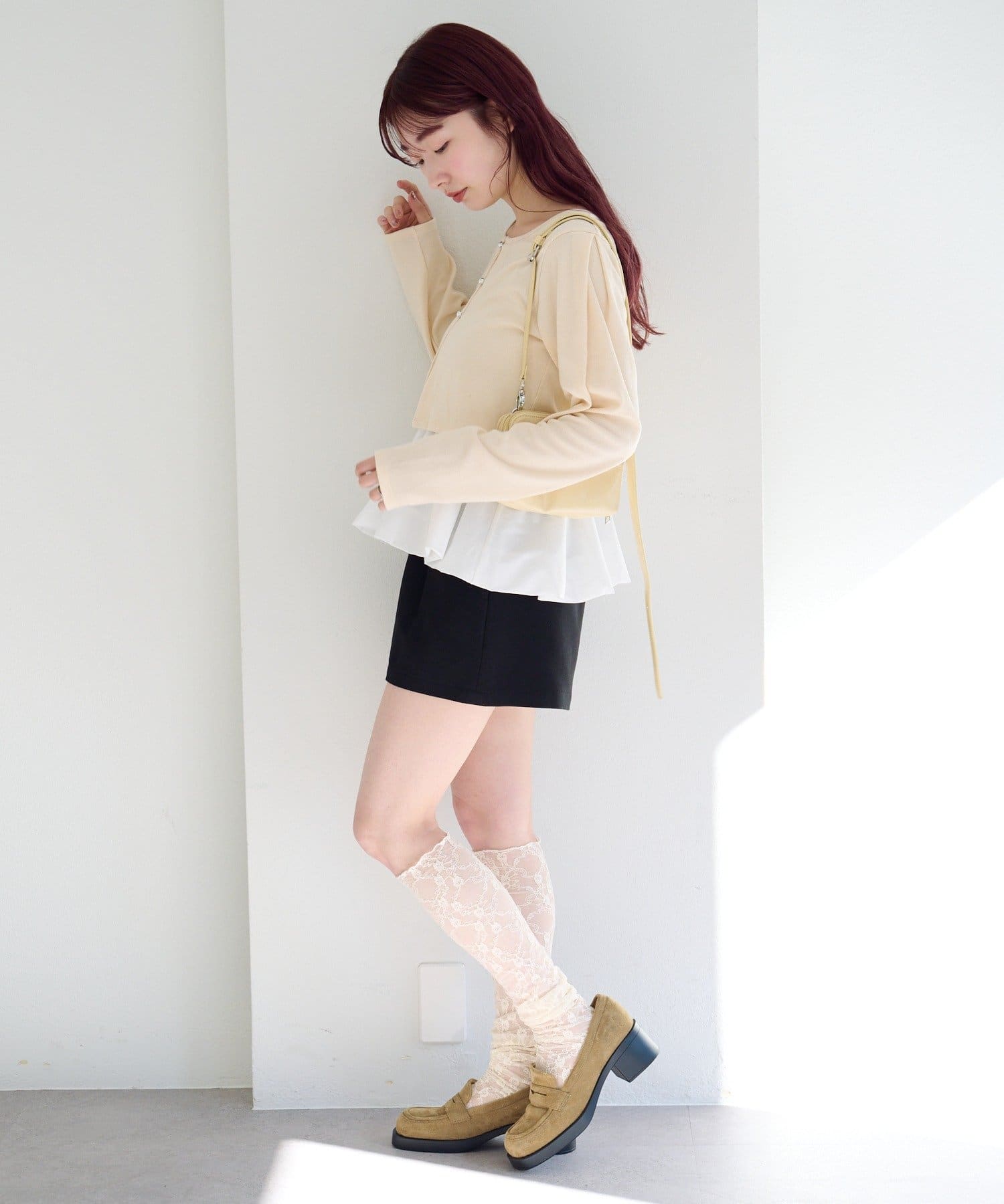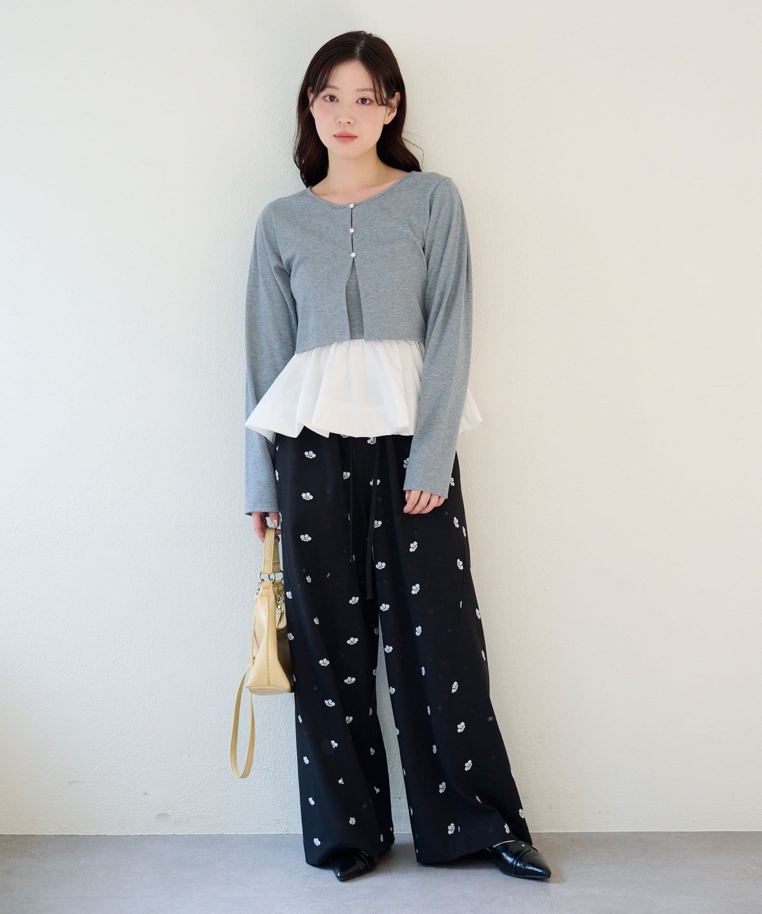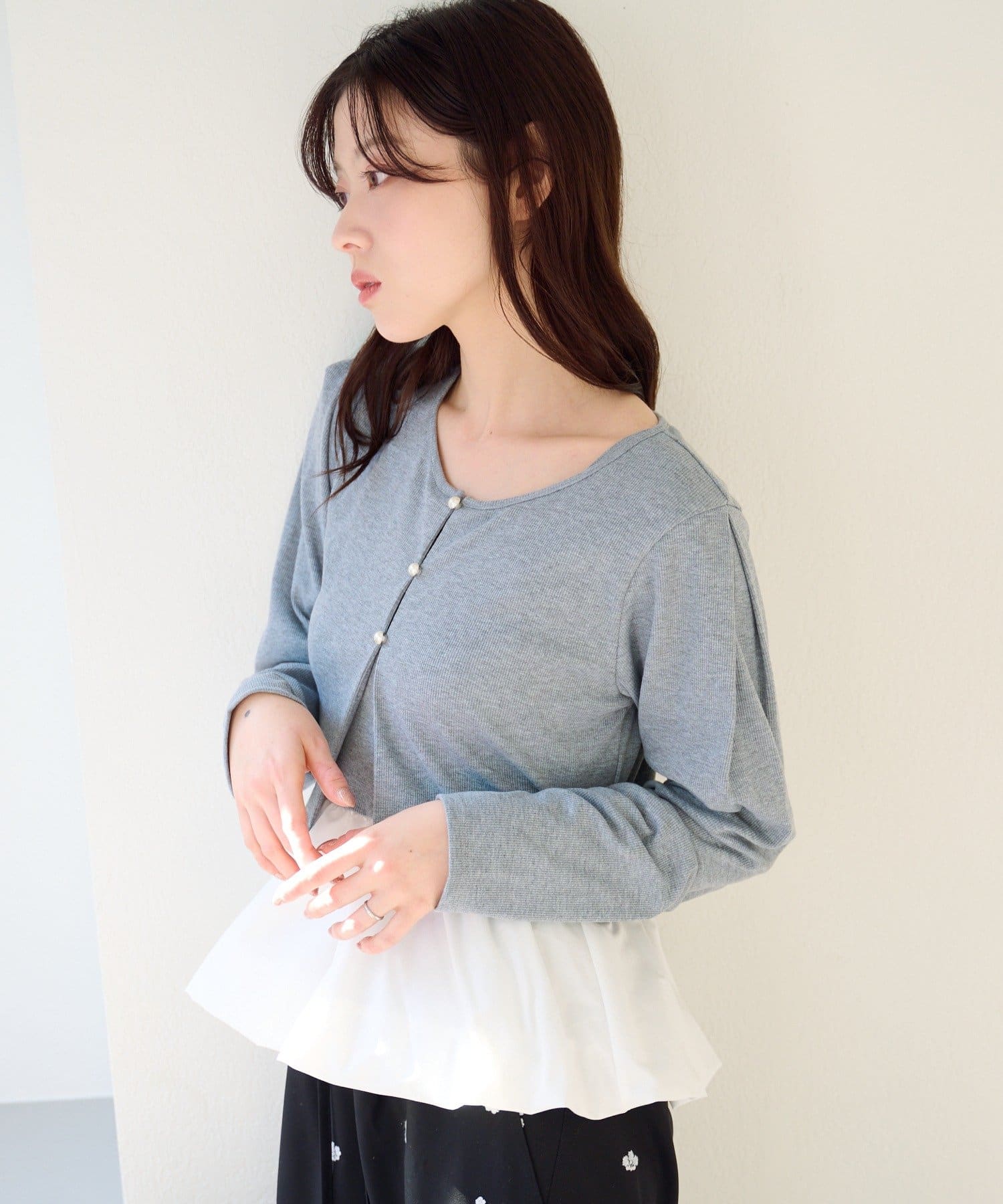 程よくフィット感のあるカーディガンに、ふんわり広がるバルーンキャミを重ねることで、自然にスタイルアップが叶います。