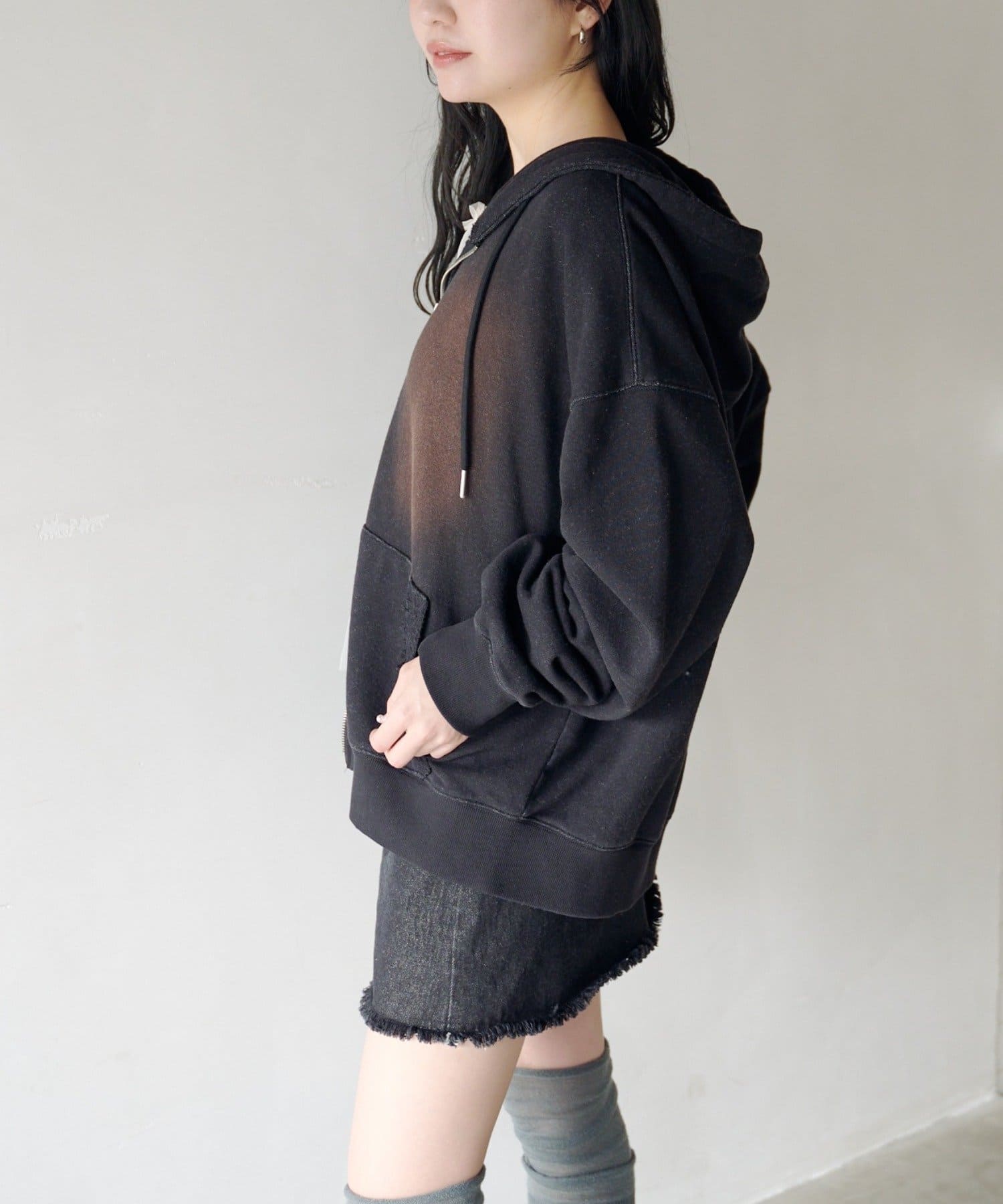 ダブルジップ仕様で、シルエットが調節が可能。アレンジで腰回りに抜け感を出すことができます。