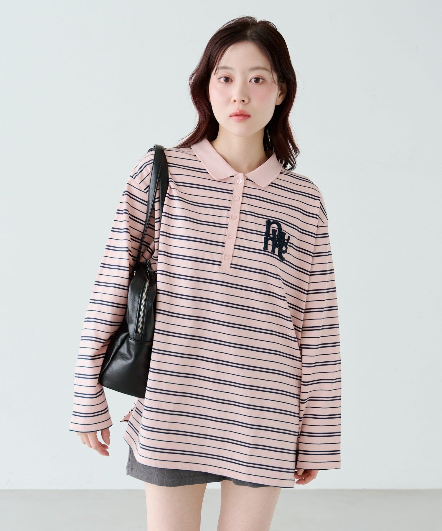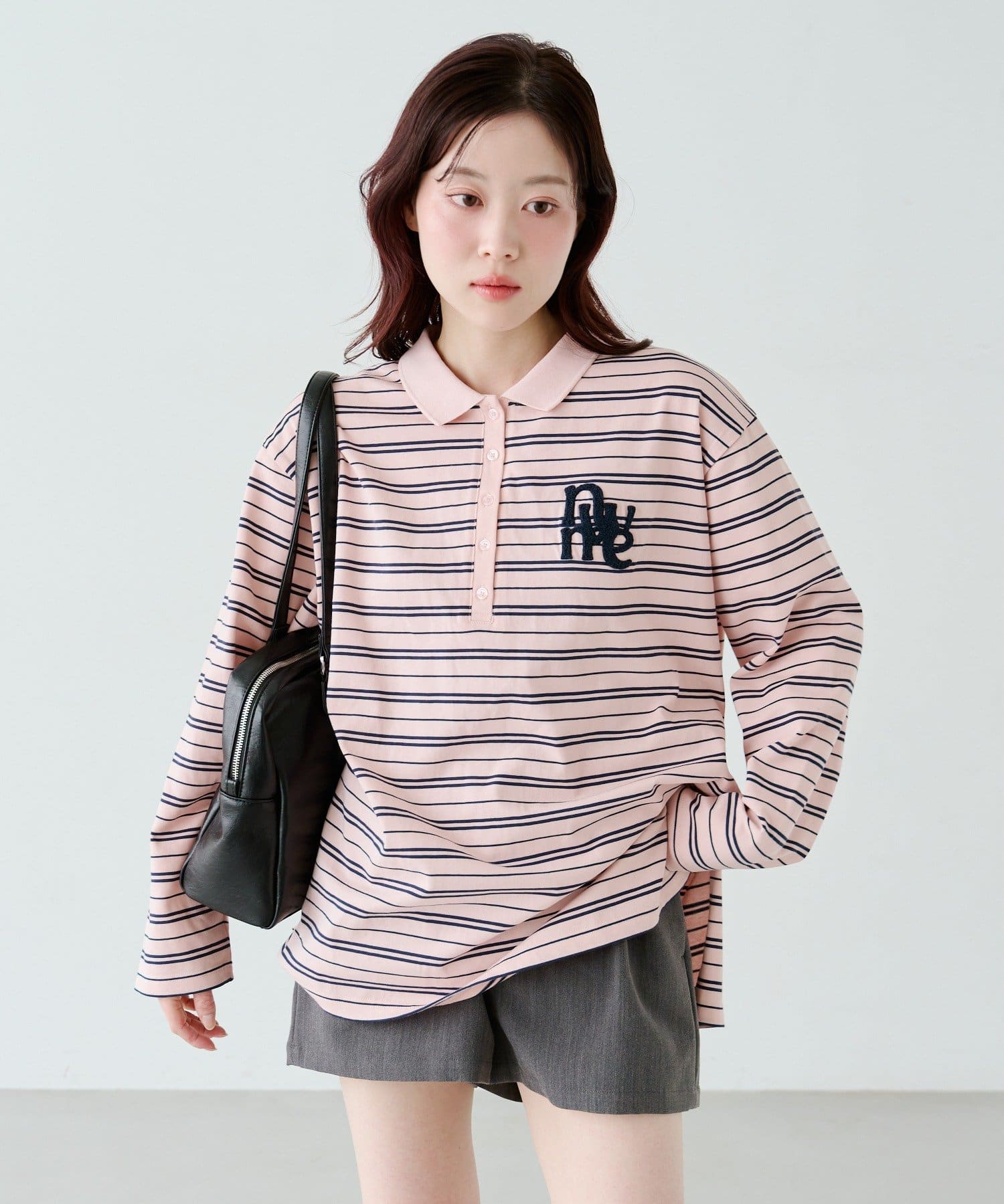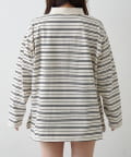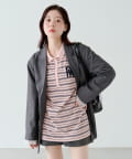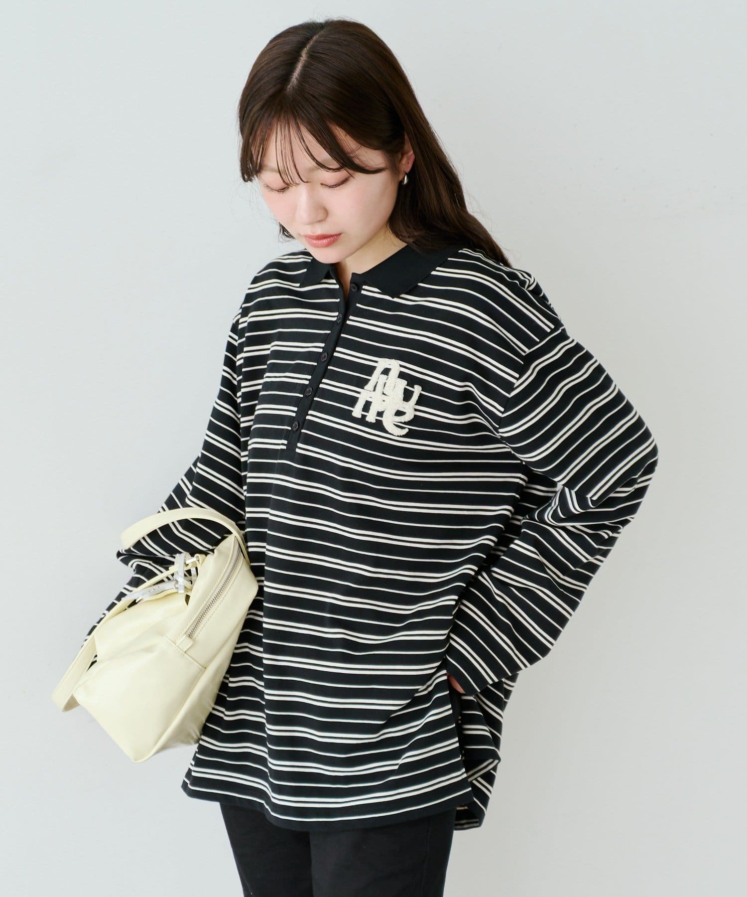 程よいピッチのボーダー柄に、胸元のサガラ刺繍がアクセントになったポロトップス。