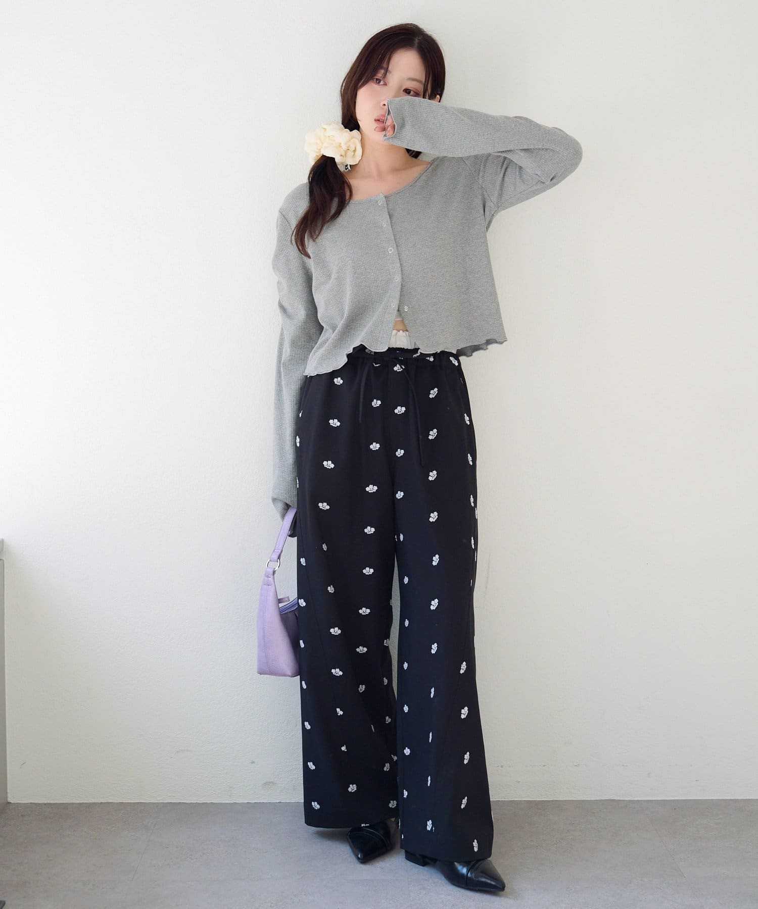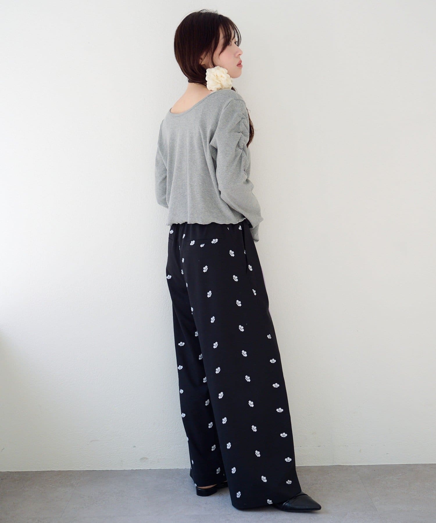 フラワーステッチワイドパンツ
