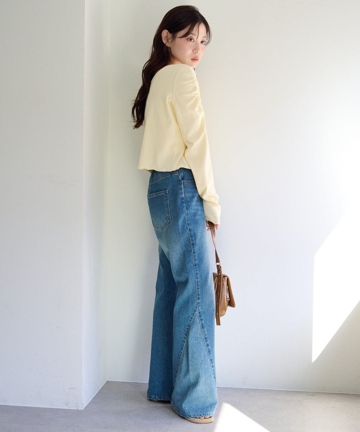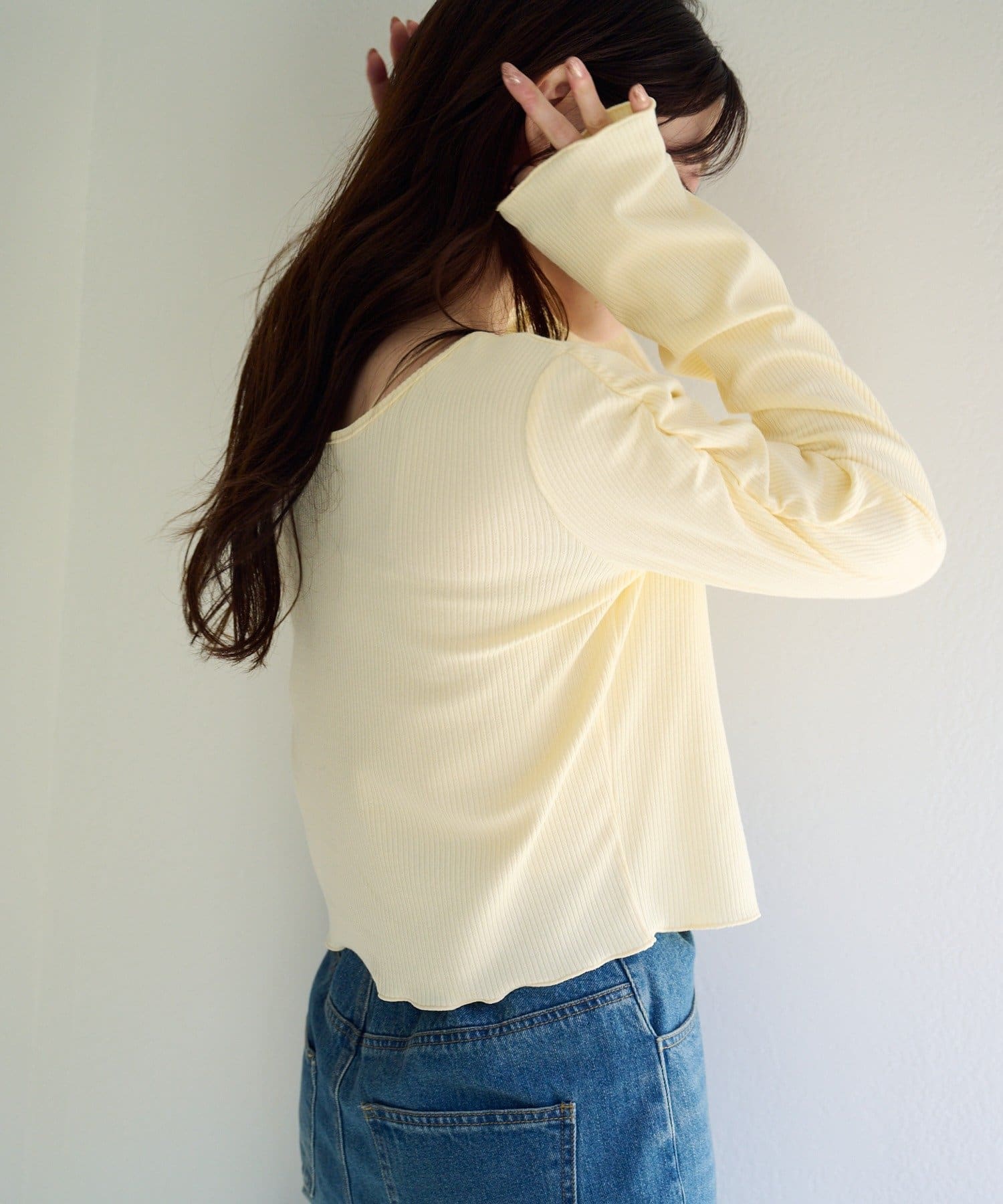 柔らかくしなやかな素材感で、肌あたりが良くストレスフリーな着心地です。