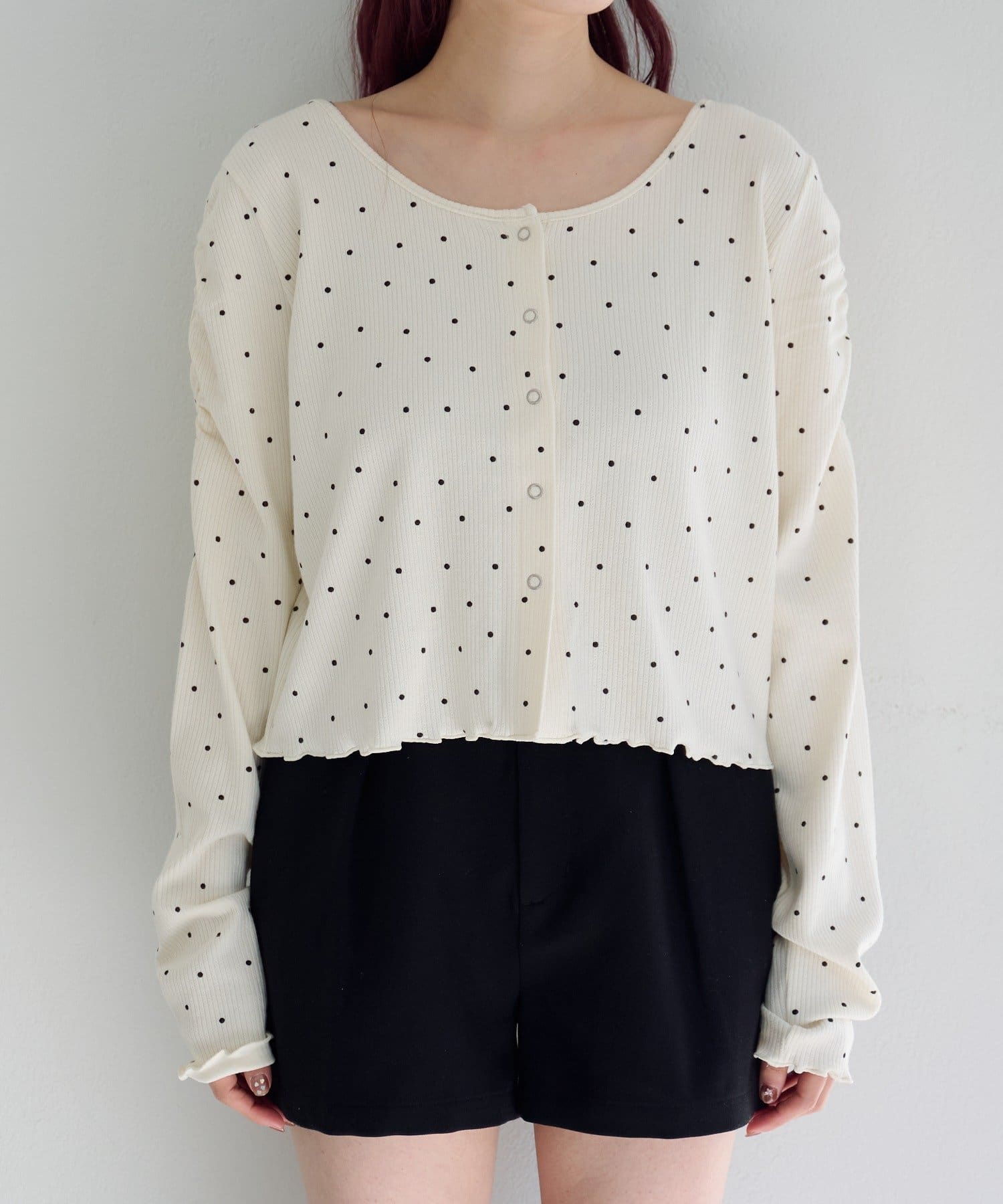 TOP > Kastane > レディース > トップス > カーディガン/ボレロ > 【2.15(日)0:00発売/ドット&無地】針抜きリブカーディガン