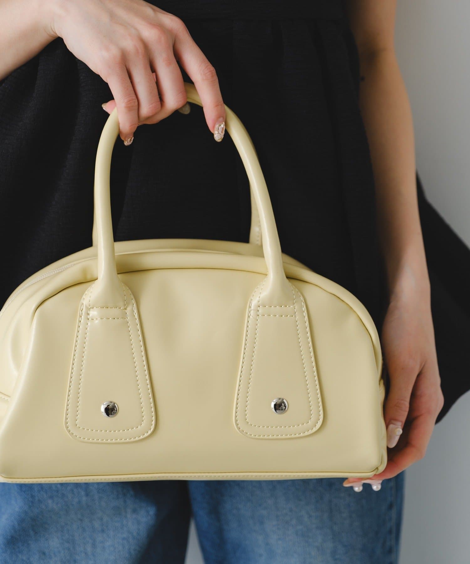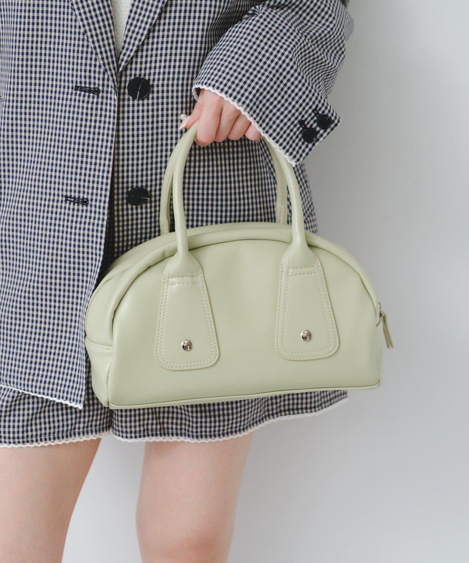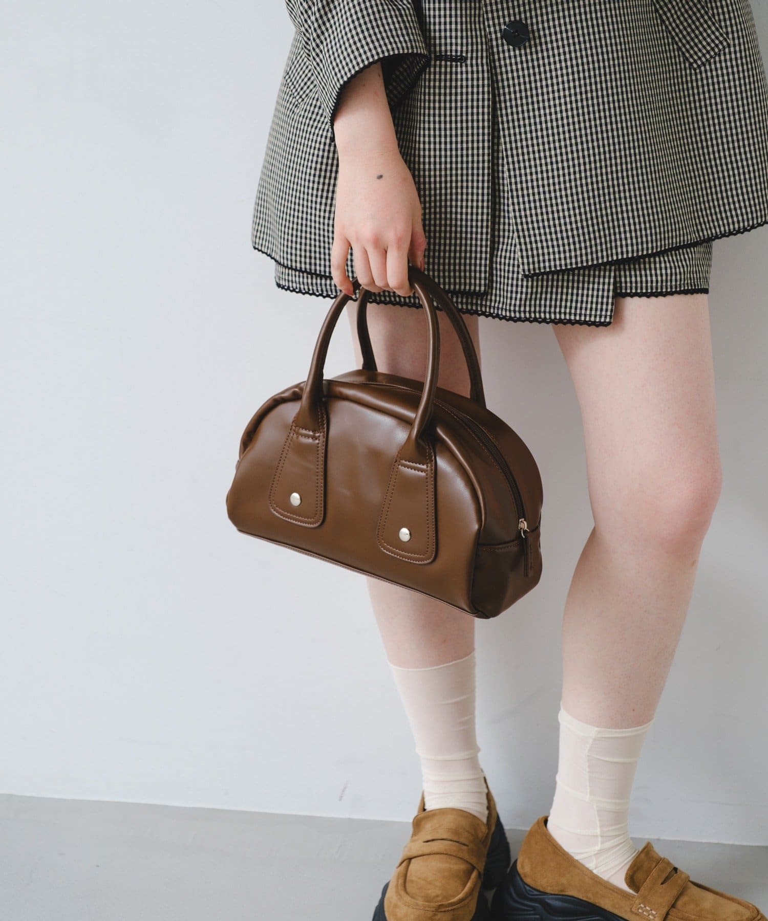 丸みのあるフォルムが女性らしい、コンパクトサイズのフラップボストンバッグ。