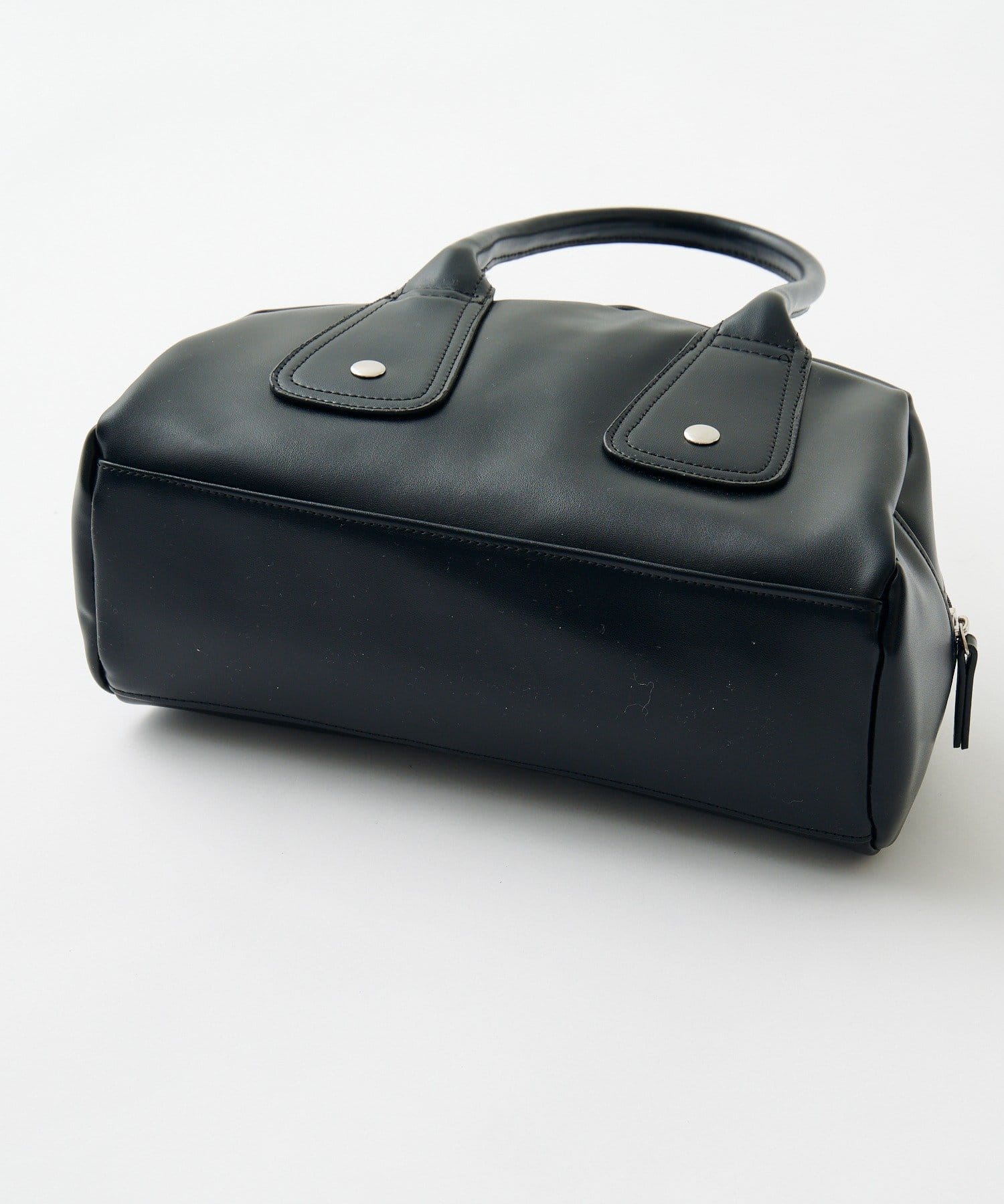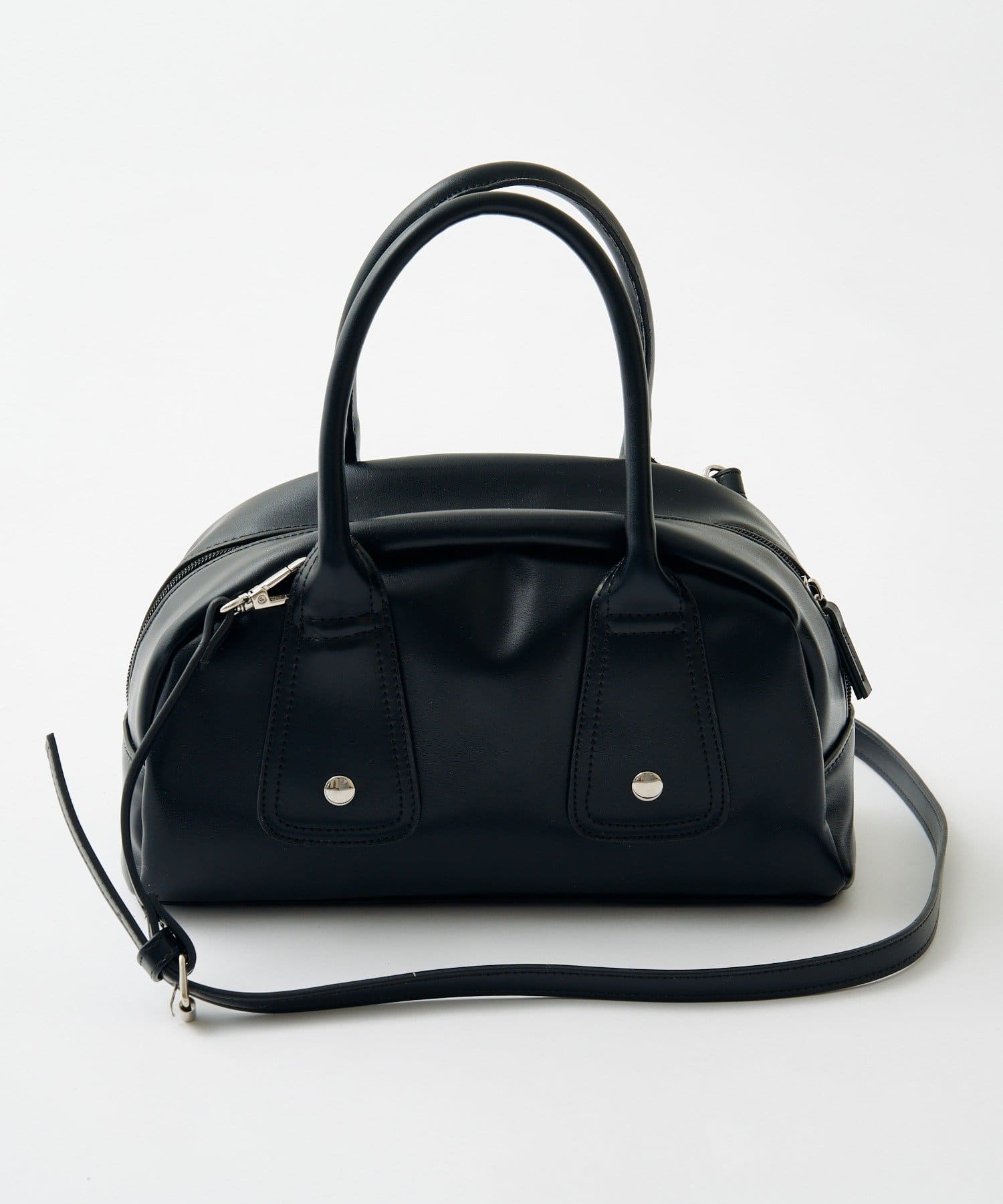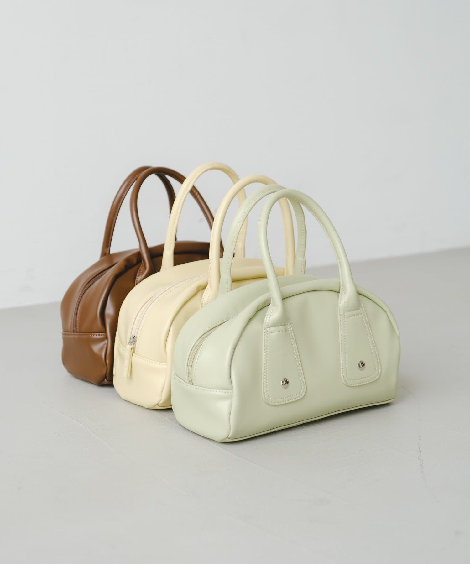 丸みのあるフォルムが女性らしい、コンパクトサイズのフラップボストンバッグ。