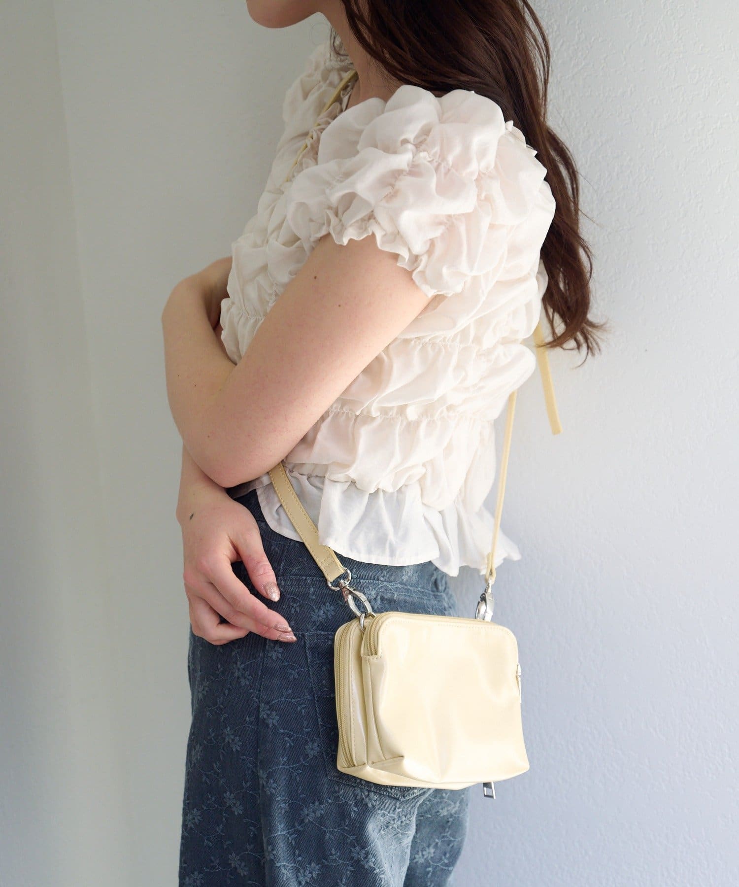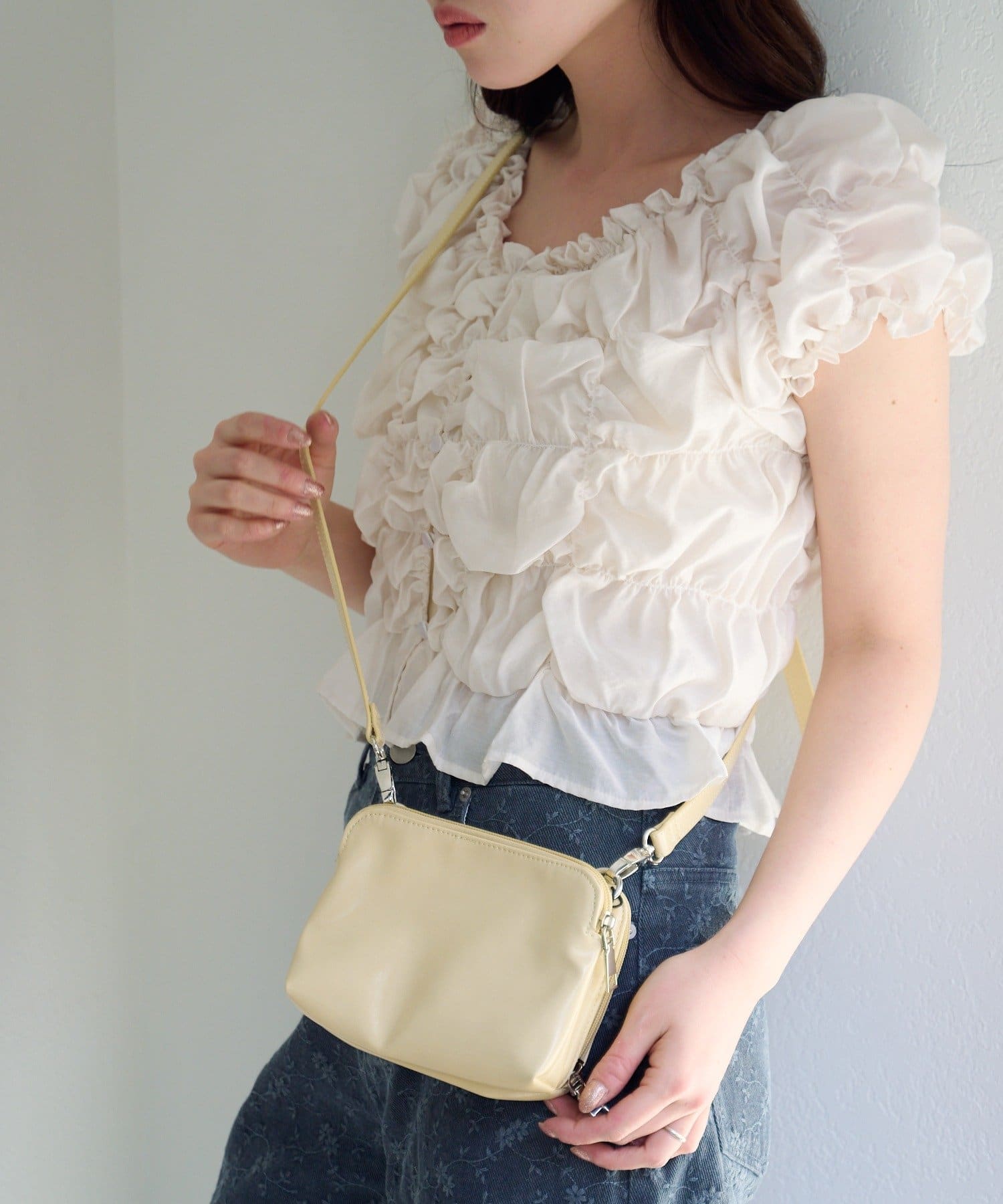 シンプルながらも高級感のあるミニショルダーバッグ。