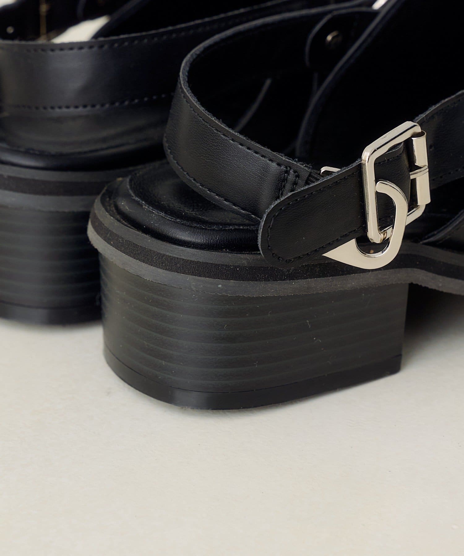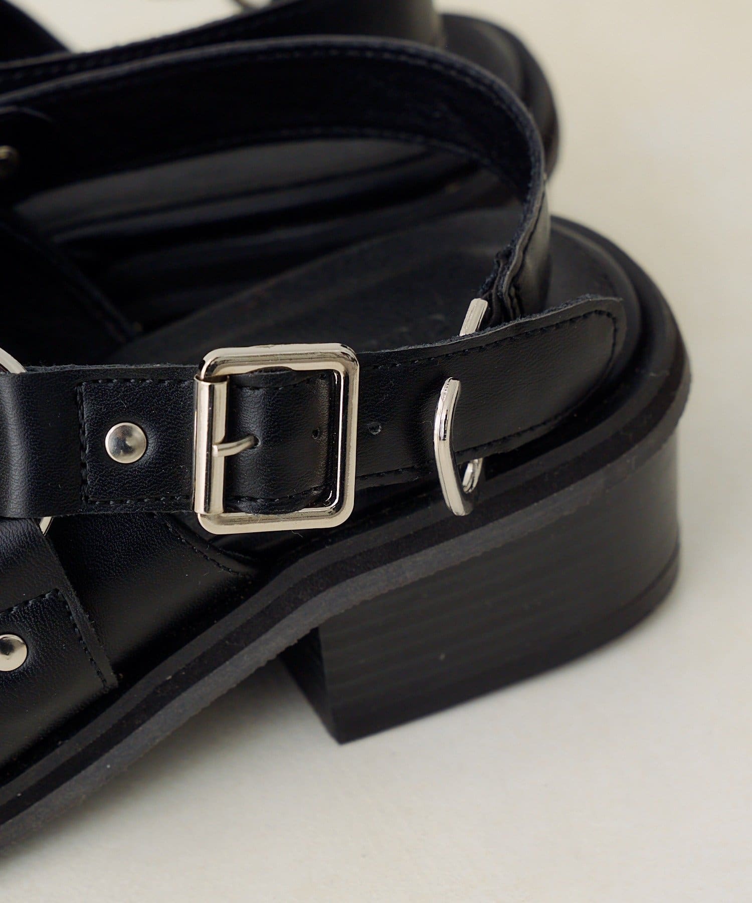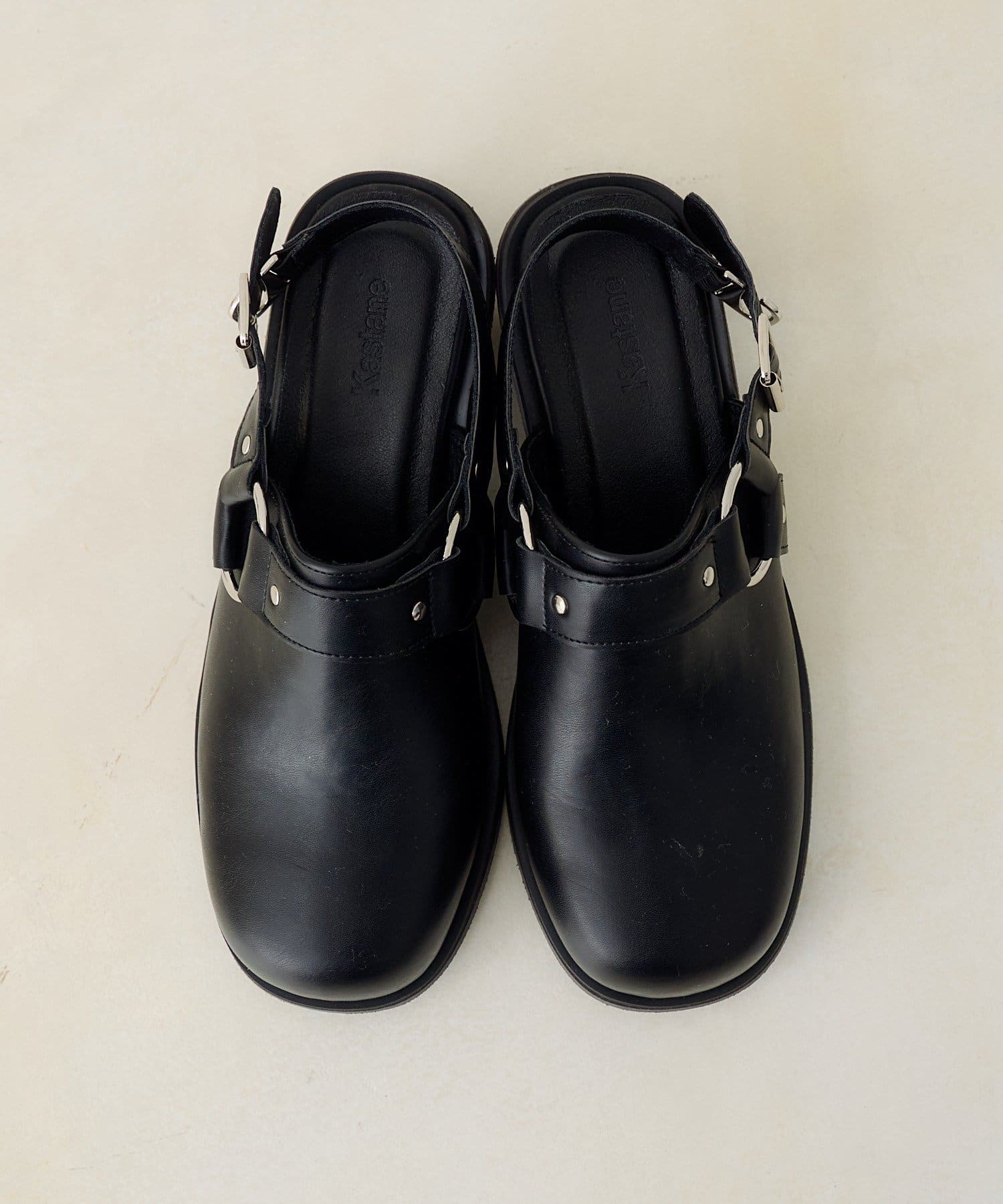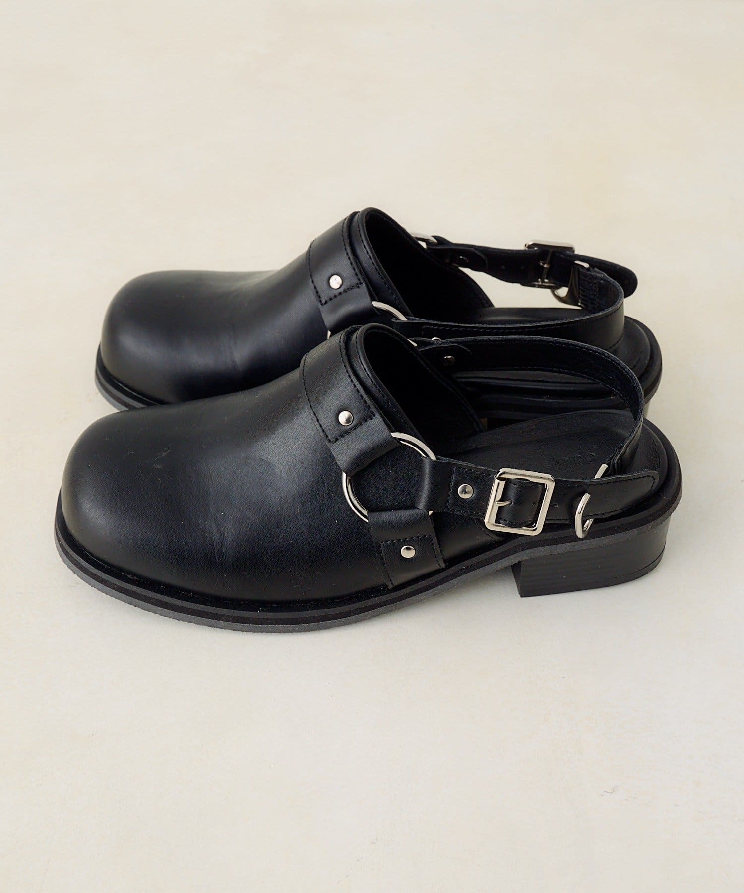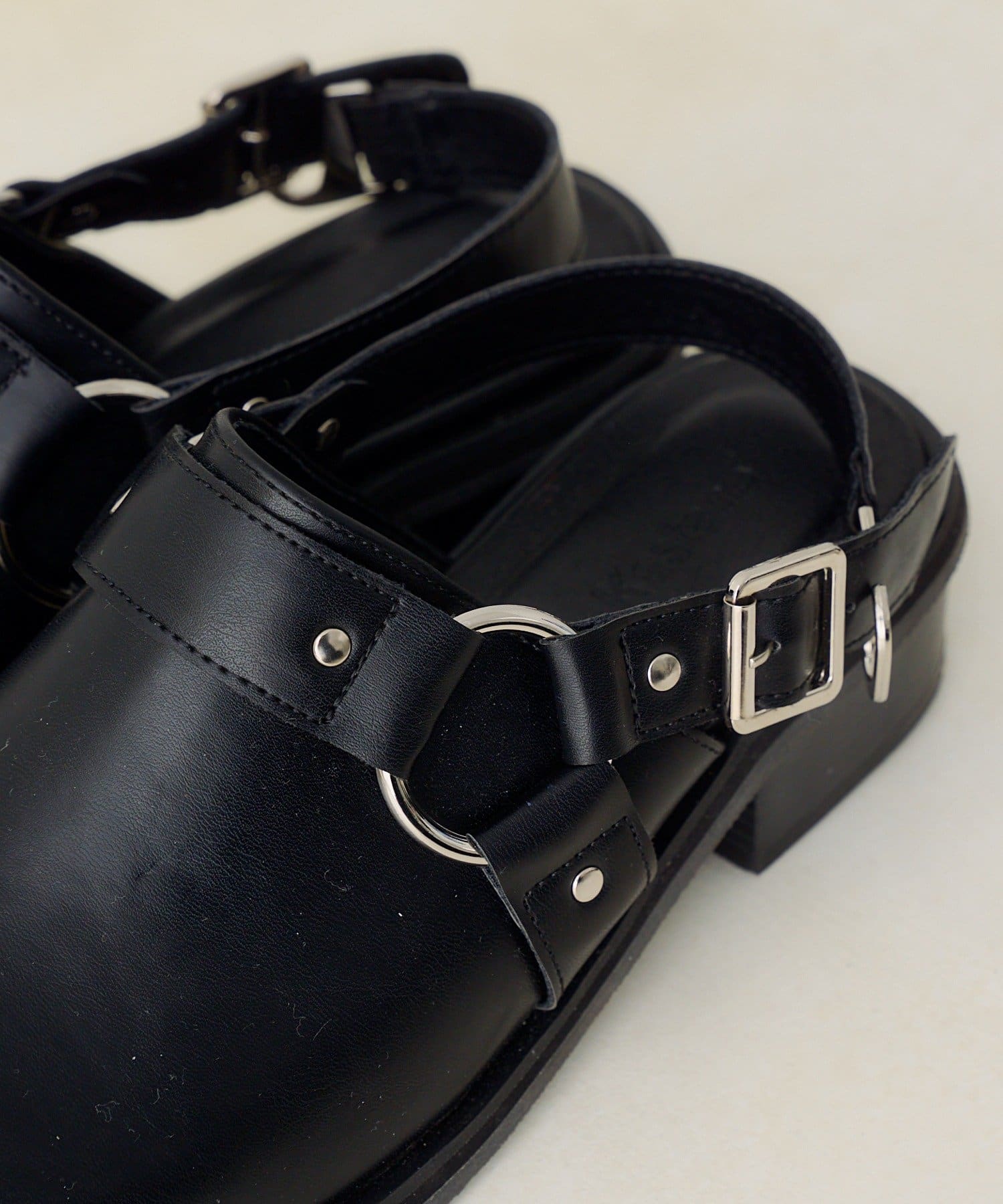 存在感のあるリングベルトデザインが目を惹くサボシューズ。