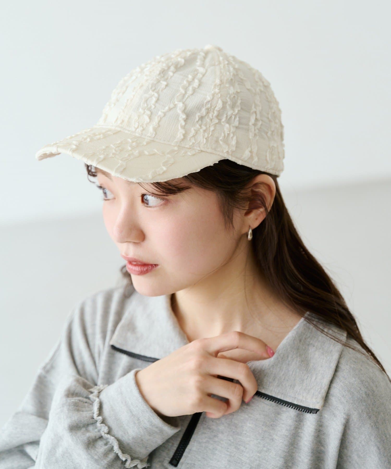 立体感のあるランダムフリルが目を惹くデザインキャップ。