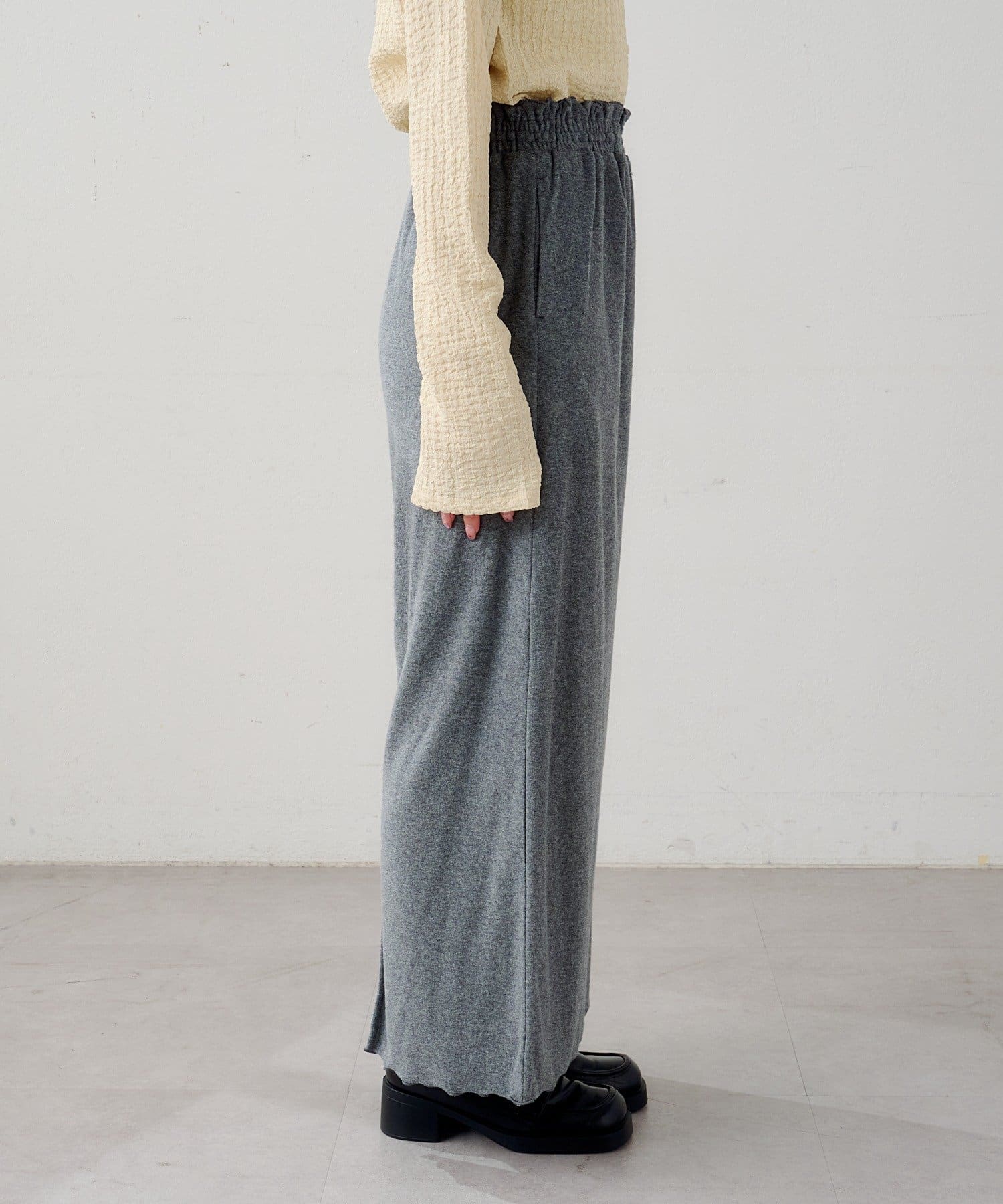 ウエストは総ゴム仕様でストレスフリーな穿き心地。