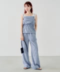 【低身長サイズ/2サイズ展開】チェックギャザーサロペット