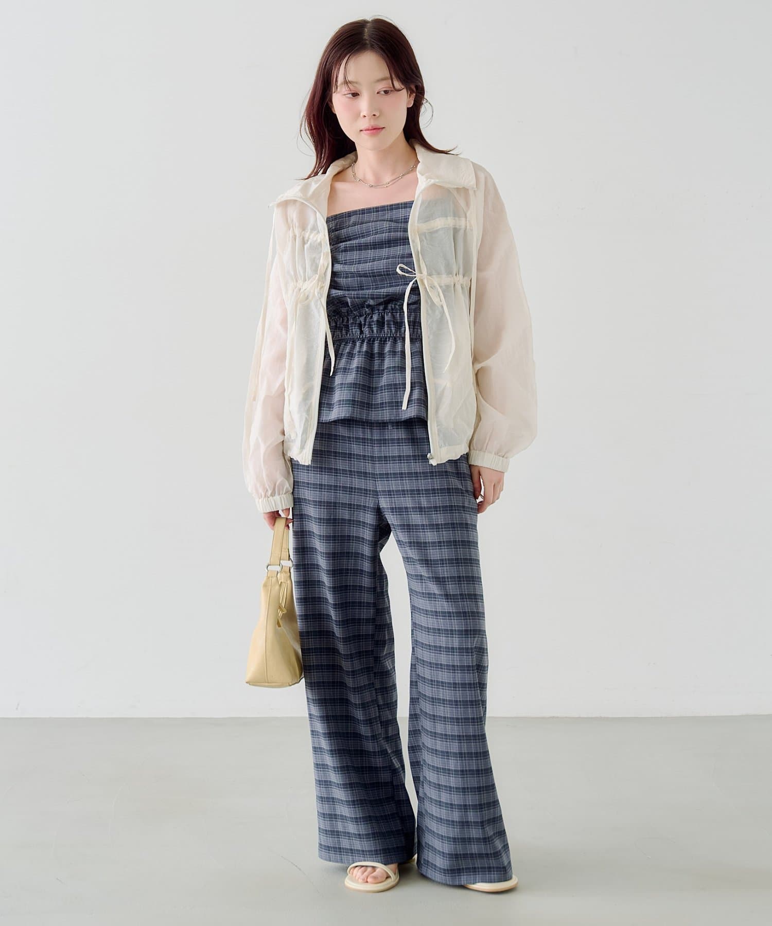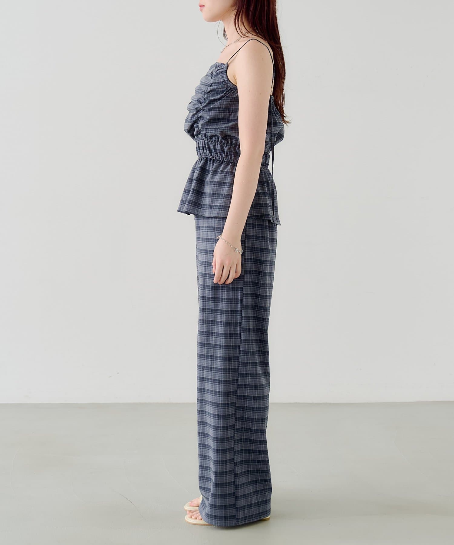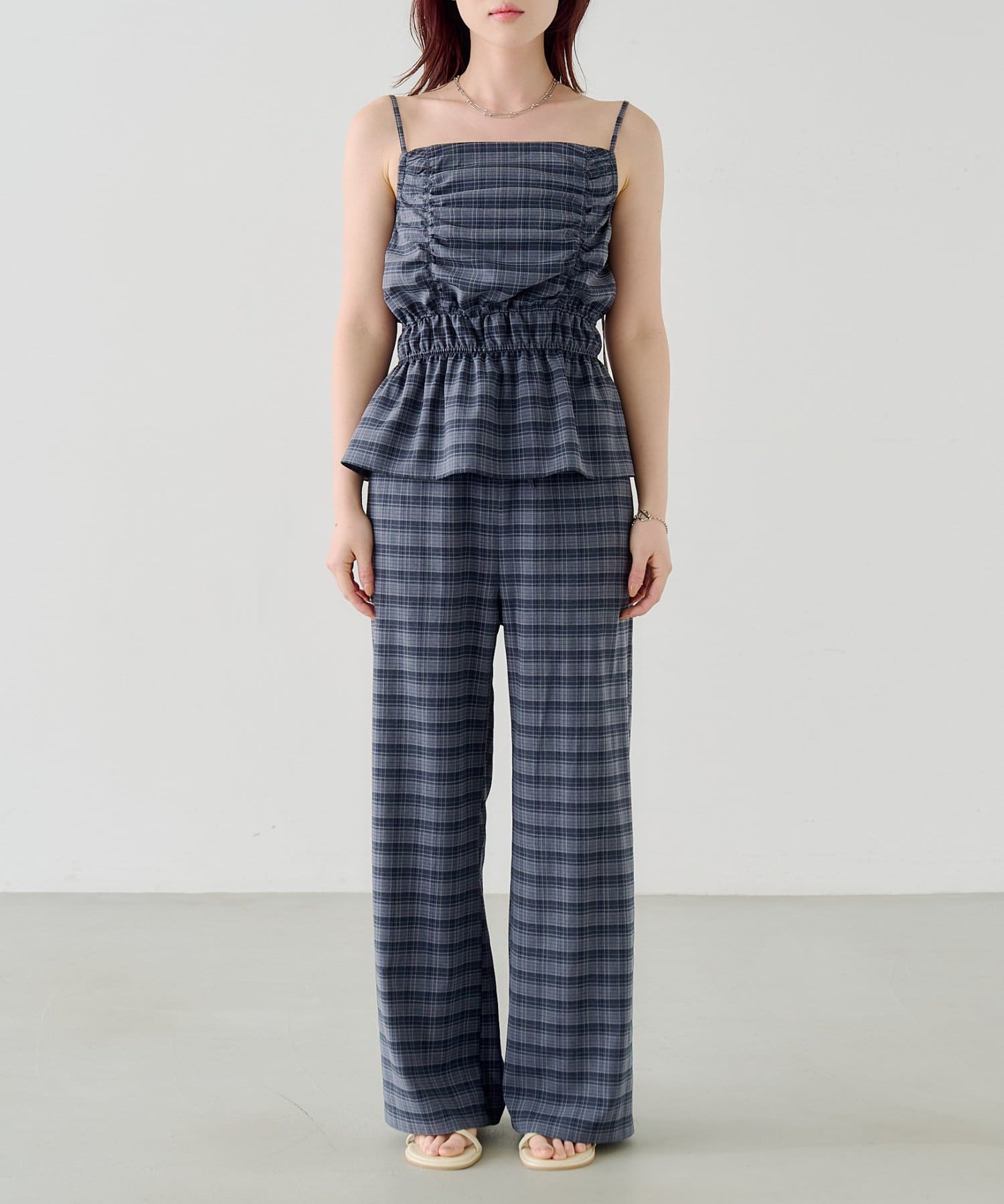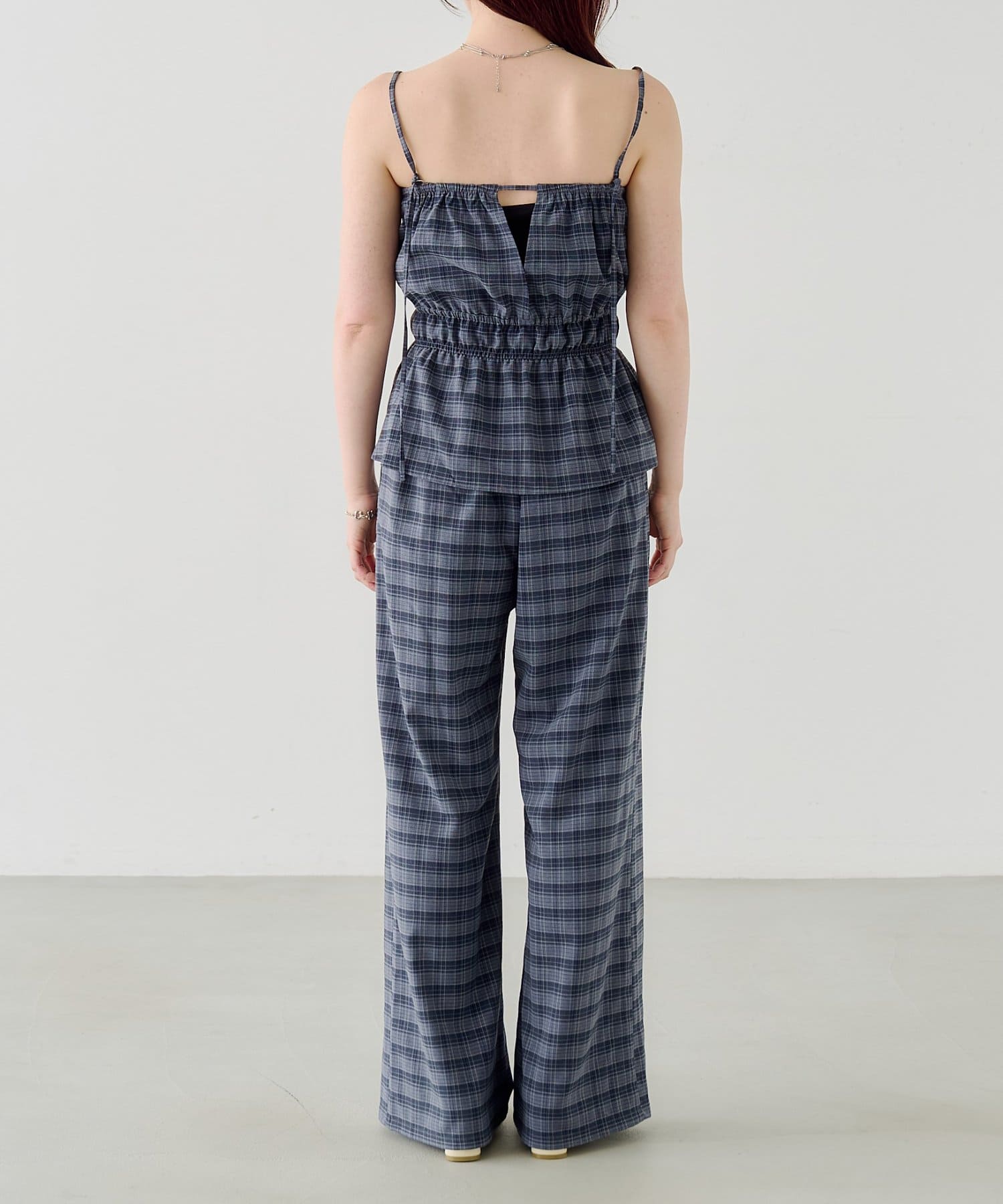 【低身長サイズ/2サイズ展開】チェックギャザーサロペット