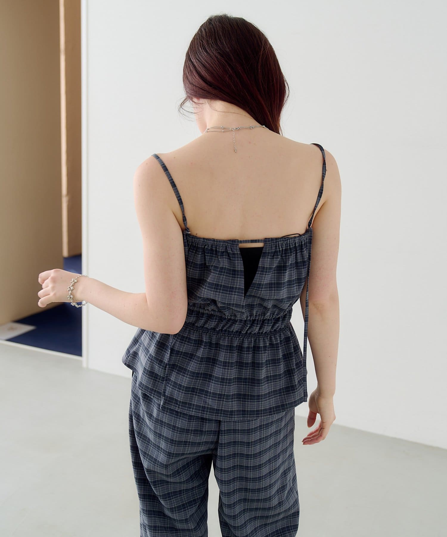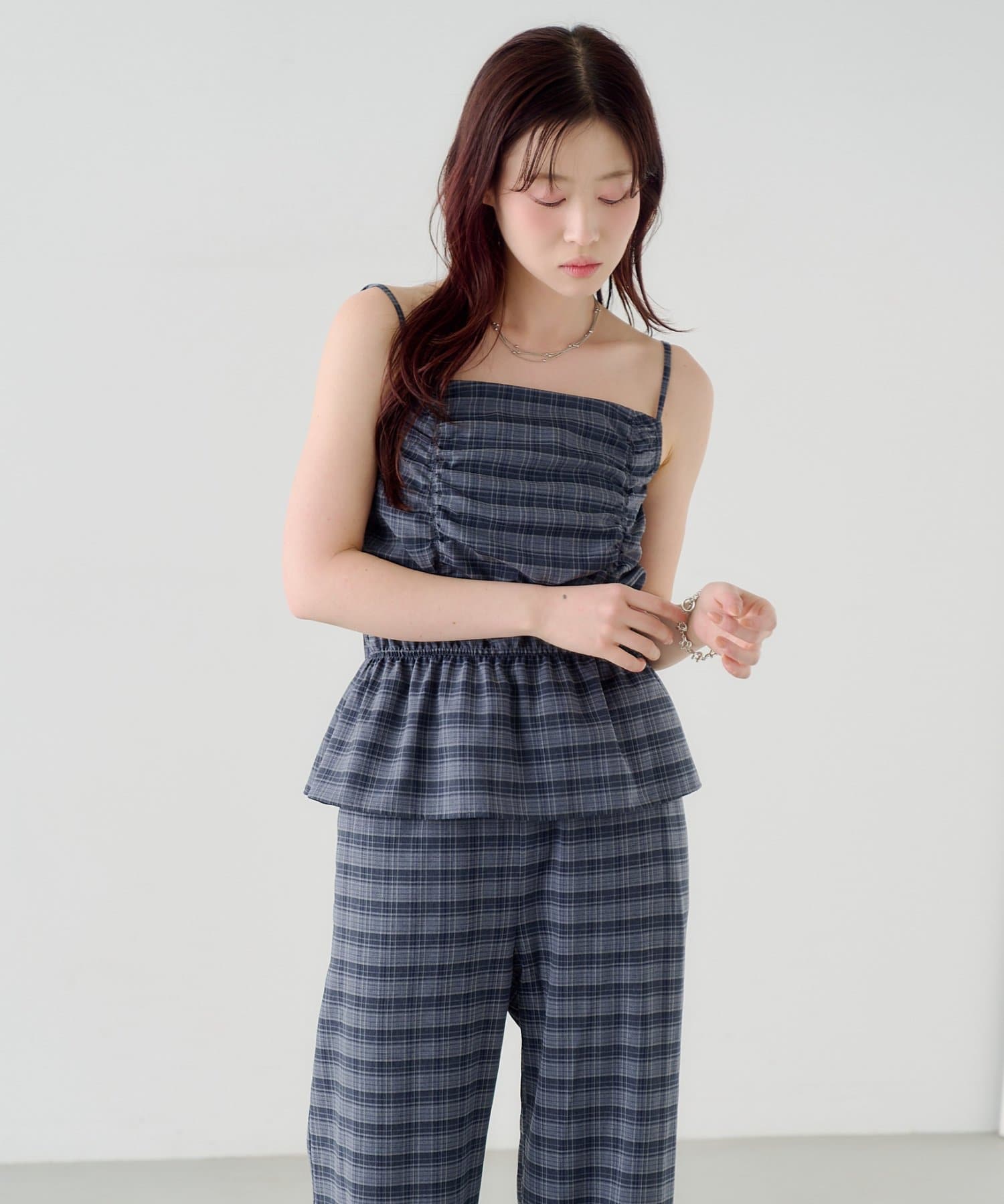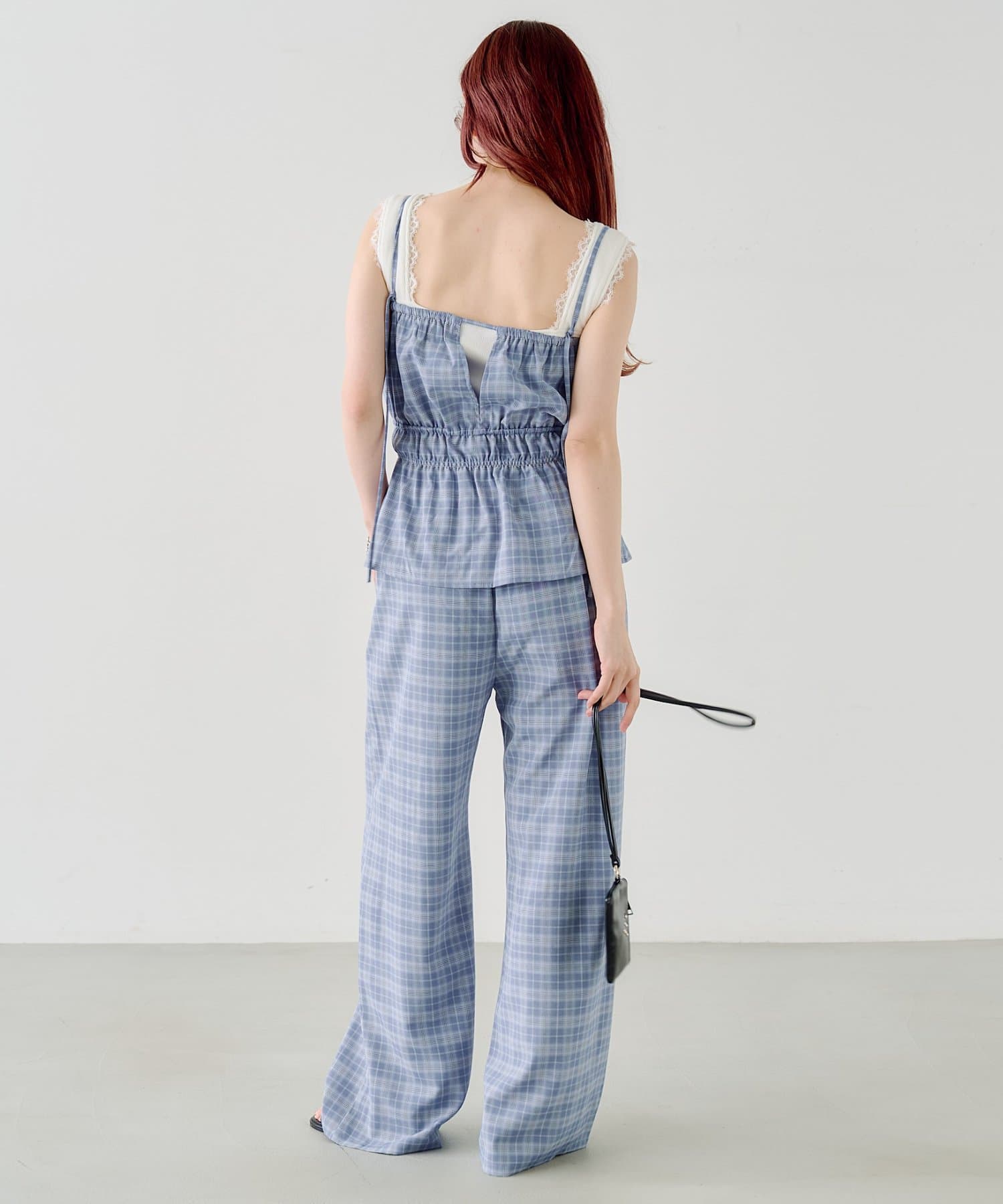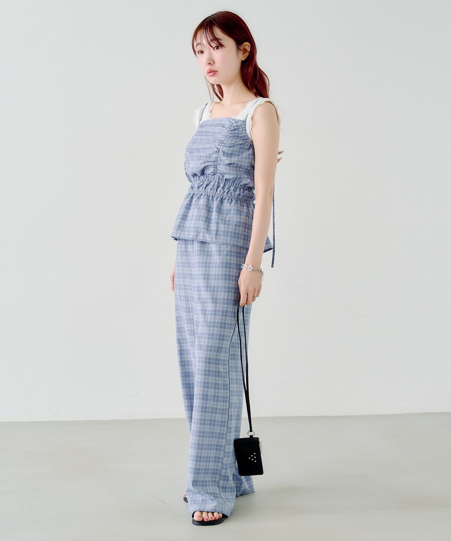 【低身長サイズ/2サイズ展開】チェックギャザーサロペット