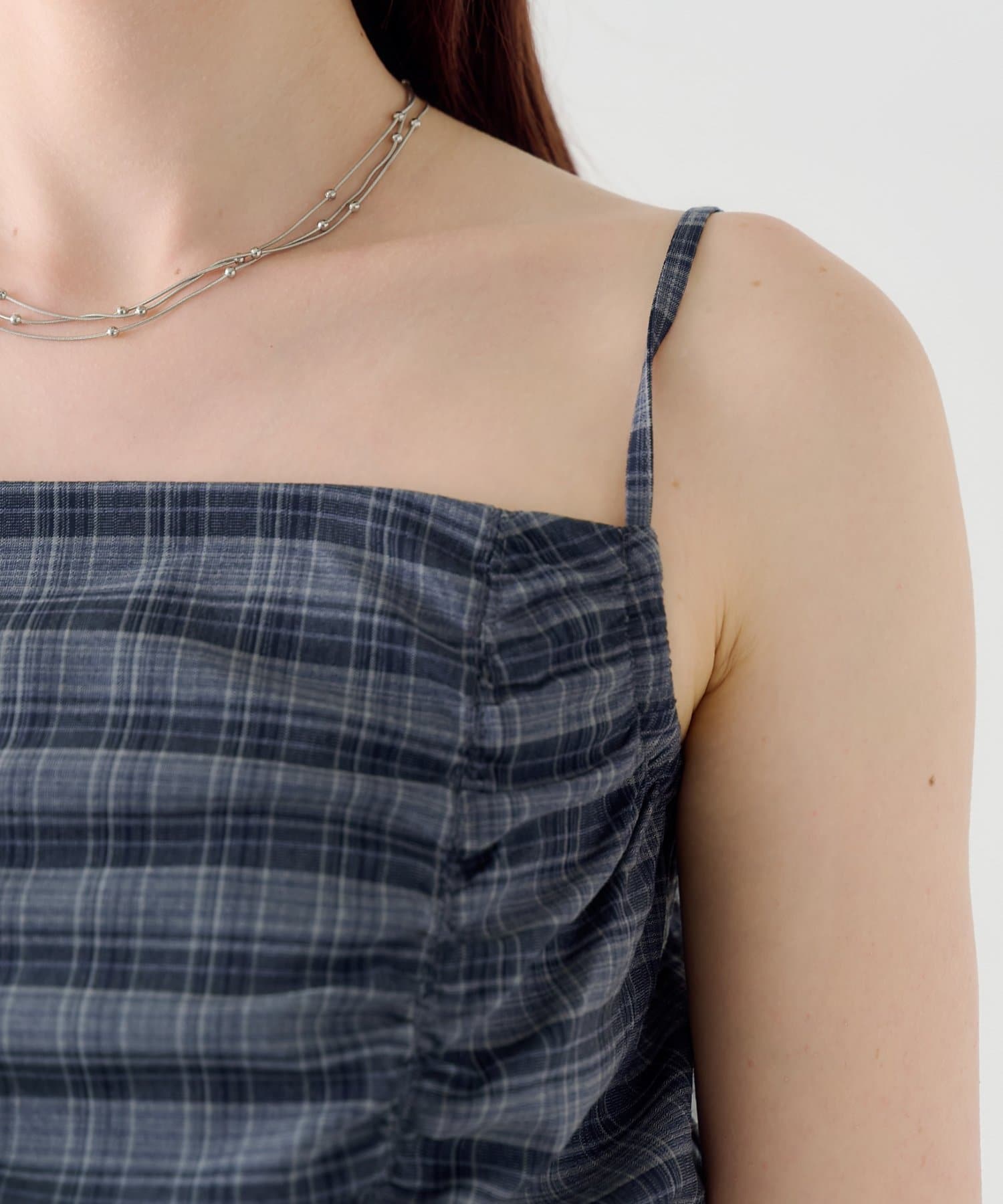 華奢なストラップが抜け感をプラスし、すっきりとした印象で着こなせる一着です。