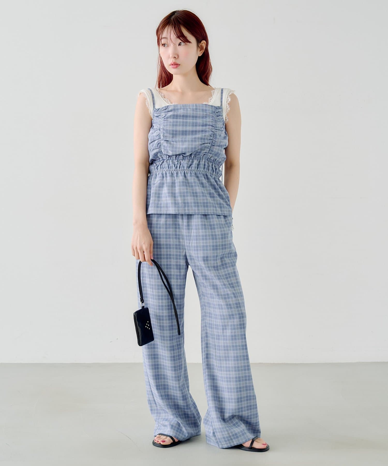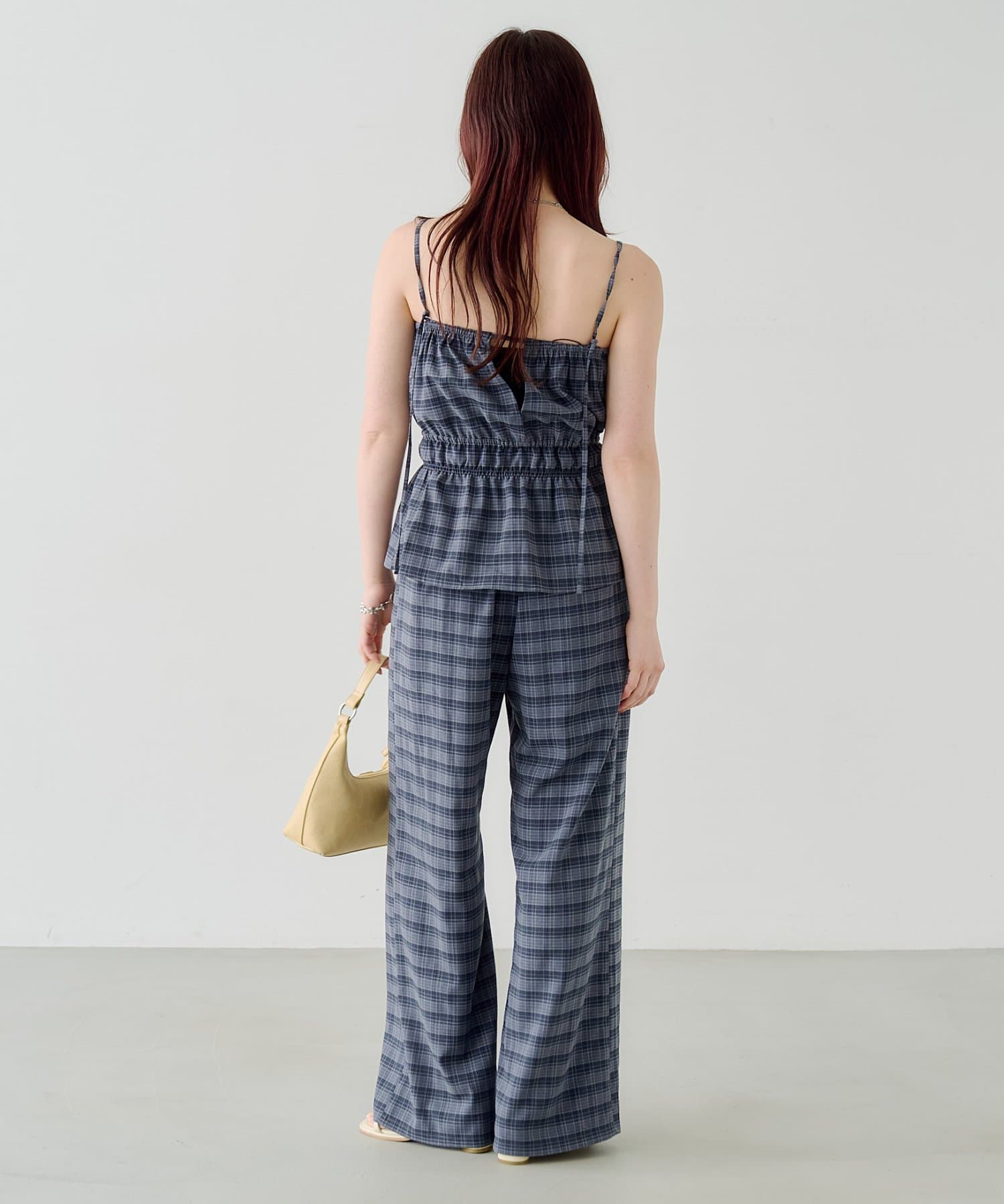 トップス部分は程よくフィットしつつ、パンツ部分はストンと落ちるワイドシルエットでリラックス感のある着心地に。
