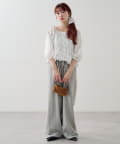 ショート丈トップスやコンパクトなトップスと合わせてウエストデザインを見せる着こなしがおすすめ。