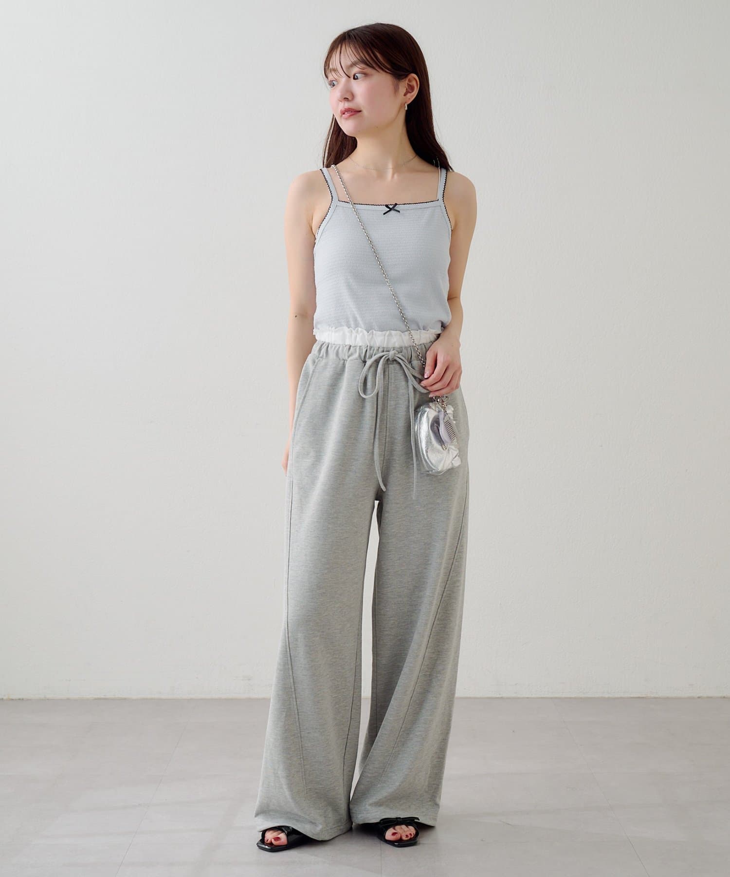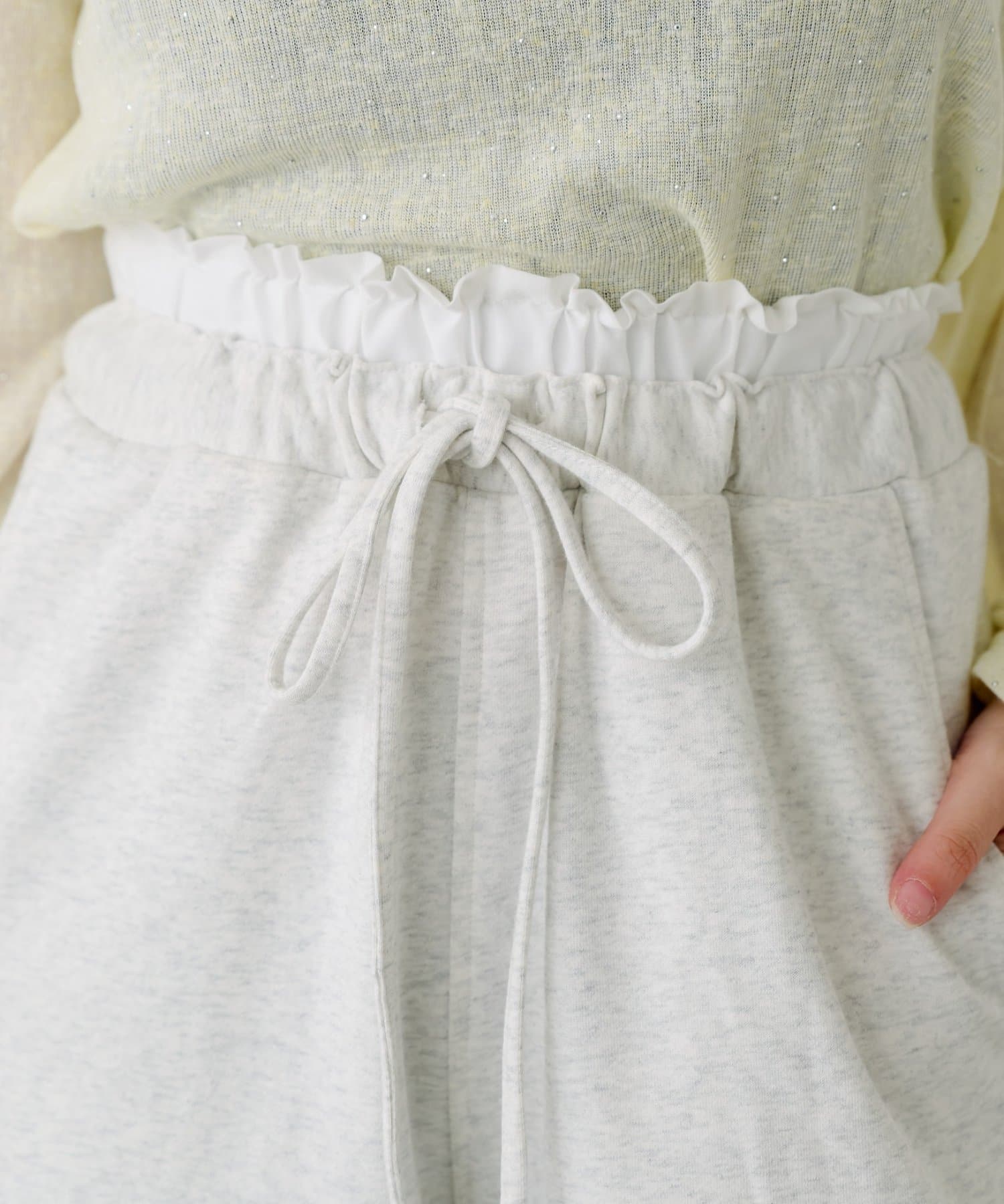 ウエストはゴム+リボン仕様でストレスフリーな履き心地に。