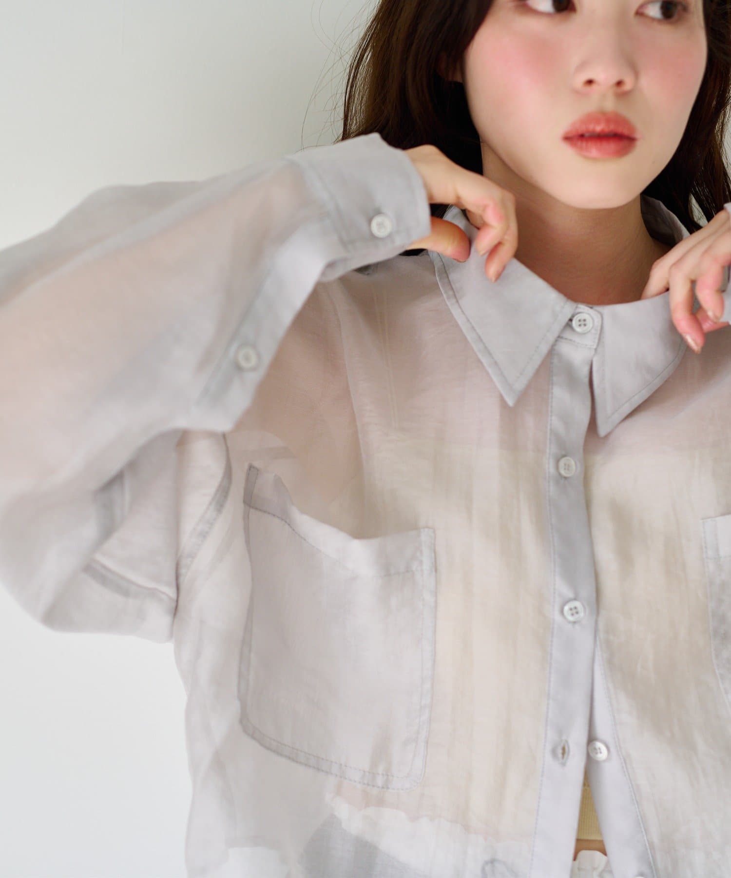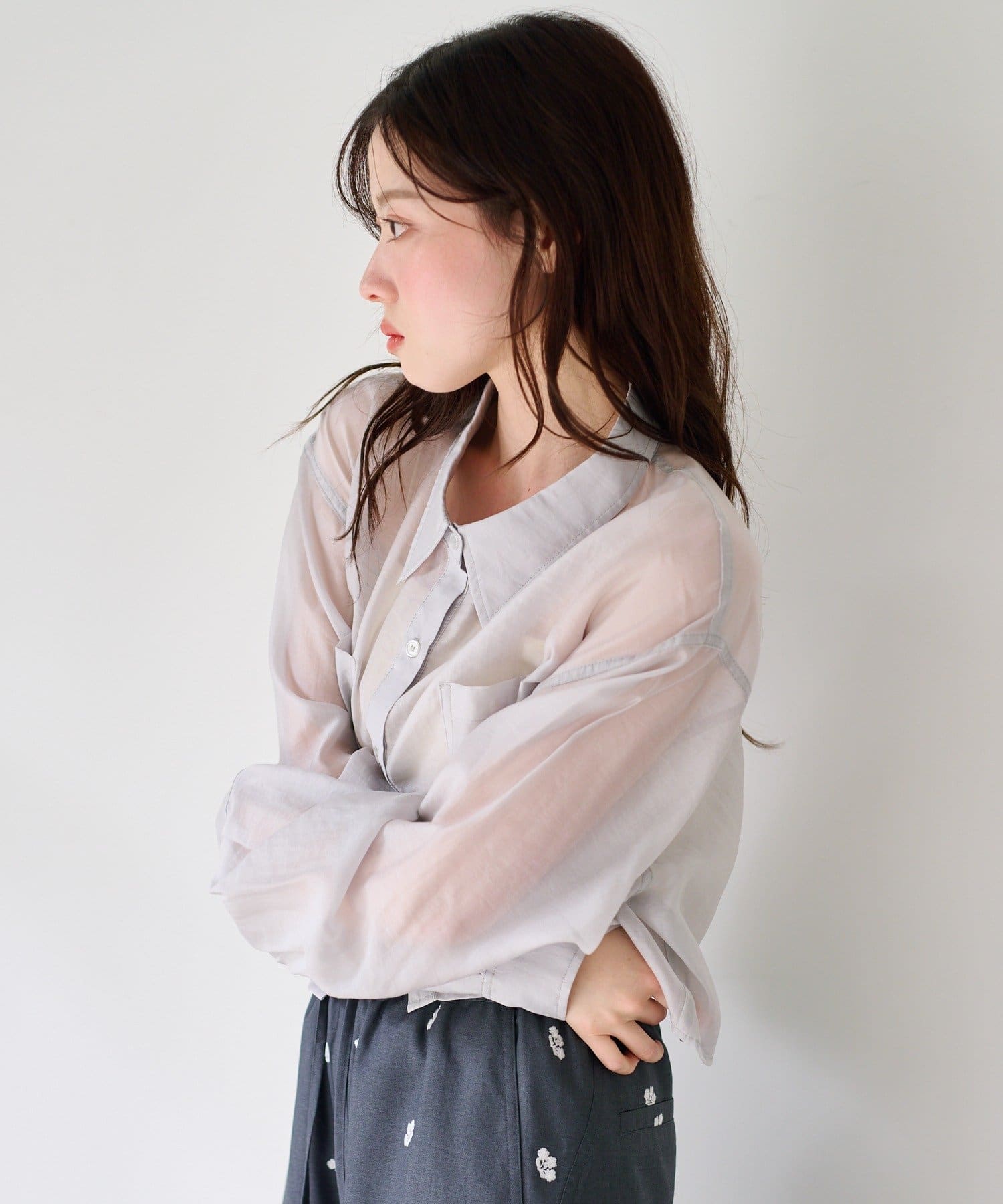 軽やかなシアー素材が特徴のベーシックシャツ