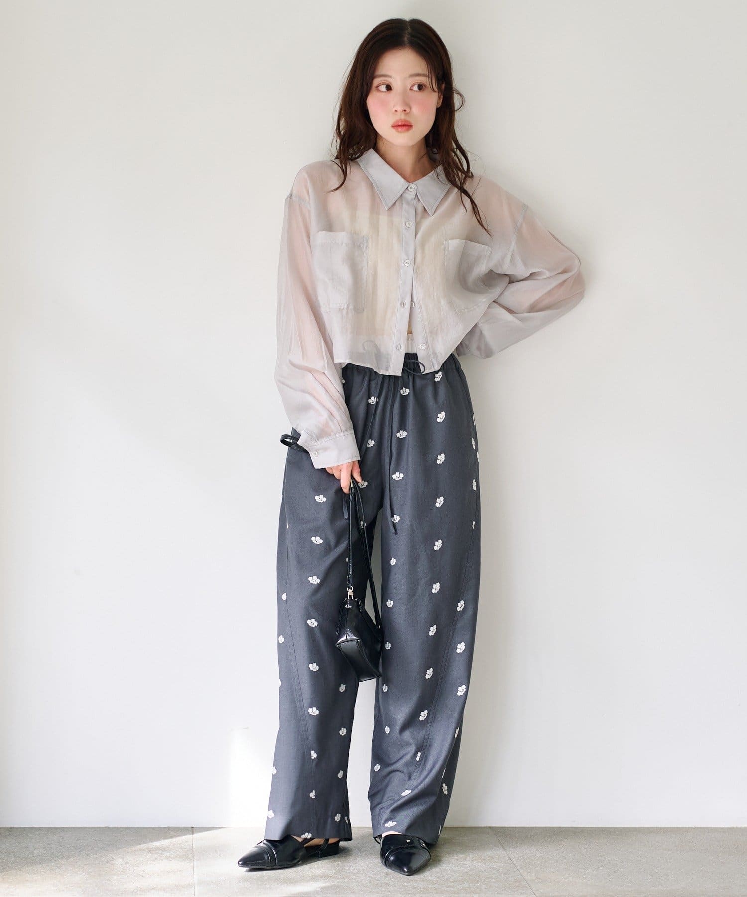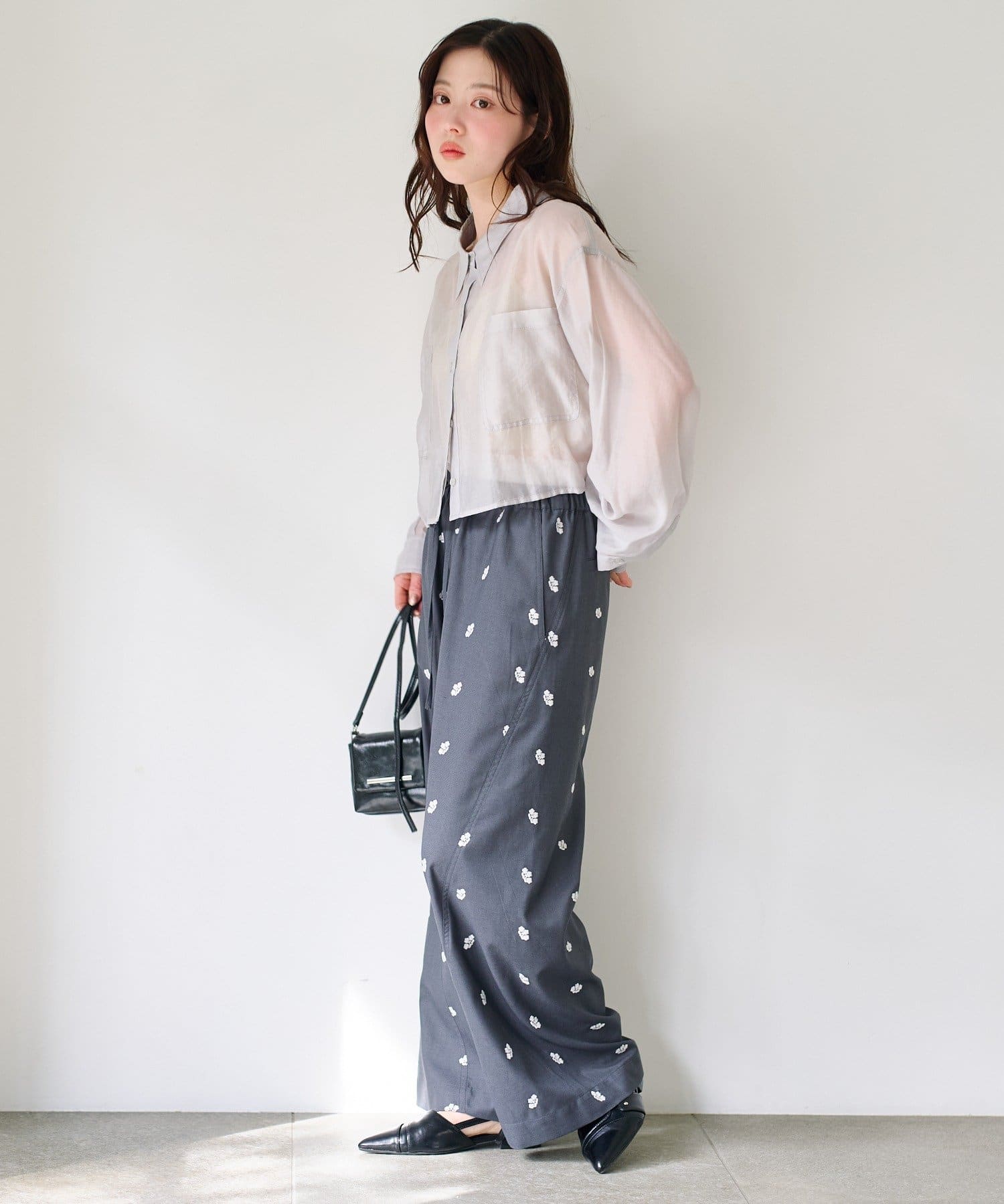 フラワーステッチワイドパンツ