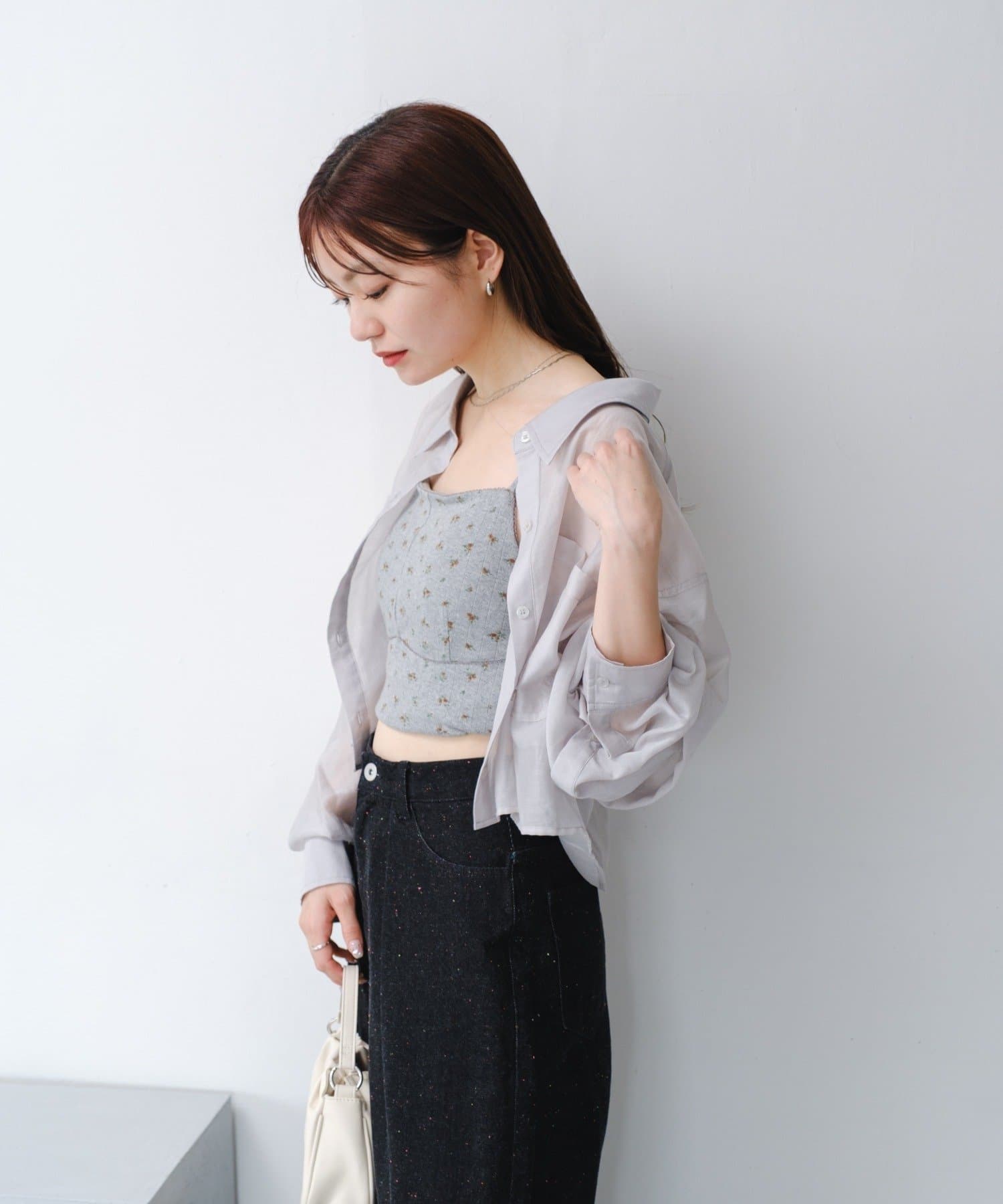 同じような色味のシアーシャツを探しており、やっと見つけました!前が短めの丈なのでゆるっとした服でもルーズになり過ぎず使いやすい。